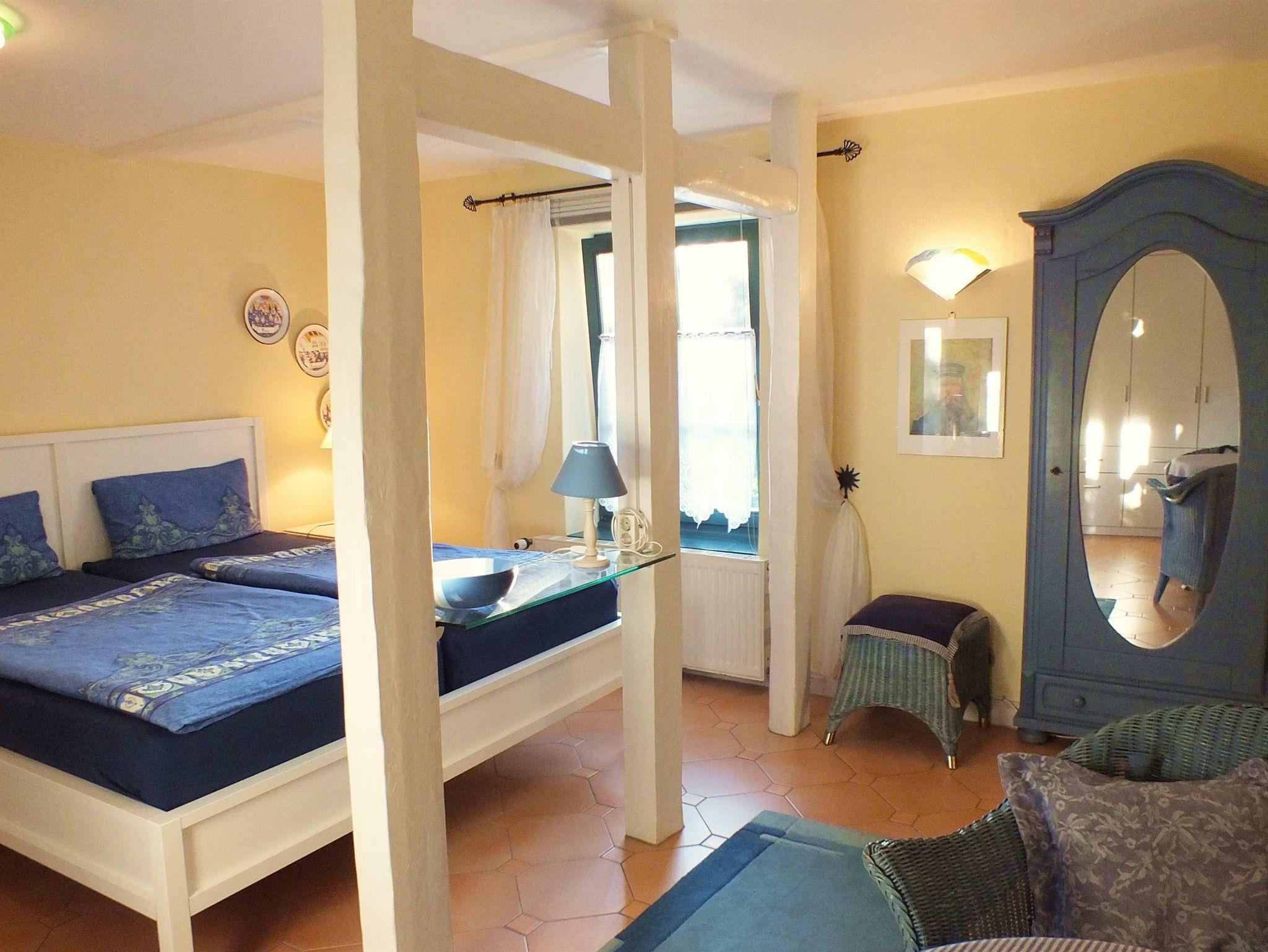 Das Klönhus liegt ruhig und idyllisch im historischen Ortskern in der Nähe (2 Minuten fußläufig) des Boddenhafens. Es ist ein privat geführtes, aufwendig restauriertes ehemaliges Kapitänshaus mit zwei Parterre liegenden Ferienwohnungen und einem kleinen Apartment, in denen wir das Innenfachwerk mit frei stehenden Balken, teilweise Lehmwänden und Backstein für ein klimatisch gesundes Wohnen erhalten haben. Das Ambiente ist mit vielen schönen Details im Landhausstil gehalten.