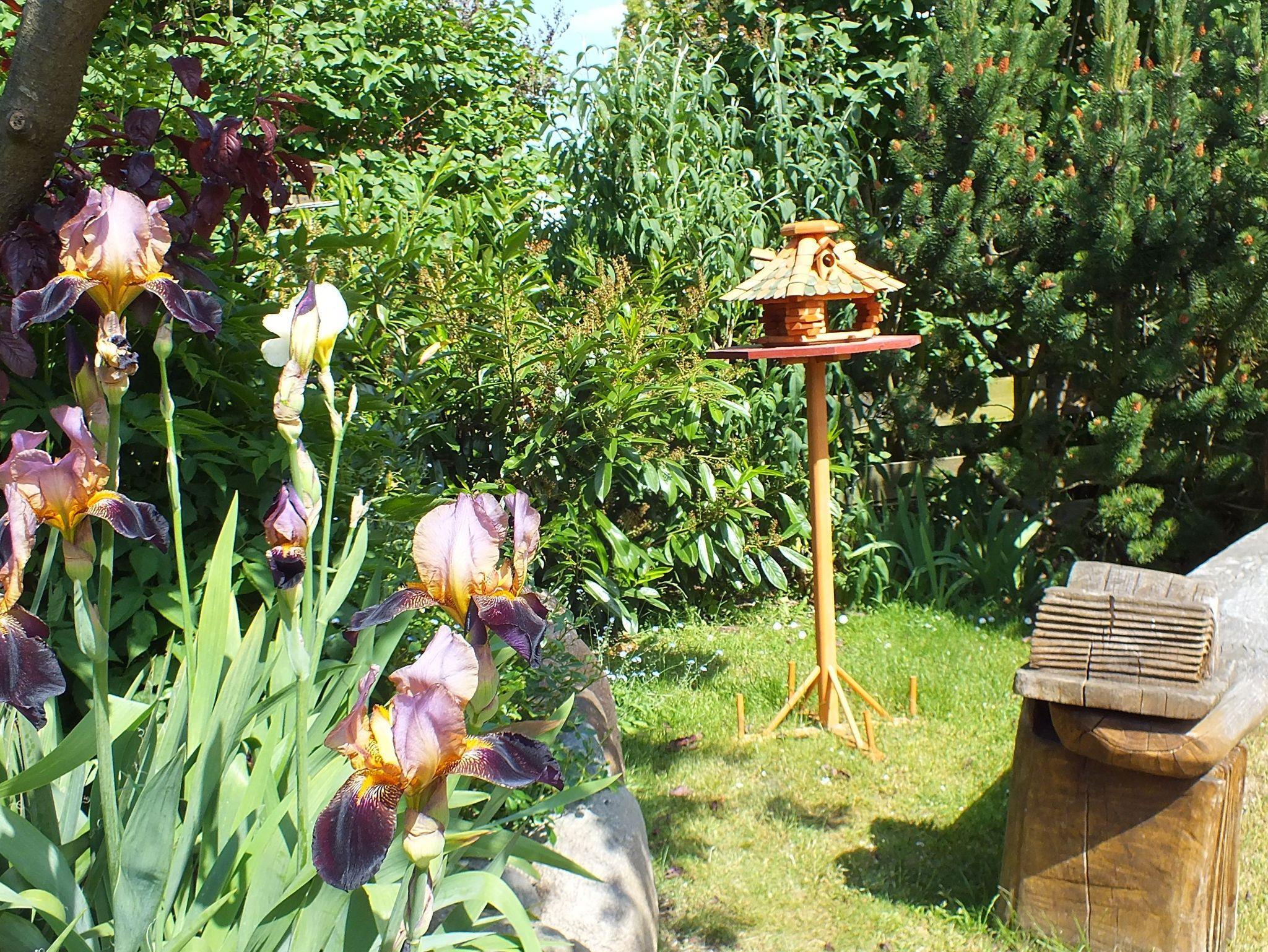Unsere Ferienwohnung Käpt'n Blue empfängt Sie mit einer hellen, schmucken Wohnküche, von der aus Sie direkt auf die ungestörte Terrasse und in den schön eingewachsenen, gepflegten Garten gelangen. Auch hier haben wir ein offenes Wohnen bevorzugt, in dem Küchen-, Ess- und Wohnbereich ineinander übergehen. Vom Schlafzimmer mit Doppelbett (180 x 200) und gemütlicher Klön- und Lesecke haben Sie Zugang zum Bad mit einer geräumigen, gefliesten Dusche.