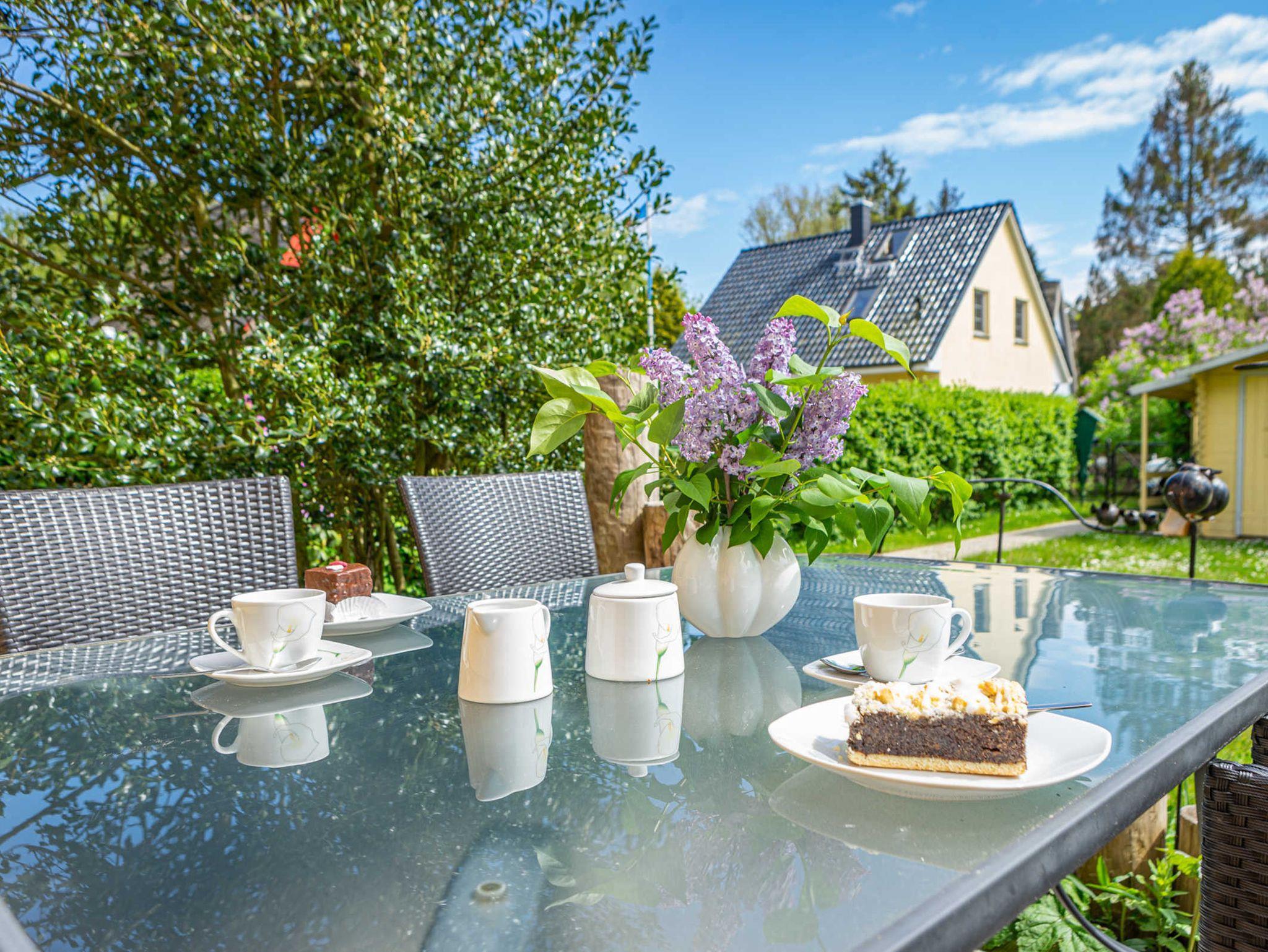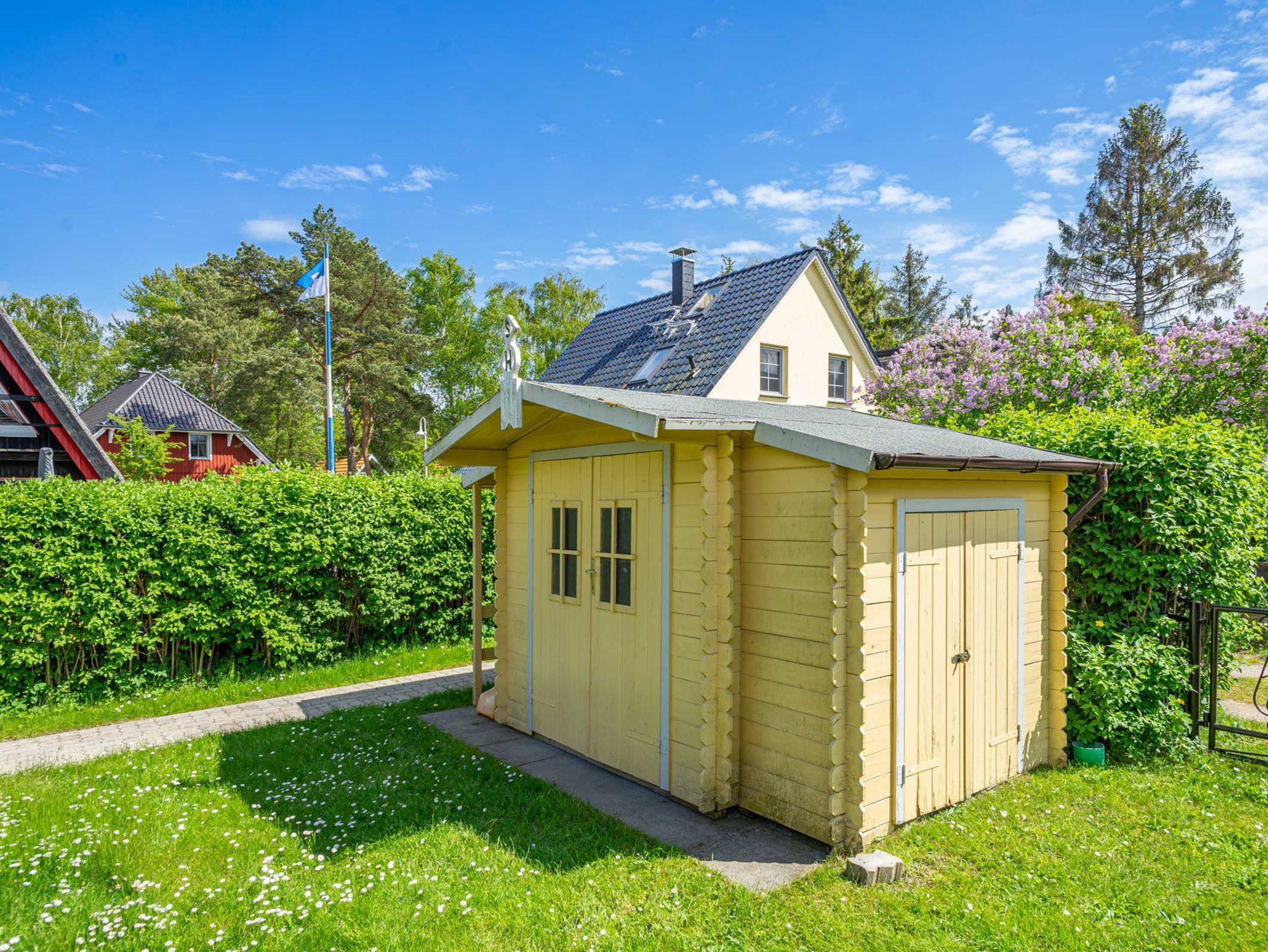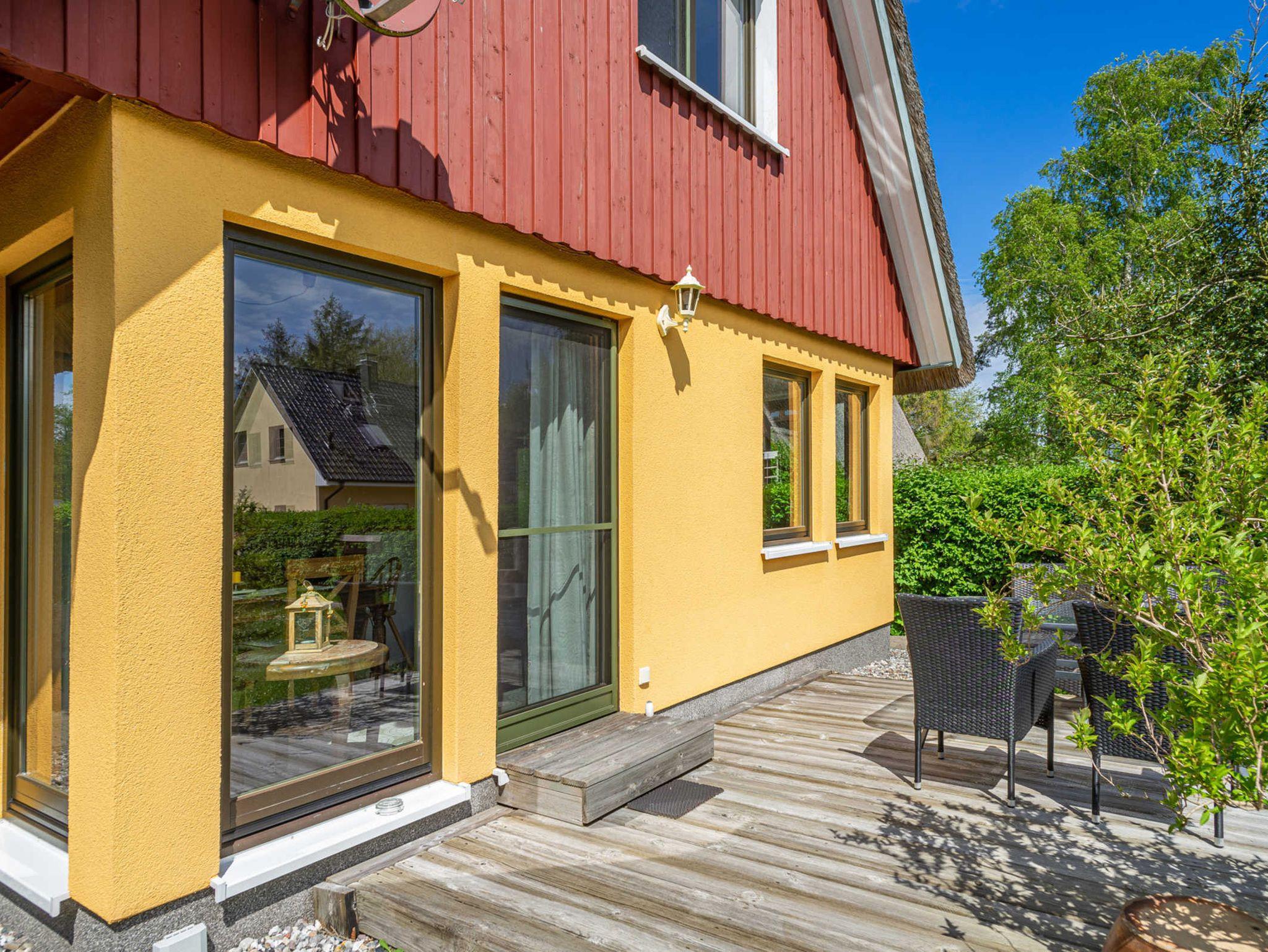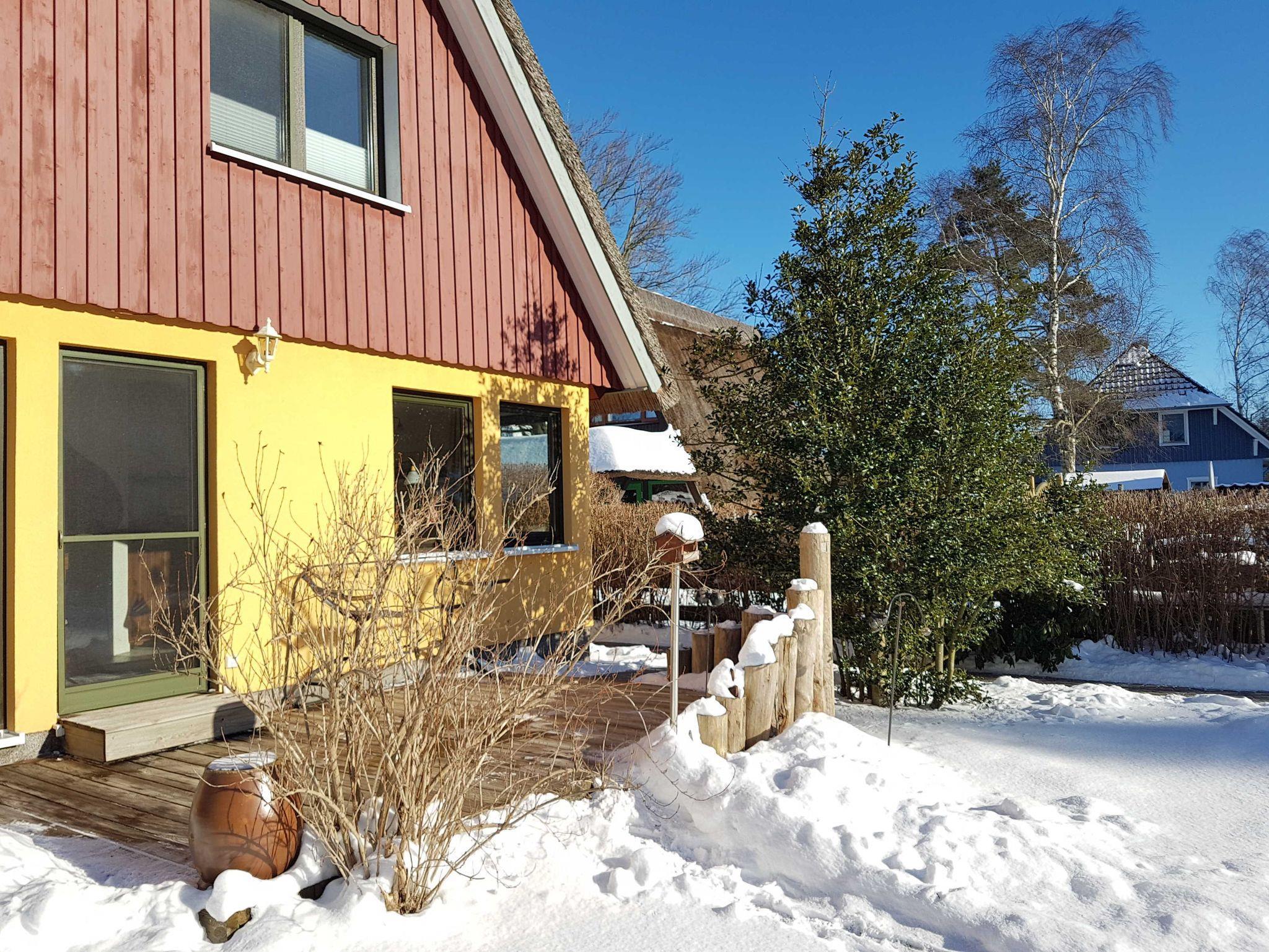 Auf Sie wartet, auf einem separaten 400 qm großem Grundstück, ein reetgedecktes Ferienhaus (ca. 72 qm).