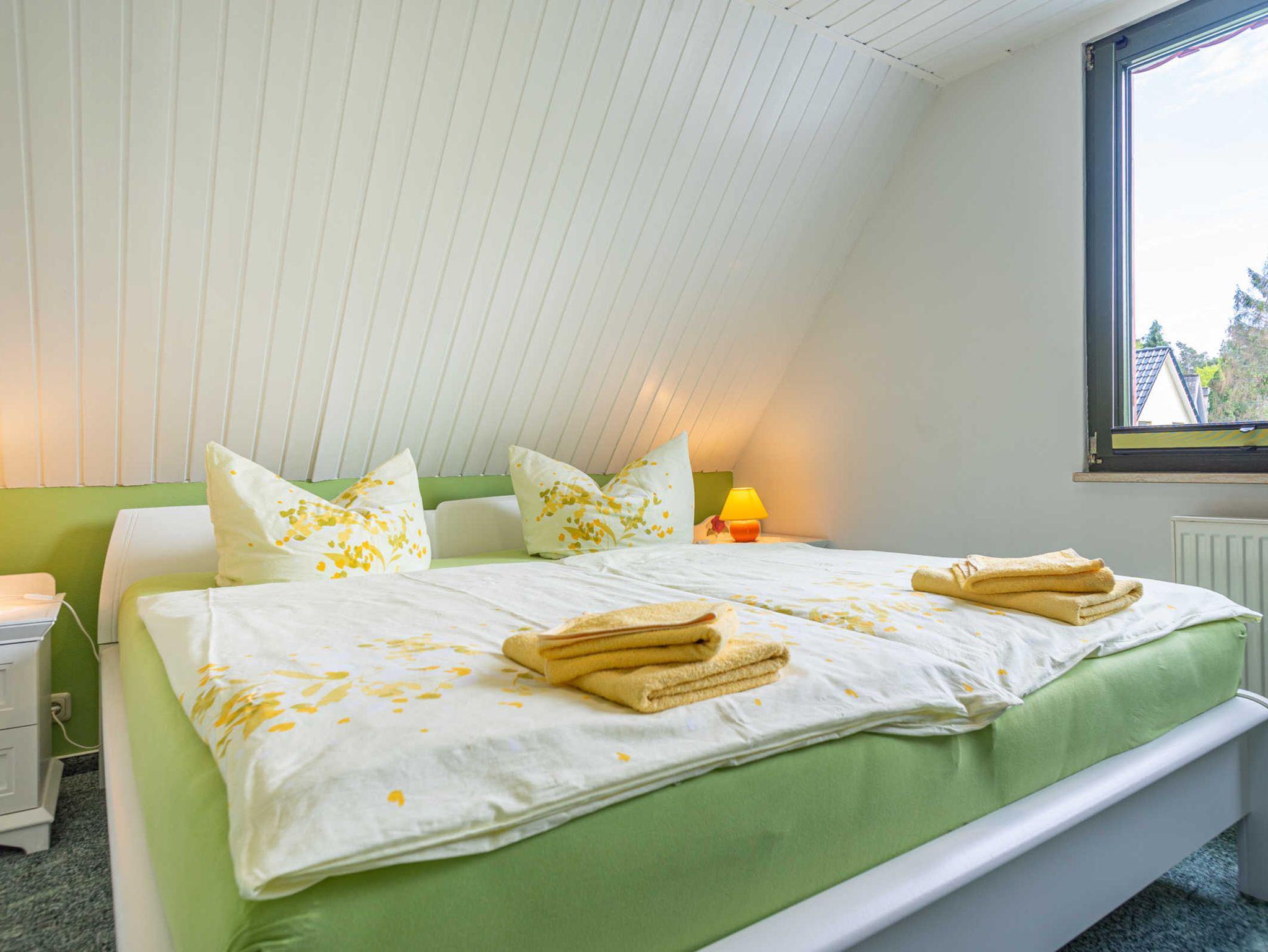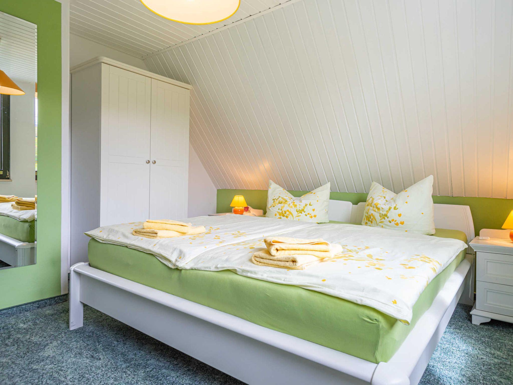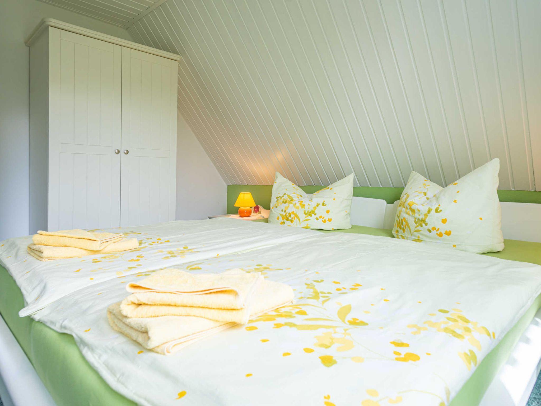 In den 2 Schlafzimmern haben 2-4 Personen Platz. Im Erdgeschoss befinden sich Dusche und WC.