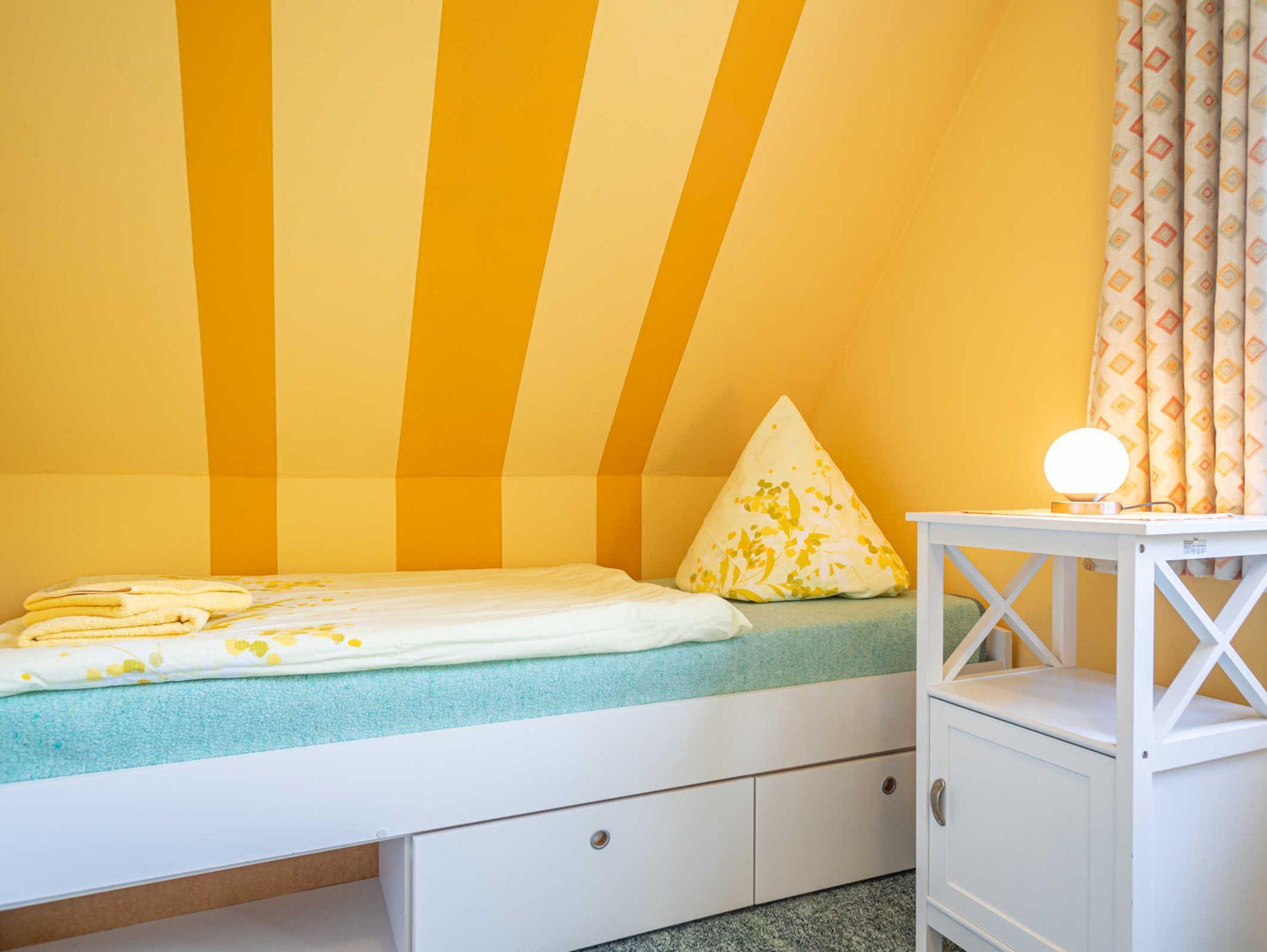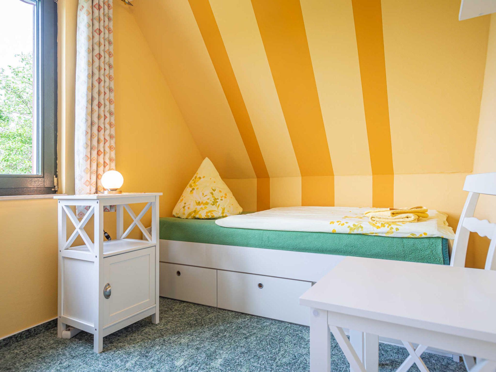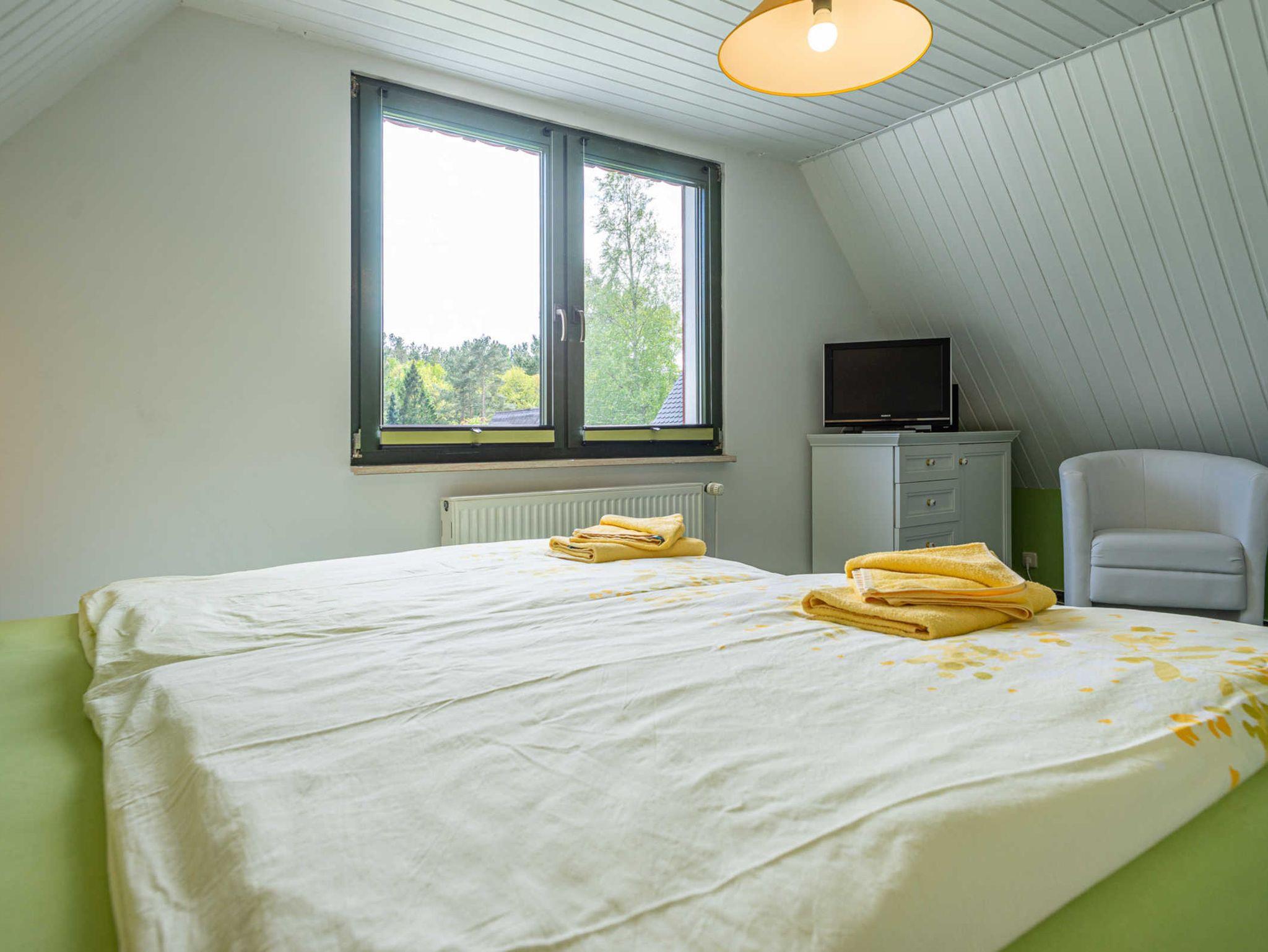 In den 2 Schlafzimmern haben 2-4 Personen Platz. Im Erdgeschoss befinden sich Dusche und WC.