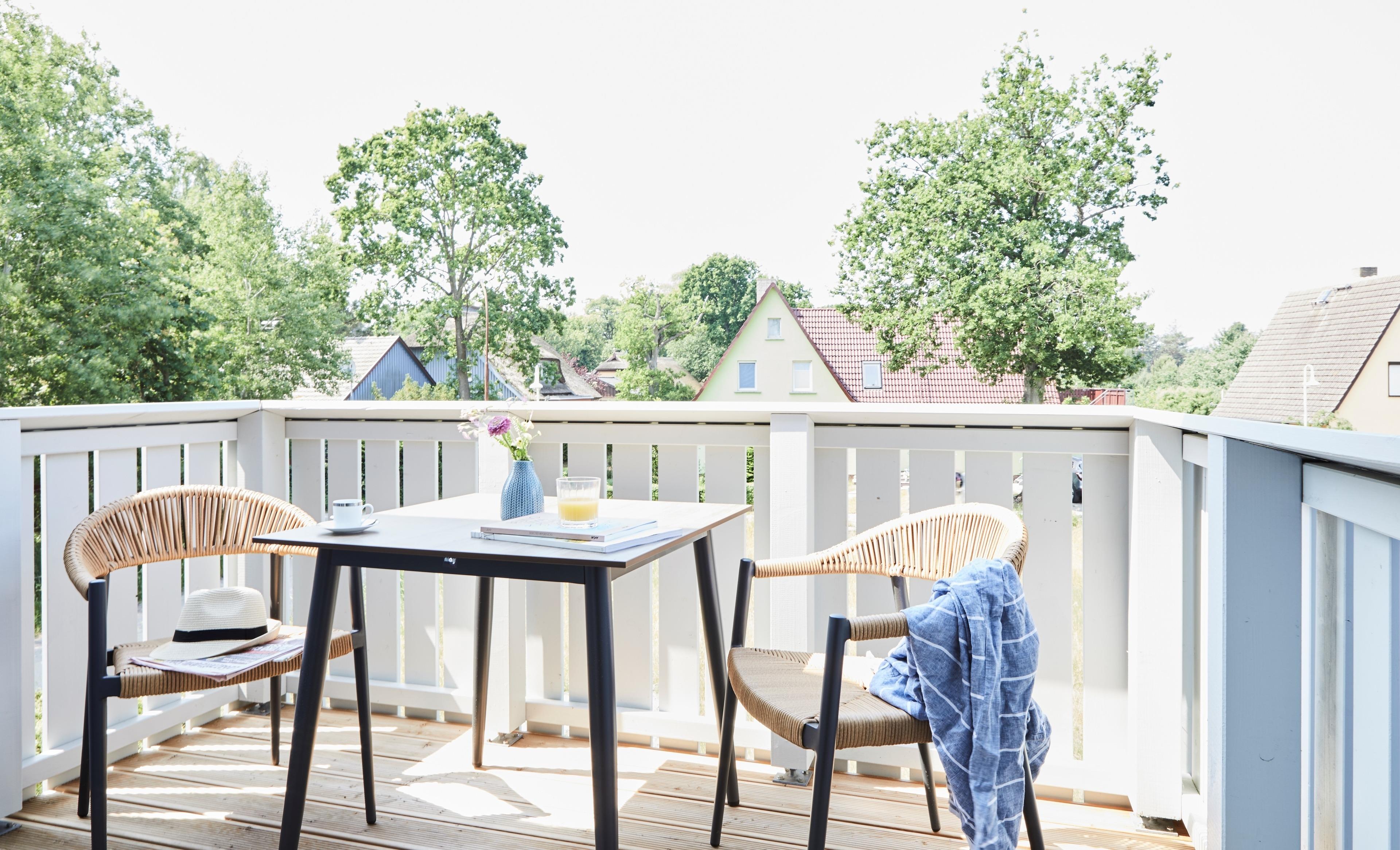 Unsere modernen und 2021 vollständig frisch renovierten Wohnungen im „ReetTraum“ liegen in sehr zentraler Lage im Ostseebad Prerow.