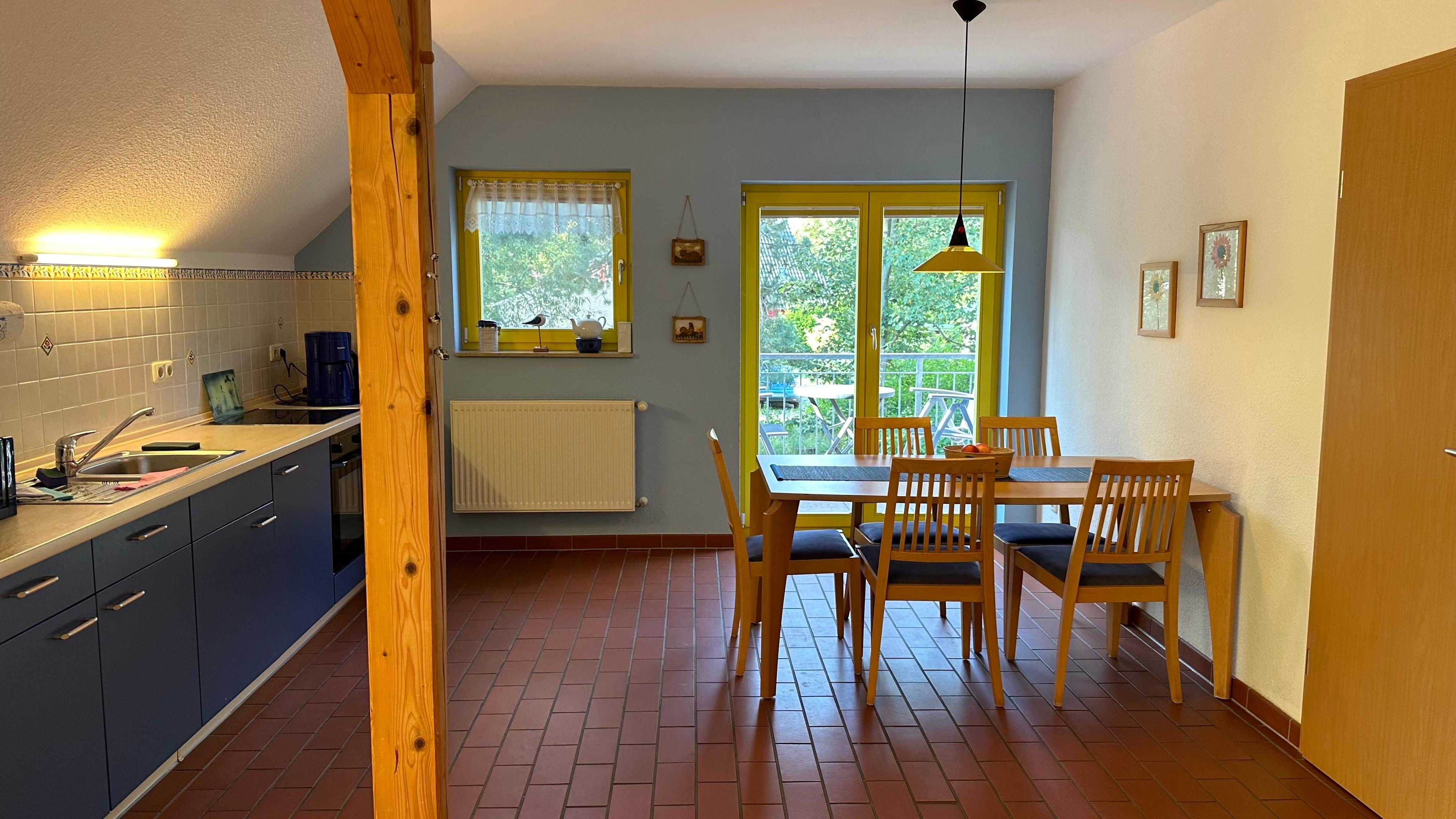 Das Ferienhaus "Franzi" verfügt über 5 individuelle Ferienwohnungen, die ganzjährig buchbar sind. Die Wohnung 1 kann bequem 4 Personen beherbergen. Eine Aufbettung ist möglich, da am Wohnzimmer eine Schlafcouch steht. Die Wohnung 1 verfügt über zwei Badezimmer mit WC. Das Besondere sind die zwei Balkone und die gemütliche und großzügige Einrichtung. Vom Nord- Balkon aus hat meinen einen guten Blick auf den Deich. Die Dachschrägen vermitteln einen urigen Eindruck. Man fühlt sich in dieser Wohnung wohl und geborgen.