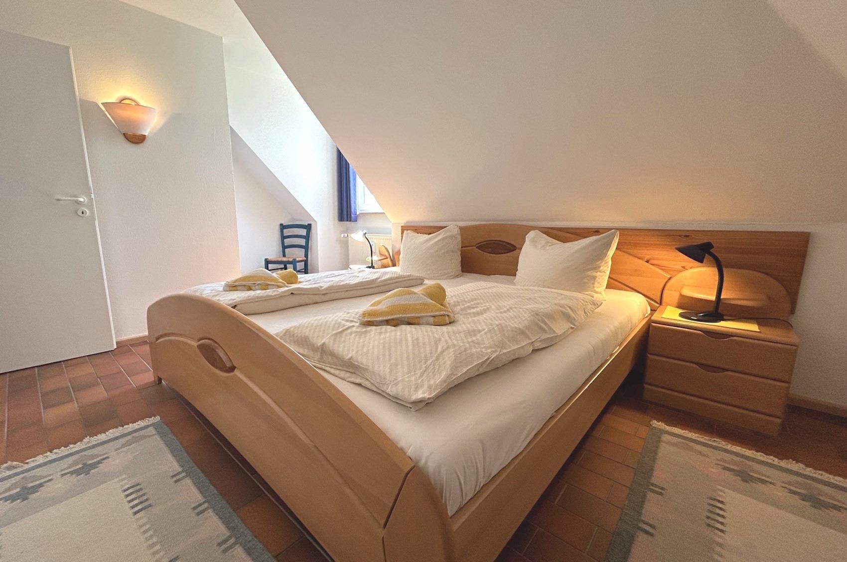 Die Ferienwohnungen bestehen aus zwei Zimmern mit 54 qm für zwei bis vier Personen oder drei Zimmer-Maisonette mit 75 qm für zwei bis sechs Personen und sind voll möbliert.