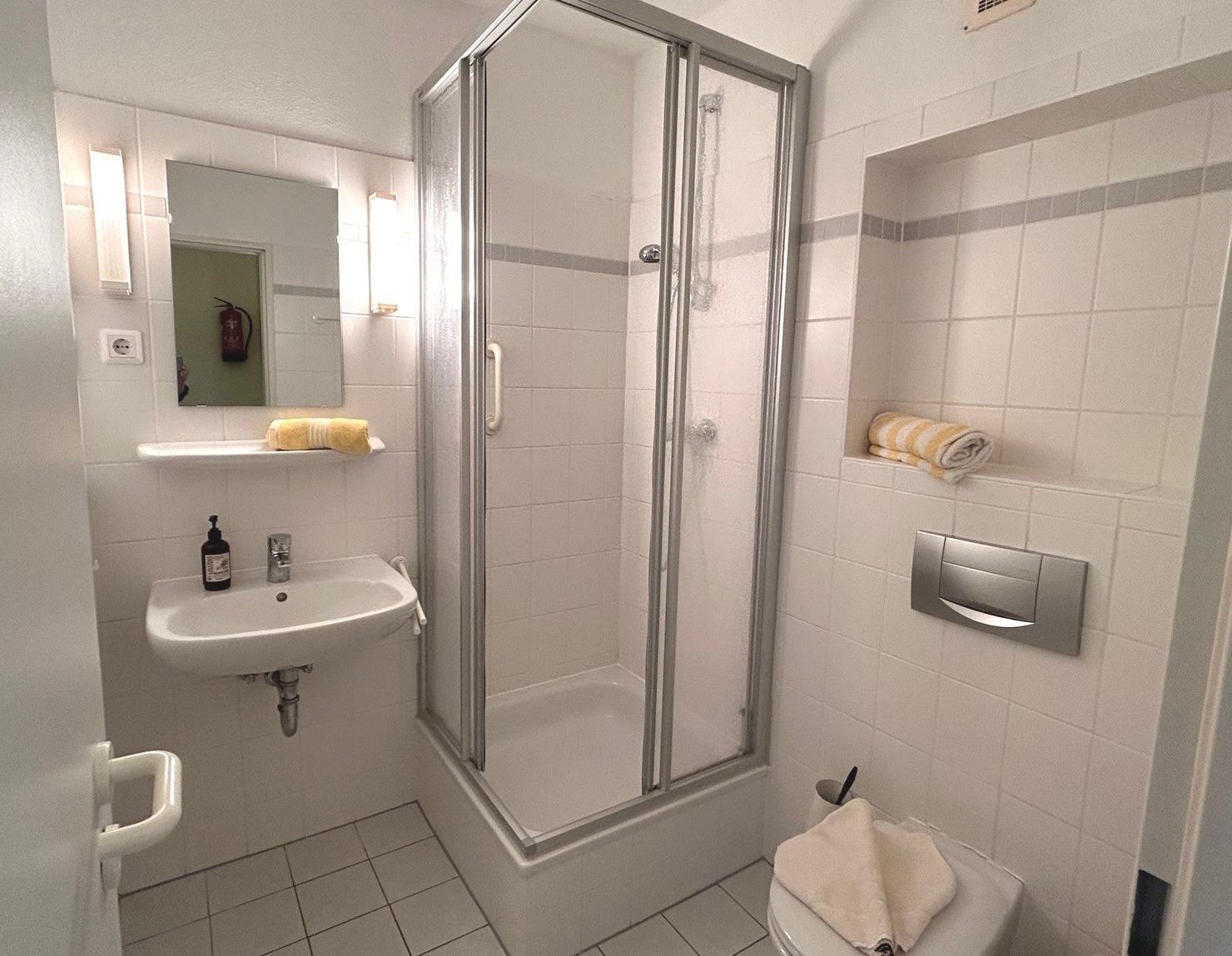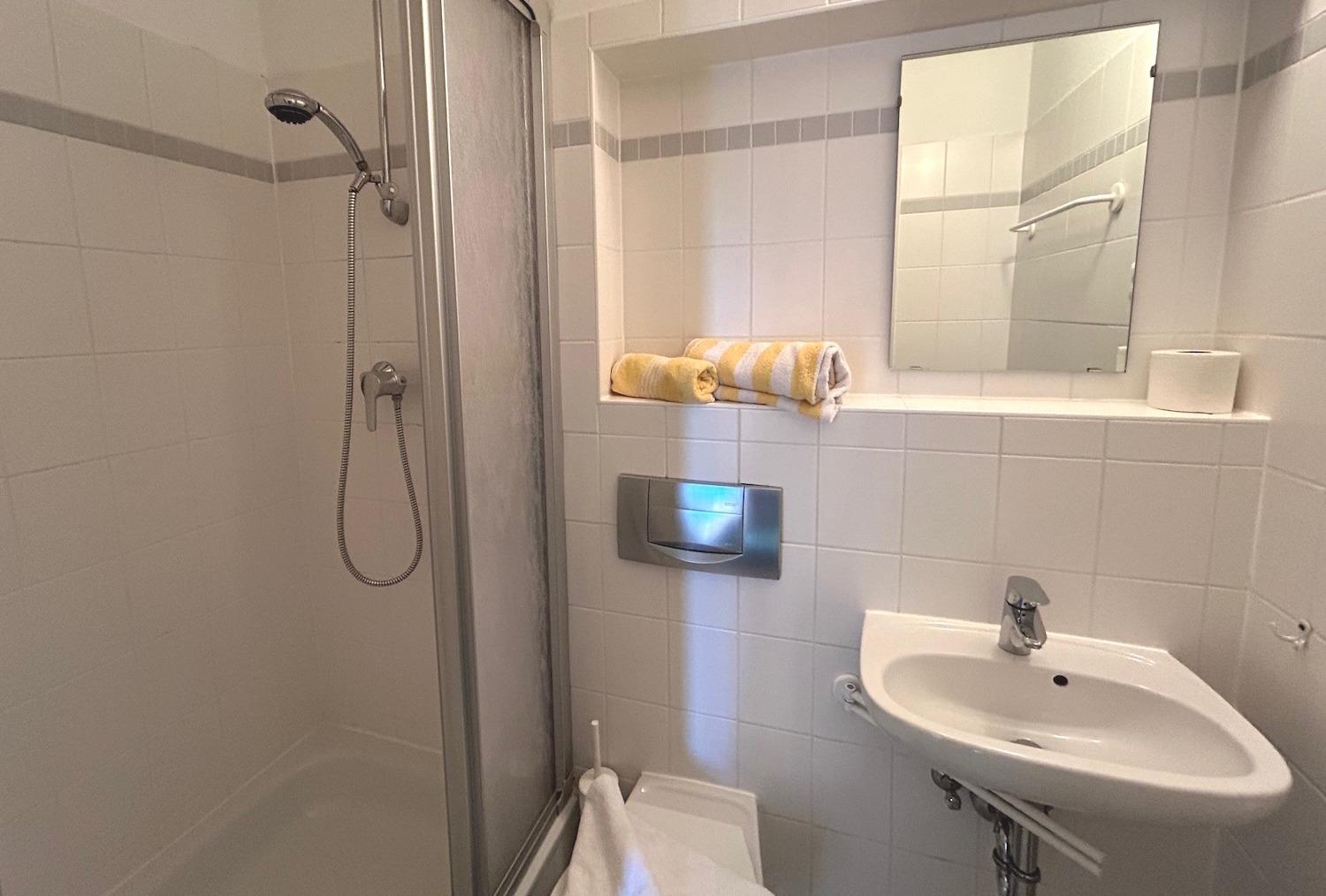 WLAN über ein gesichertes Netwerk können Sie in allen Wohnungen empfangen. Zu unserem Service gehören bezogene Betten und Handtücher.