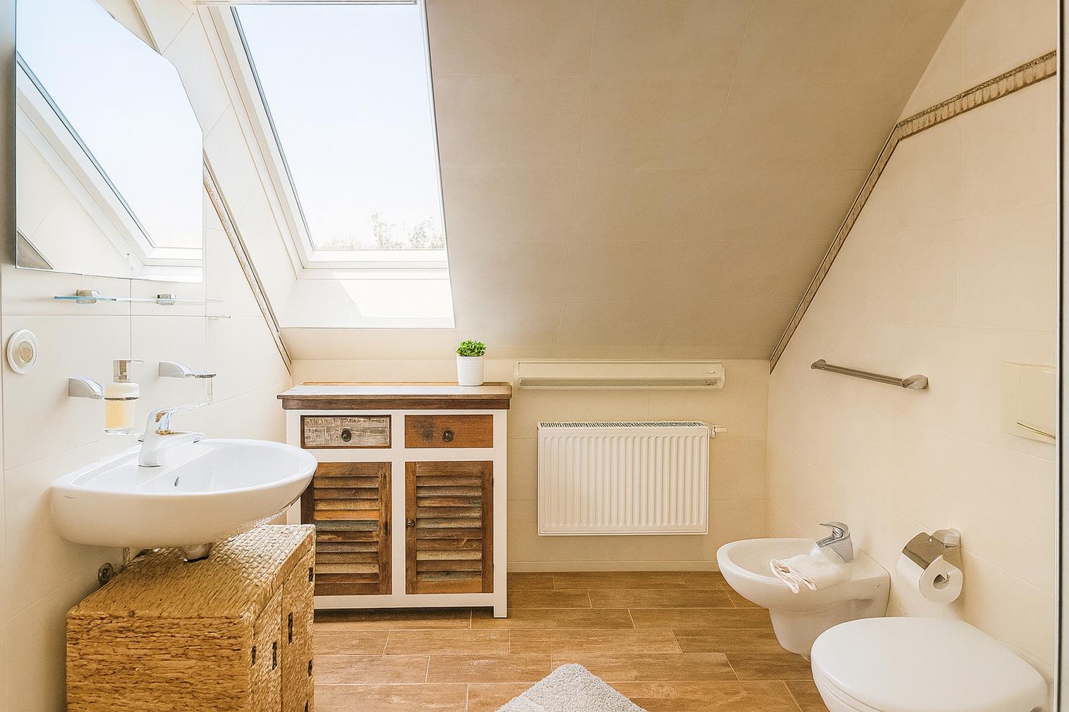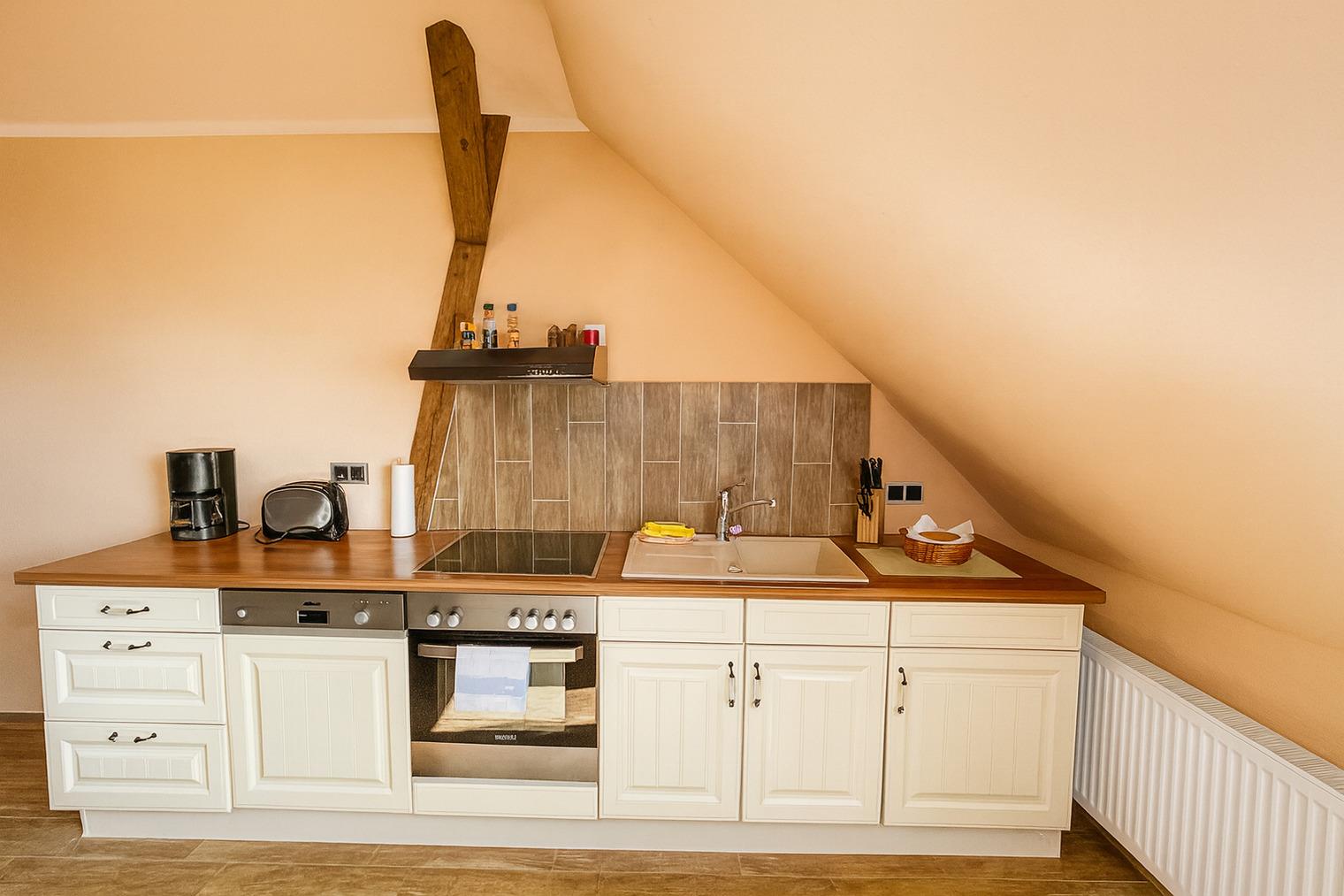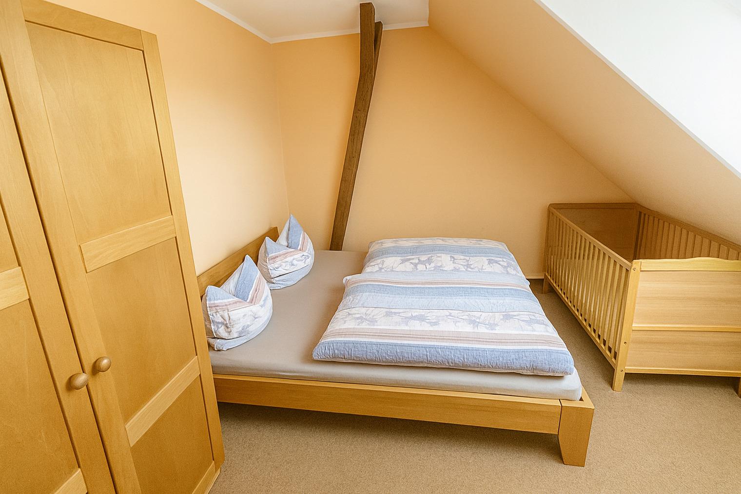 Die im kolonialen Landhausstil eingerichtete Mansarden- Ferienwohnung befindet sich auf einem großen Grundstück und verfügt über ein geräumiges Bad mit Dusche und Bidet. Die Küche ist hochwertig ausgestattet. Ein Kinderstuhl sowie Kinderbett sind vorhanden. Beide Schlafzimmer haben ein Doppelbett. Wir stellen Bettwäsche, Handtücher und Badetücher ohne Aufpreis. Bei längerem Aufenthalt werden Bade- und Handtücher getauscht.