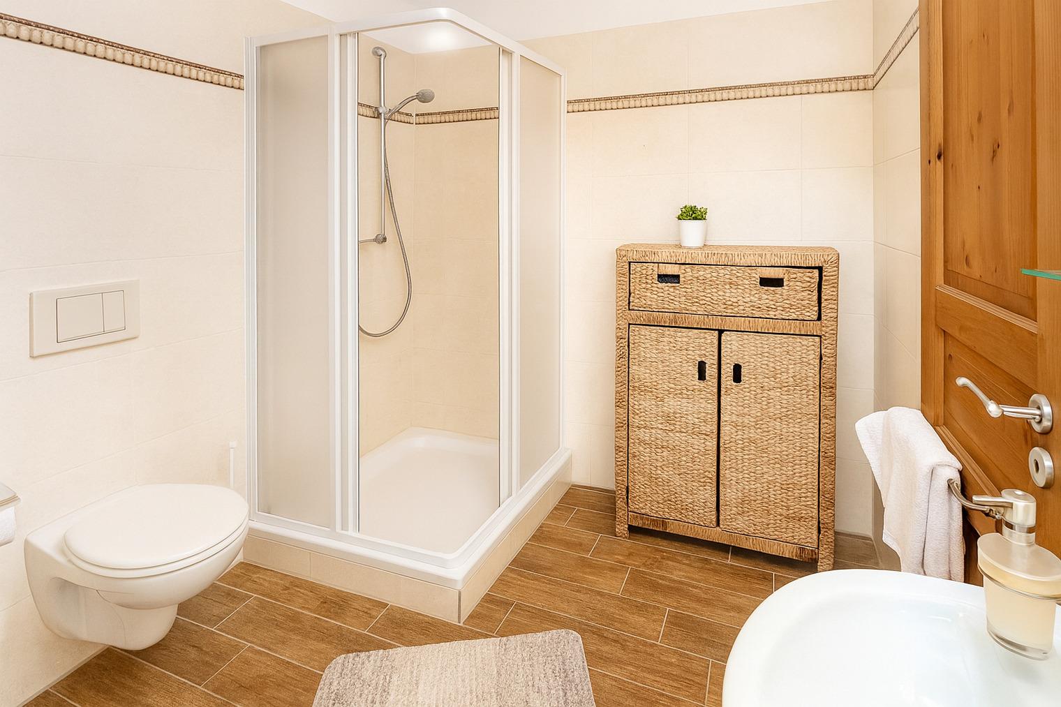 Unsere Ferienwohnung verfügt über zwei komfortable Schlafzimmer, jeweils mit einem gemütlichen Doppelbett. Das geräumige Wohnzimmer lädt zum Verweilen ein und bietet eine behagliche Atmosphäre zum Entspannen. Die hochwertige Küche ist voll ausgestattet und bietet alles, was Sie zum Kochen und Genießen benötigen. Ein Kinderhochstuhl und ein Babybett stehen für unsere kleinen Gäste zur Verfügung. Das moderne Badezimmer mit Dusche und Bidet sorgt für zusätzlichen Komfort während Ihres Aufenthalts.