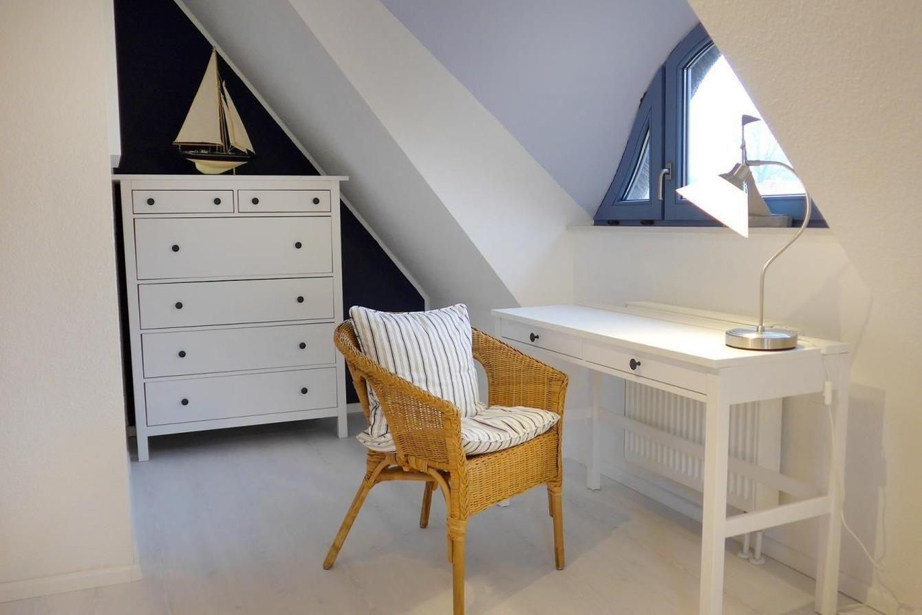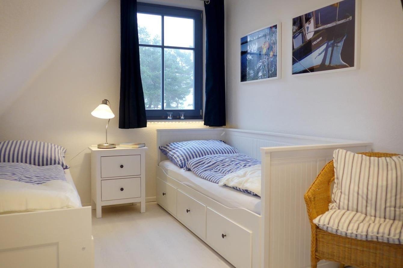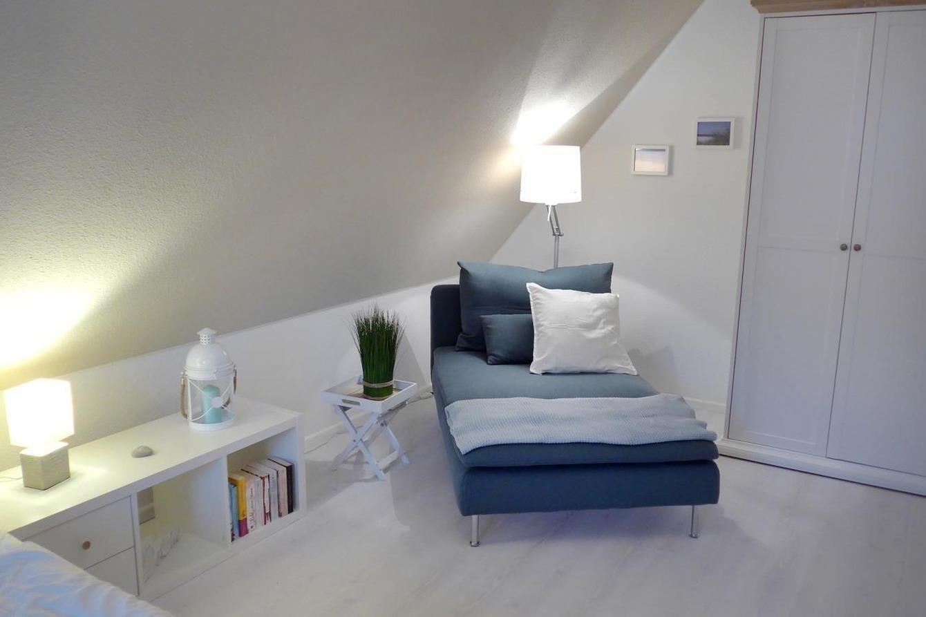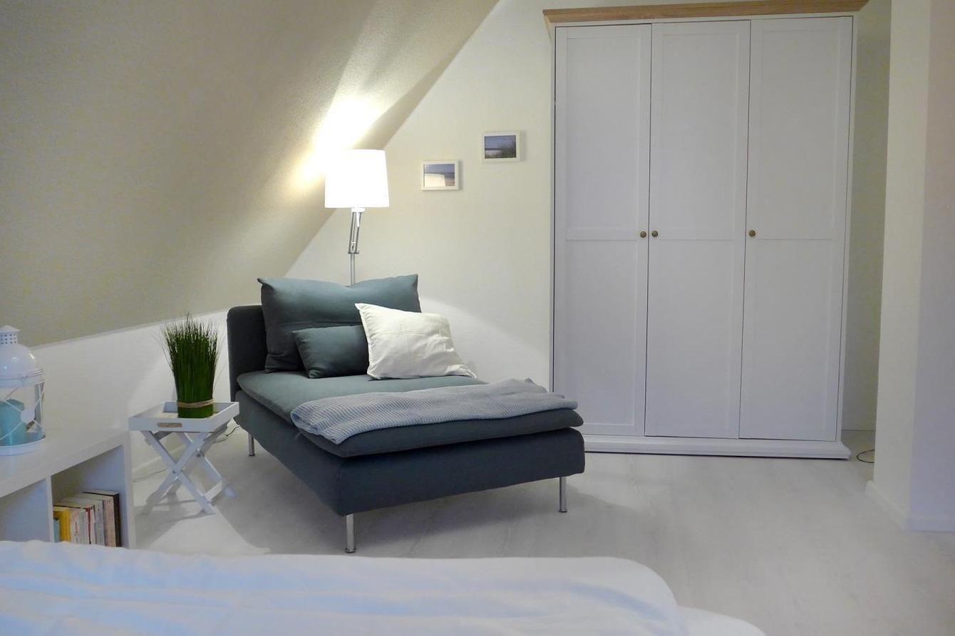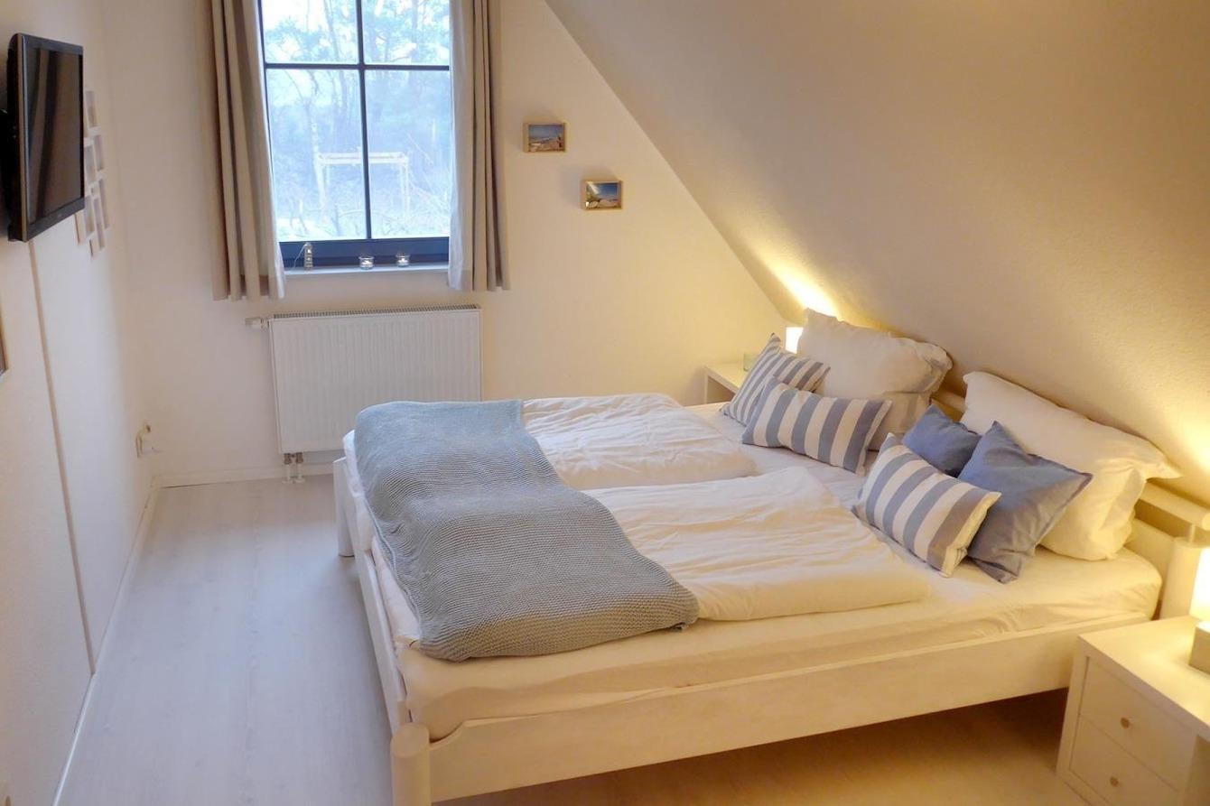 Die beiden Schlafzimmer im Obergeschoß des Hauses sind liebevoll eingerichtet, damit Sie auch im Schlaf Erholung finden. Das Badezimmer im Obergeschoß ist ausgestattet mit WC, Dusche und Waschbecken. Ein zusätzliches Gäste-WC befindet sich im Erdgeschoß.