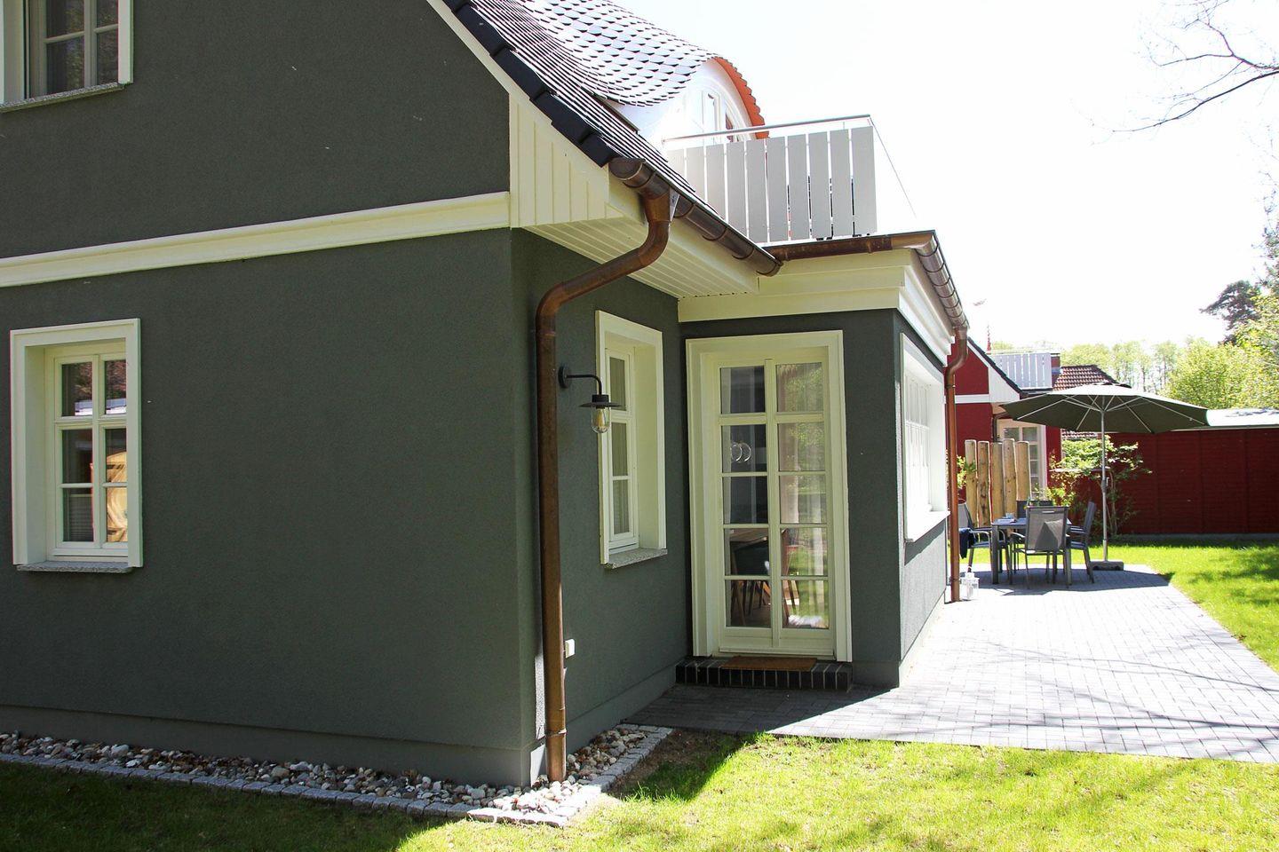 Am westlichen Ortsrand Prerows in ruhiger Lage befindet sich dieses exklusive Ferienhaus. In unmittelbarer Nähe vom Haus gelangt man zum Radweg, der durch den Darßwald zum naturbelassenen Weststrand führt. Zum feinsandigen Nordstrand sind es ca. 10 Minuten zu Fuß.