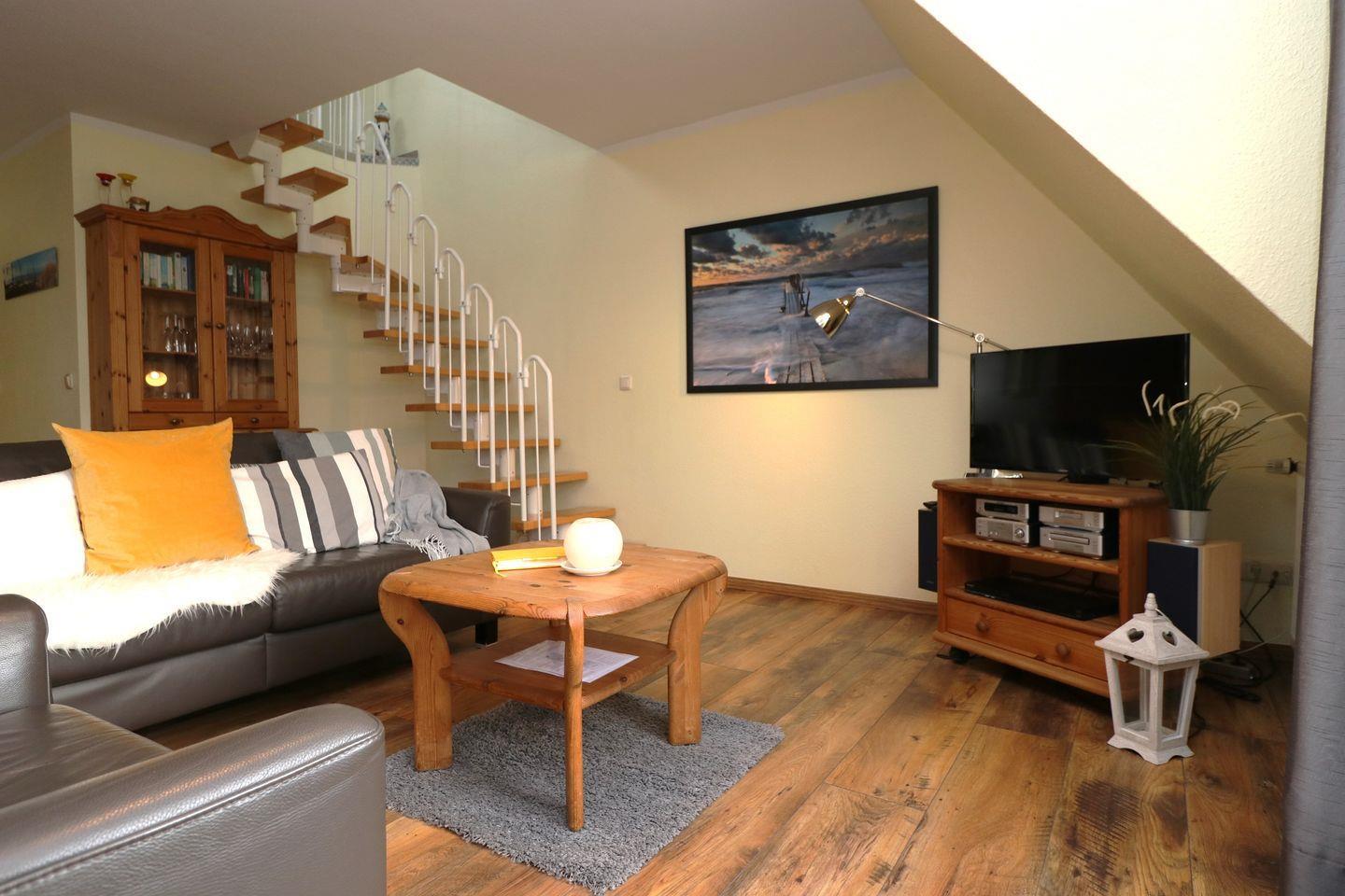 Das gepflegte Appartement „Likedeeler“ befindet sich im Obergeschoss des Hauses und bietet auf 62 m² Platz für bis zu 4 Personen. Es eignet sich ideal für Paare oder Familien, die eine komfortable und gut gelegene Unterkunft suchen. Das Appartement verfügt über ein gemütliches Wohnzimmer mit einer integrierten Küchenzeile, in der Sie Ihre Mahlzeiten selbst zubereiten können. Es gibt zwei Schlafzimmer, die jeweils mit einem Doppelbett ausgestattet sind, sowie ein modernes Tageslichtbad mit Dusche und WC. Zu den weiteren Annehmlichkeiten gehören ein kostenloser Pkw-Stellplatz sowie ein abschließbarer Fahrradabstellraum, in dem Sie Ihre Fahrräder sicher unterstellen können. Auf dem Südbalkon können Sie den ganzen Tag über die Sonne genießen und entspannte Stunden im Freien verbringen. Für Ihre Kommunikation steht Ihnen kostenloses WLAN zur Verfügung. Haustiere sind in diesem Appartement herzlich willkommen. Das Rauchen ist jedoch nur auf dem Balkon gestattet, um die Innenräume rauchfrei zu halten. Die öffentliche Haltestelle für den Flixbus und den öffentlichen Nahverkehr Richtung Zingst und Wustrow ist nur 150 m entfernt, was das Appartement zu einem idealen Ausgangspunkt für Ausflüge in die Umgebung macht. Das Appartement „Likedeeler“ bietet Ihnen somit alles, was Sie für einen angenehmen und erholsamen Aufenthalt benötigen – bequem, gut gelegen und gut ausgestattet.