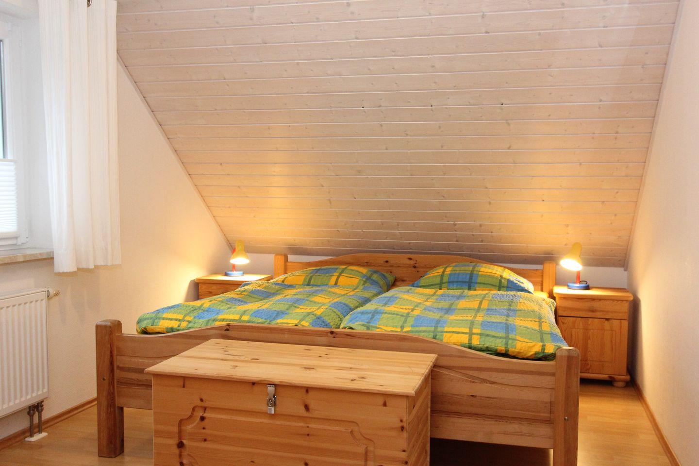 Die Schlafzimmer sind mit jeweils einem Doppelbett und großen Kleiderschränken ausgestattet. Es steht zusätzlich ein Kinderbett zur Verfügung. Zum Schutz für Kleinkinder gibt es ein Treppengitter , auch ein Trip-Trap ist vorhanden.