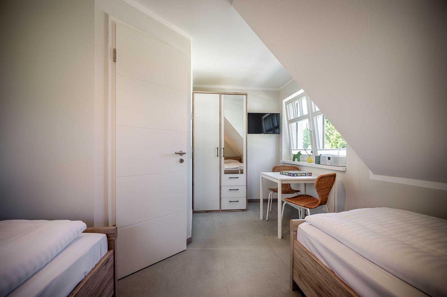 1 Schlafzimmer mit 2 Einzelbetten (0,90 x 2,00m) verstellbare Lattenroste , TV,