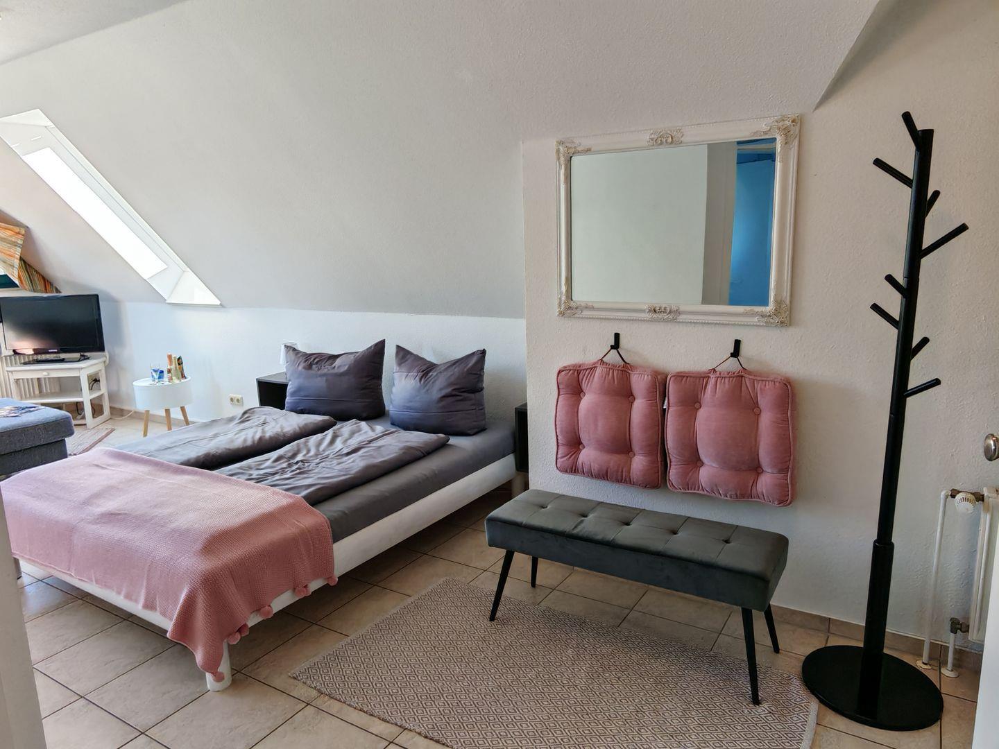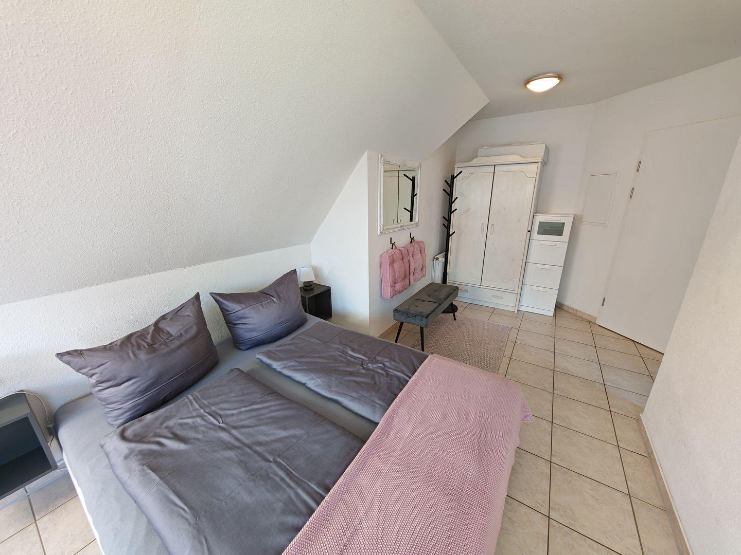 Das Doppelbett lädt zu erholsamen Nächten ein und bietet Ihnen den nötigen Schlafkomfort. Die geschickte Raumaufteilung schafft eine angenehme Wohnatmosphäre, die sich ideal für Paare oder Alleinreisende eignet.