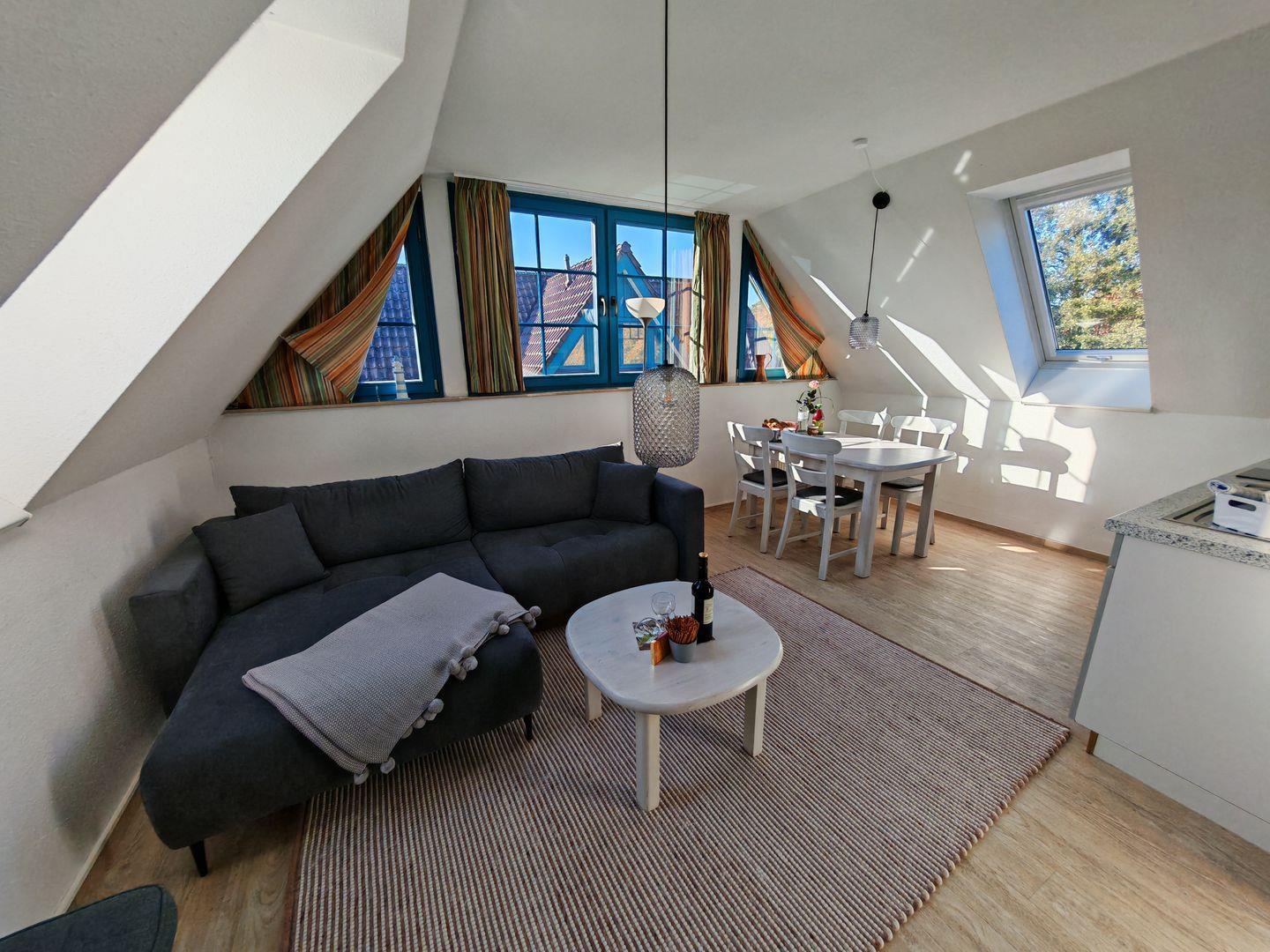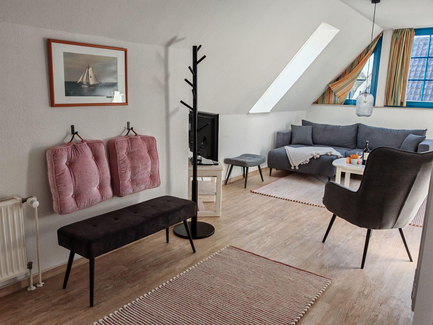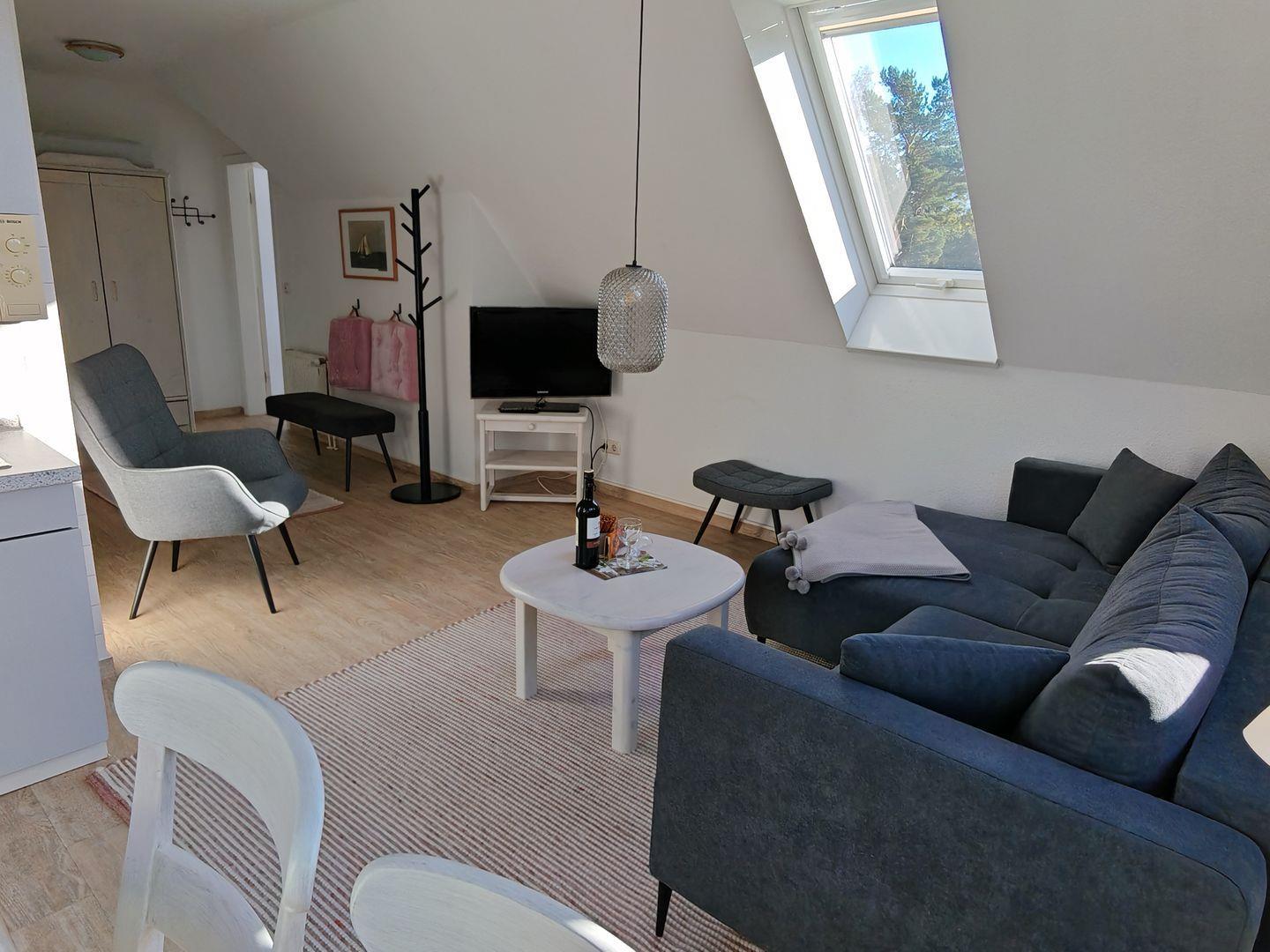 Entdecken Sie unsere lichtdurchflutete 2-Zimmer-Ferienwohnung (46 qm) ehemals "Börge" – ein perfekter Rückzugsort. Das Schlafzimmer begeistert mit einem Südbalkon, die offene Küche ist modern ausgestattet. Das gemütliche Sofa und ein Sessel schaffen eine entspannte Atmosphäre. Im Tageslichtbad finden Sie Komfort und Stil. Ideal für Paare oder kleine Familien, um die Umgebung zu erkunden und in angenehmer Atmosphäre zu entspannen.