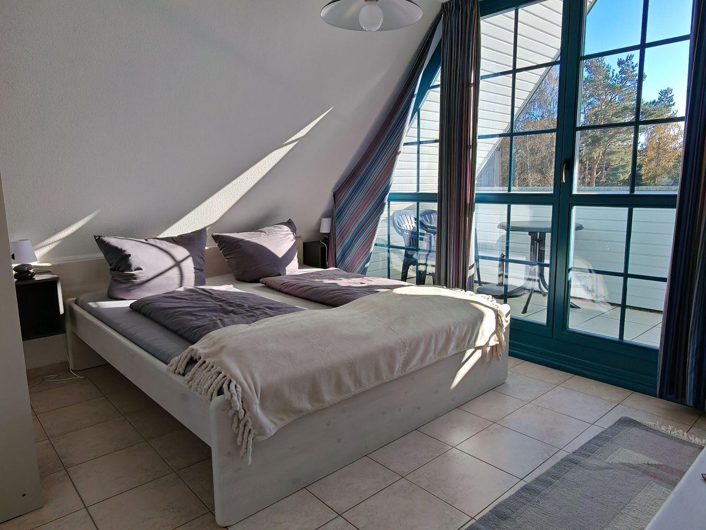 Das Schlafzimmer mit dem Südbalkon bietet einen besonderen Rückzugsort. Beginnen Sie Ihren Tag mit einer Tasse Kaffee in der Sonne oder lassen Sie ihn bei einem Glas Wein und einem romantischen Sonnenuntergang ausklingen.