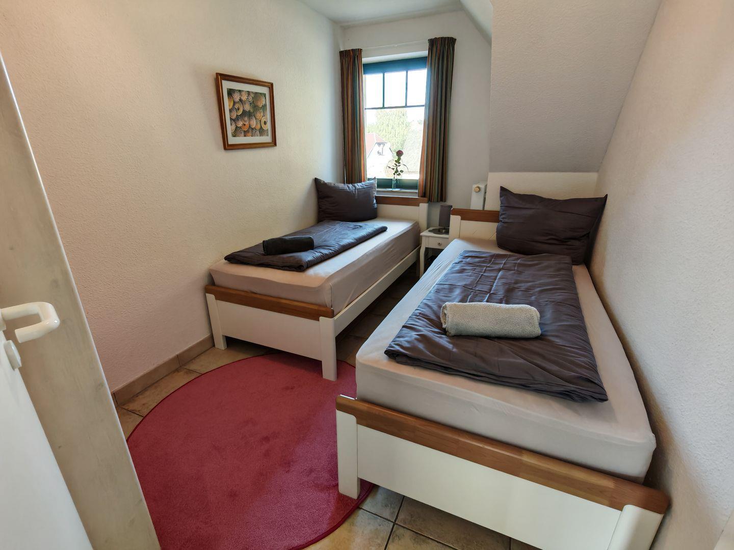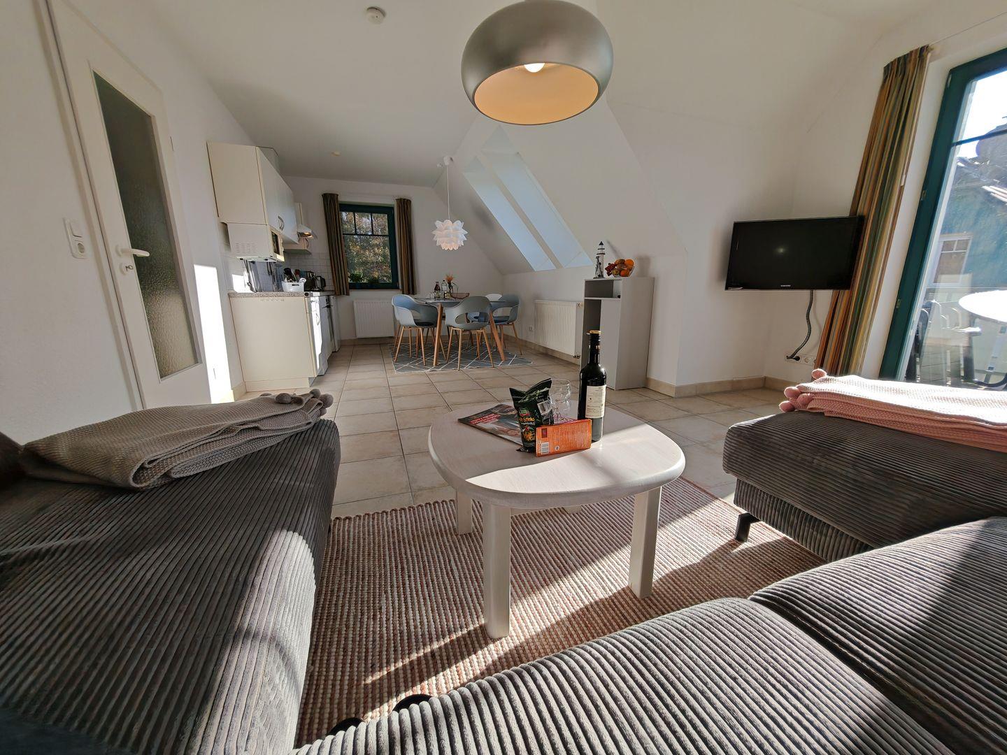 Willkommen in unserer lichtdurchfluteten 3-Zimmer-Ferienwohnung (56 qm) ehemals "Morten". Das Schlafzimmer bietet ein gemütliches Doppelbett, während das zweite Schlafzimmer ein ausziehbares Tagesbett bereithält. Die offene Küche ist modern ausgestattet, und die Essecke lädt zu geselligen Mahlzeiten ein. Im Wohnbereich erwarten Sie ein bequemes Sofa, ein Sessel und ein TV. Der Südbalkon bietet einen malerischen Blick auf Wiese und Wald – der perfekte Ort für entspannte Stunden in der Natur.