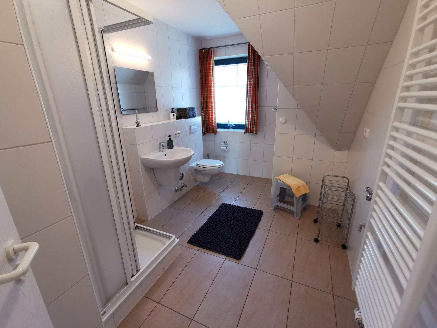 Das Tageslichtbad ist nicht nur funktional, sondern auch gemütlich gestaltet. Hier können Sie sich frisch machen und den Tag entspannt beginnen.