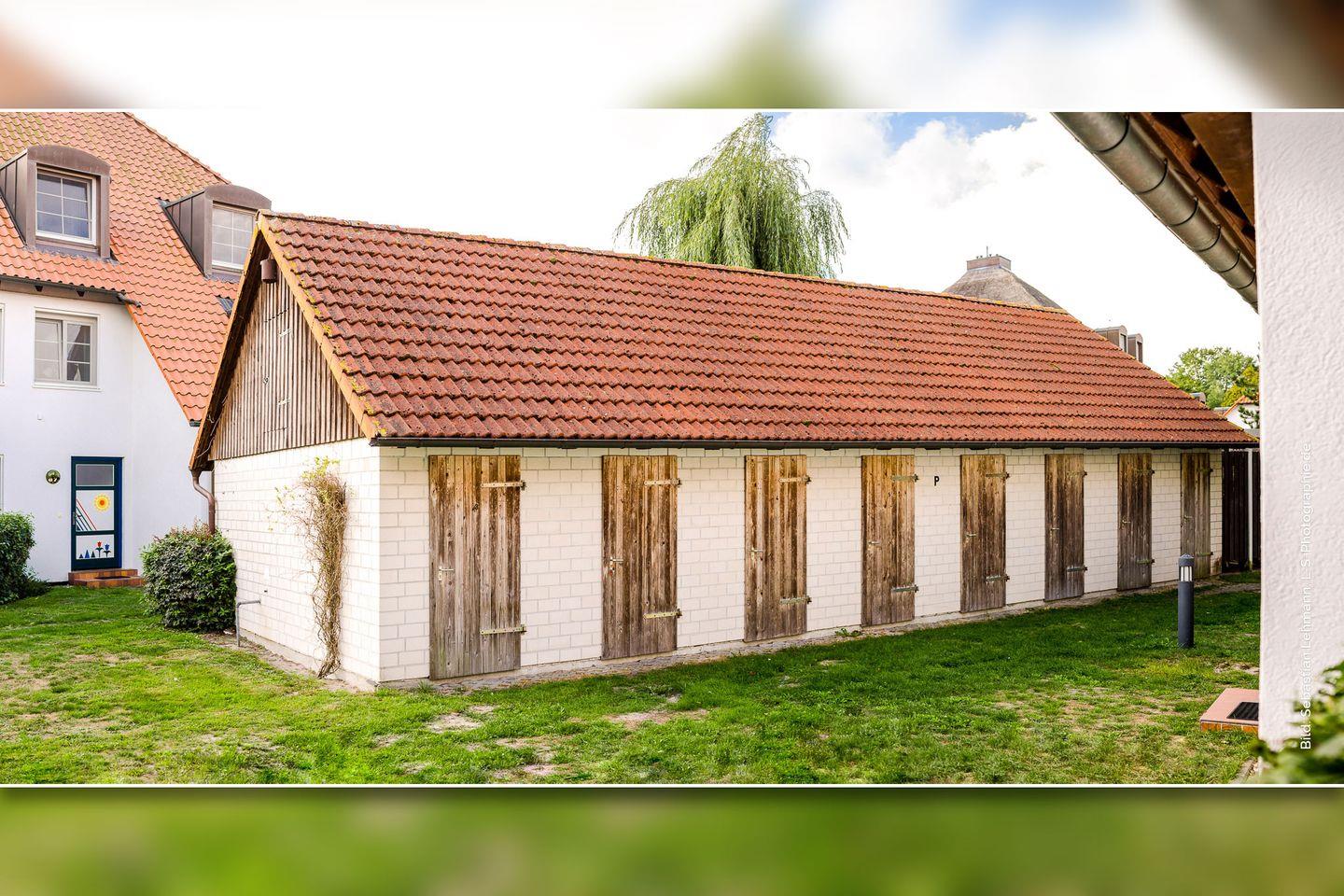 Zur Wohnung gehören ein abschließbarer Fahrrad-/Lagerraum und ein PKW-Stellplatz, jeweils direkt am Haus.