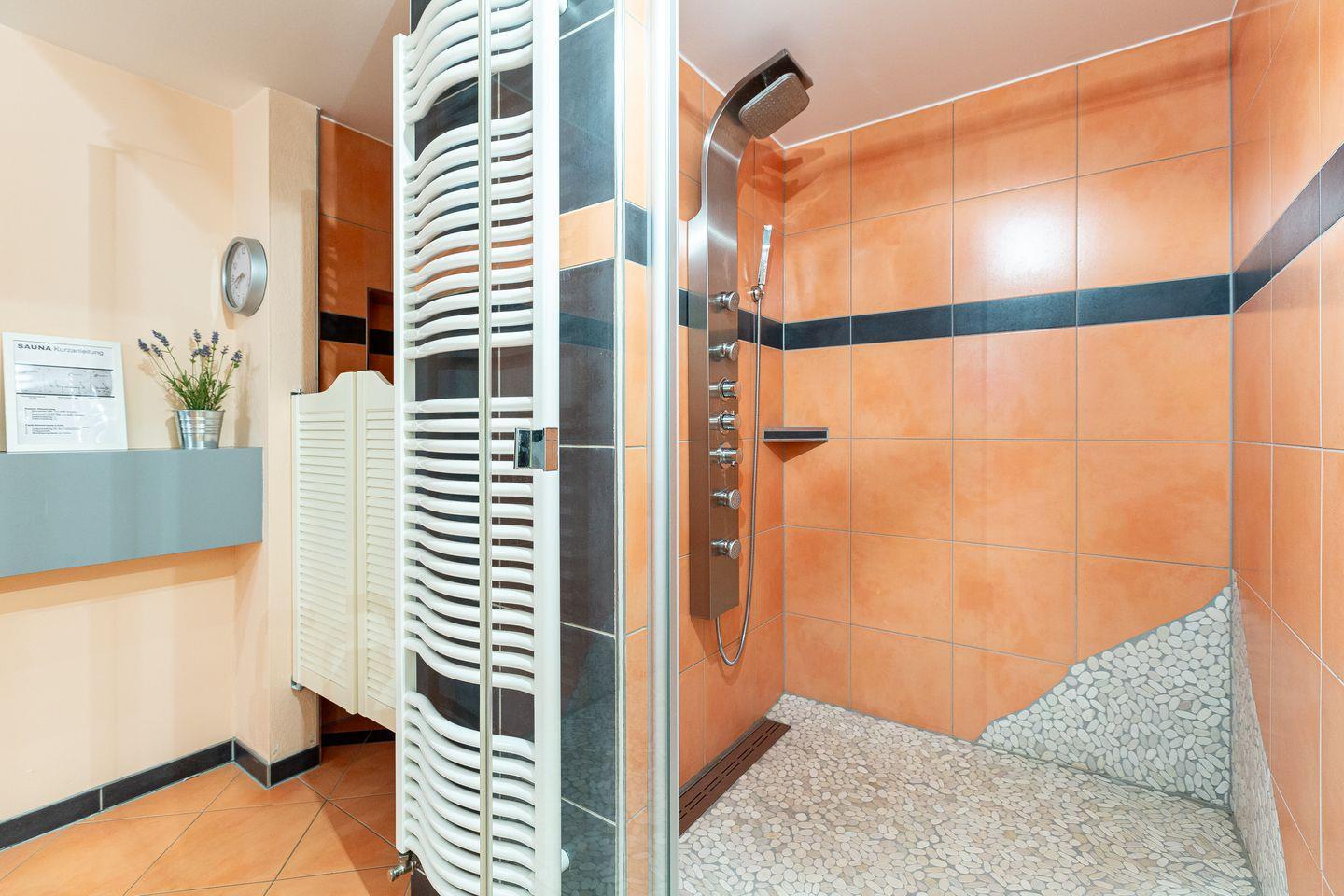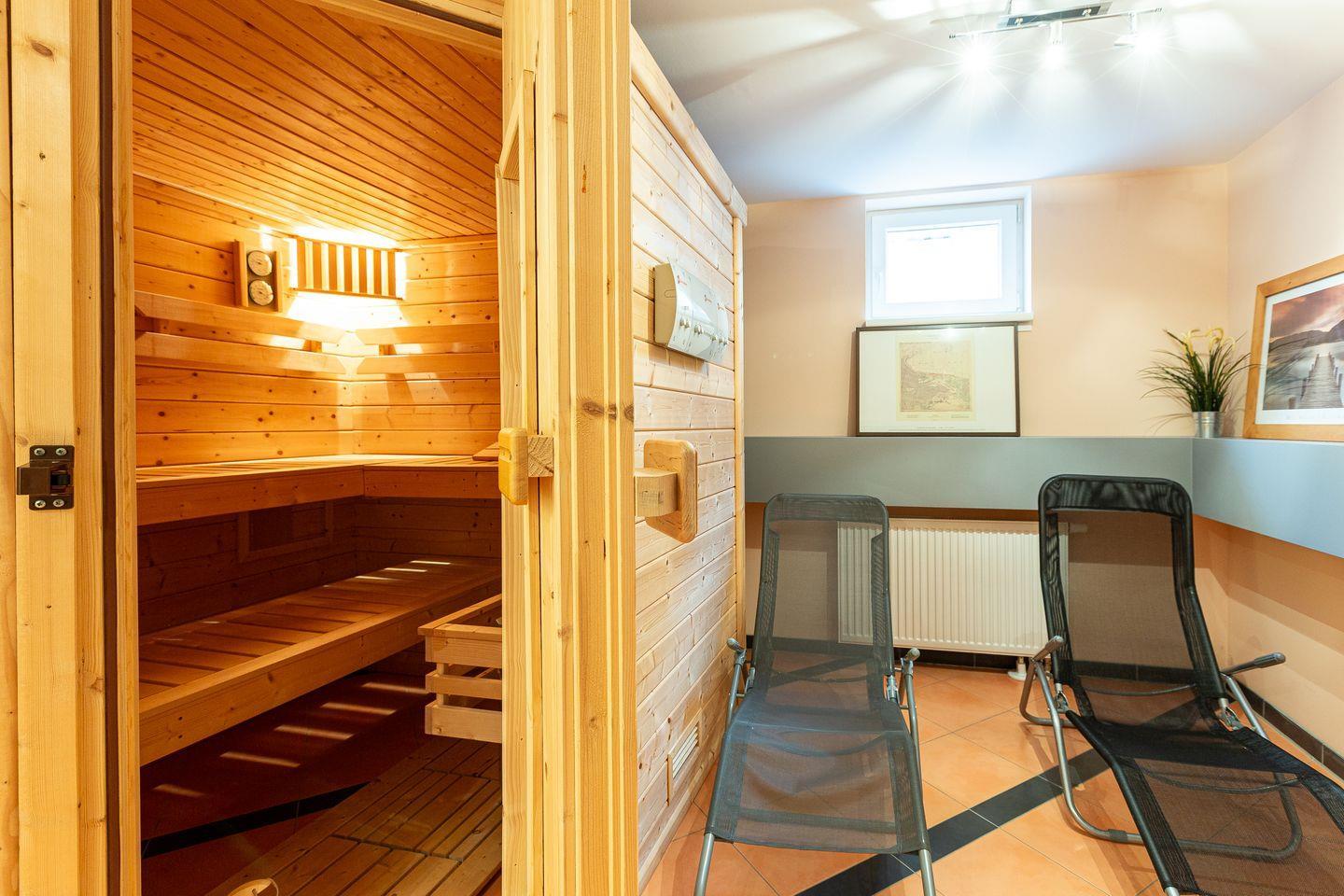 Im Keller stehen eine Sauna, eine Tischtennisplatte, eine Dartscheibe und ein Fitnessbereich mit Trampolin und Hometrainer als Schlechtwetter-Alternativen zur Verfügung. Für weiteren Komfort befindet sich auch im Untergeschoss eine Dusche und ein WC.