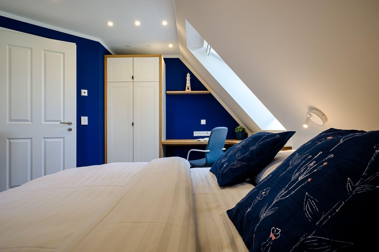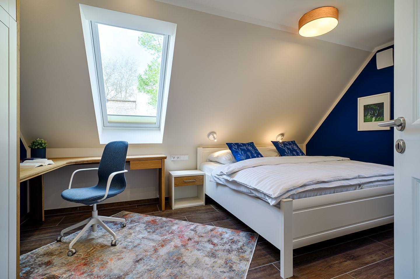 1 Schlafzimmer mit Doppelbett (1,80 x 2,00 m), TV, Arbeits-und Lernbereich