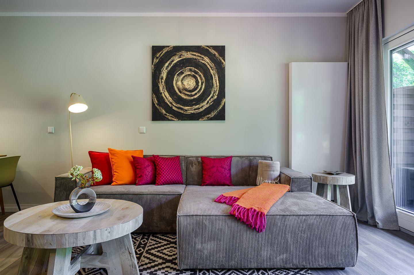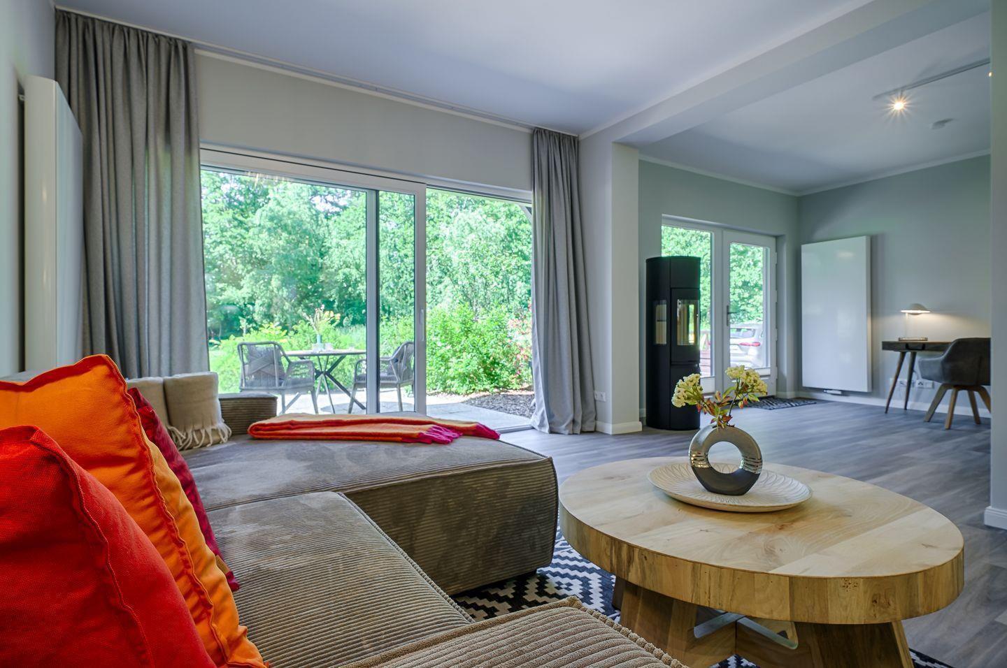 Wohnraum mit Sofa und Kamin ( Nutzung ab 2026 )