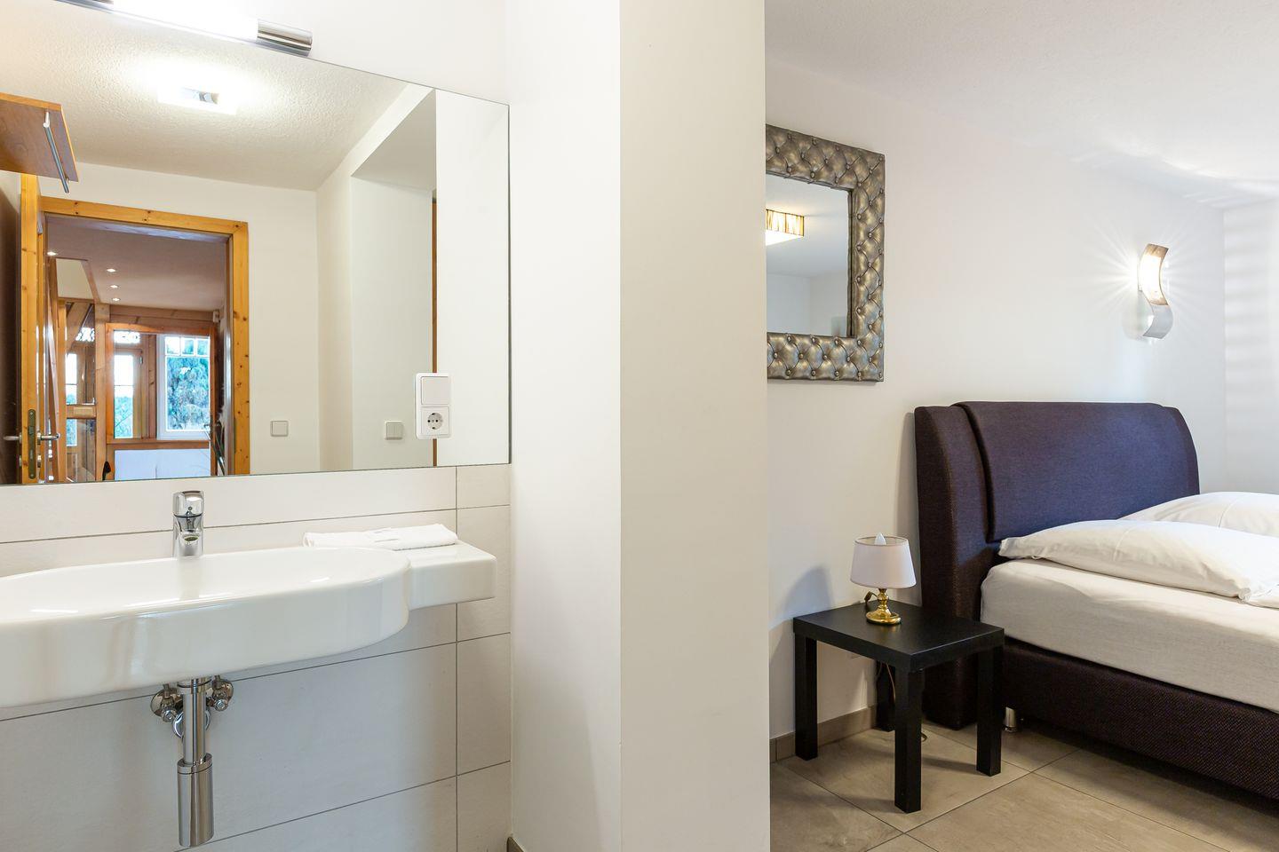 Noch eine Treppe höher erwartet dich ein Chillout-Bereich mit Sofa – der perfekte Ort, um die Ruhe zu genießen und den Ausblick auf die umliegende Natur schweifen zu lassen. Ein kleiner Balkon ergänzt das Angebot und schafft zusätzlichen Raum für entspannte Momente an der frischen Luft.