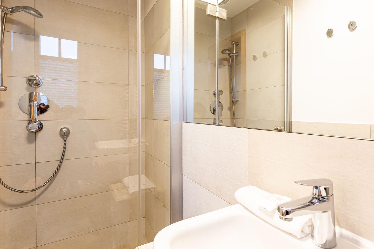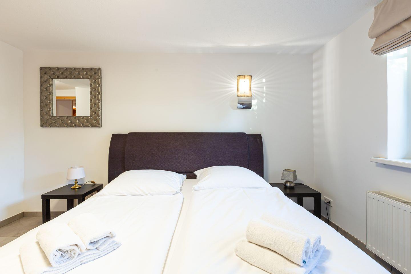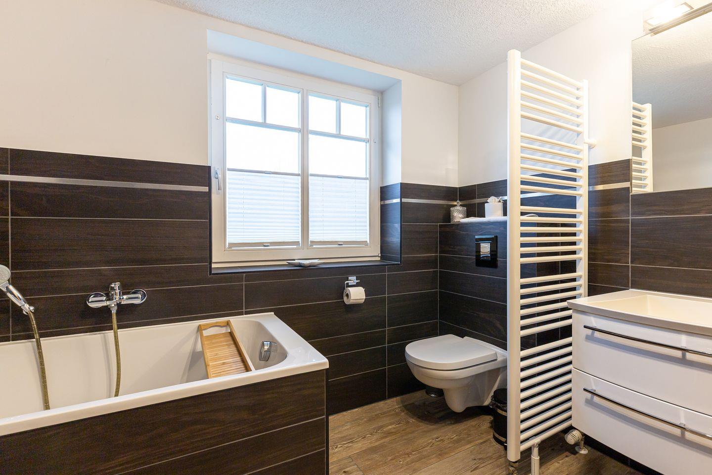 Beim Eintritt stehst du in der großen Veranda, die viel Licht hereinlässt und einen herrlichen Blick ins Grüne ermöglicht. Mit drei gemütlichen Schlafzimmern und zwei Bädern en suite ist ausreichend Platz für Familie und Gäste im Erdgeschoss vorhanden. Der Wohn- und Küchenbereich befindet sich im ersten Stock und lädt mit einem großen Esstisch, einer Sofaecke sowie einem TV zu entspannten Stunden ein. Die voll ausgestattete Küche macht das gemeinsame Kochen zum Vergnügen. Ein drittes Bad rundet den Wohnkomfort ab.