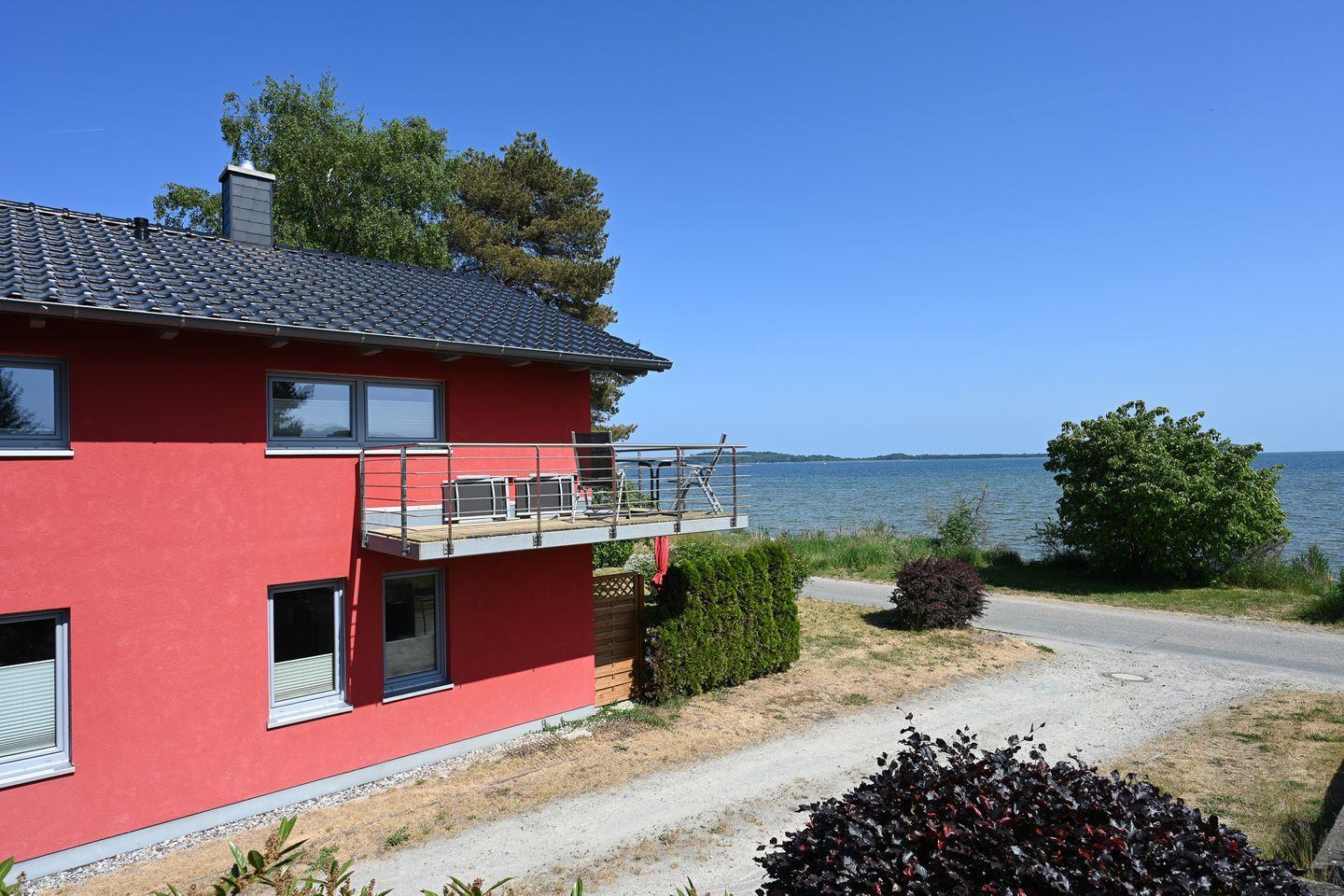 Im Erdgeschoss des Ferienhauses "Boddenblick" untergebracht, bietet diese 3 Zimmer Wohnung auf 50 m² Platz für bis zu vier Personen. Das Herz der Ferienwohnung bildet der gemütliche Wohnbereich mit voll ausgestatteter Küchenzeile. Bei Schietwetter machen Sie es sich auf der Couch bequem und genießen die wohlige Wärme des Kaminofens. Durch die Terrassenfenster bietet sich ein traumhafter Blick über den Greifswalder Bodden zur Insel Vilm.