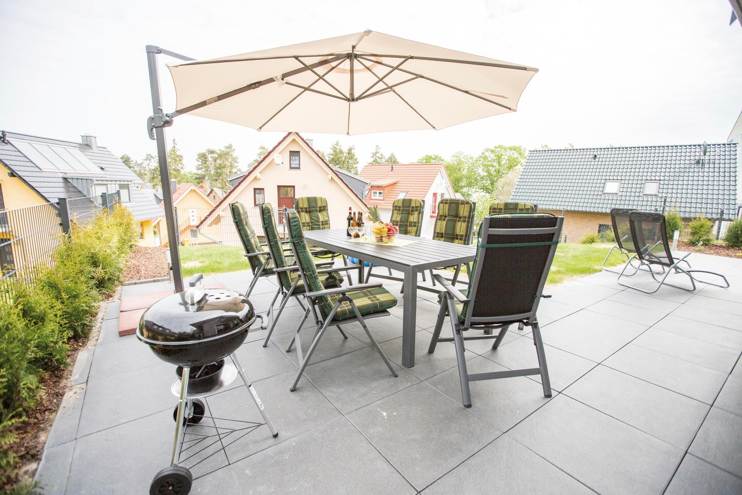 - Balkon und eine mit Gartenmöbeln ausgestattete Terrasse