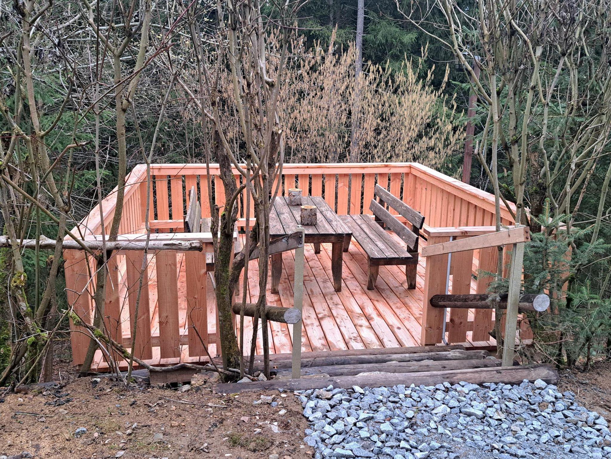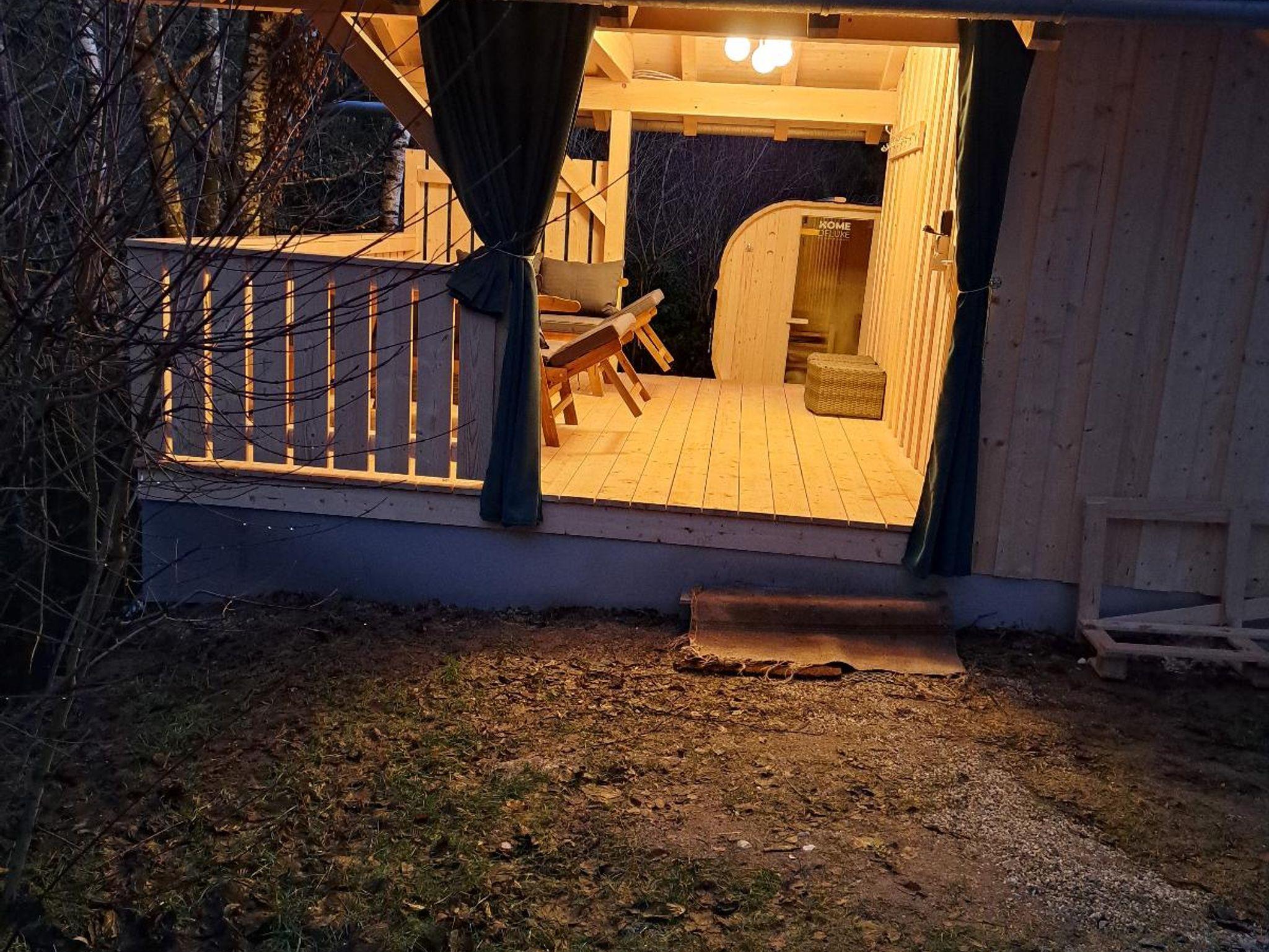 angrenzenden Wald. Im Februar 2024 werden wir zusätzlich eine Infrarotwärmekabine ins Wellnesshäuschen einbauen. Diese kann nur von den Gästen des Ferienhauses Maria