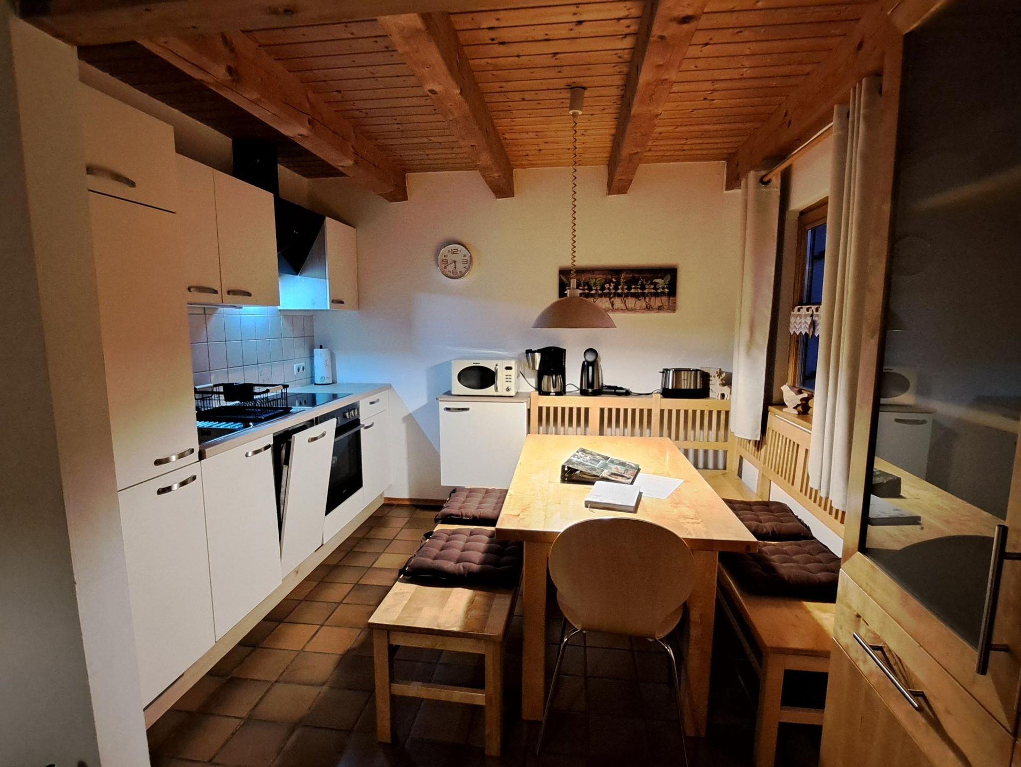 Erdgeschoss finden Sie ein sehr gemütlich eingerichtetes Wohnzimmer mit schönem Kaminofen und eine voll eingerichtete Wohnküche mit
