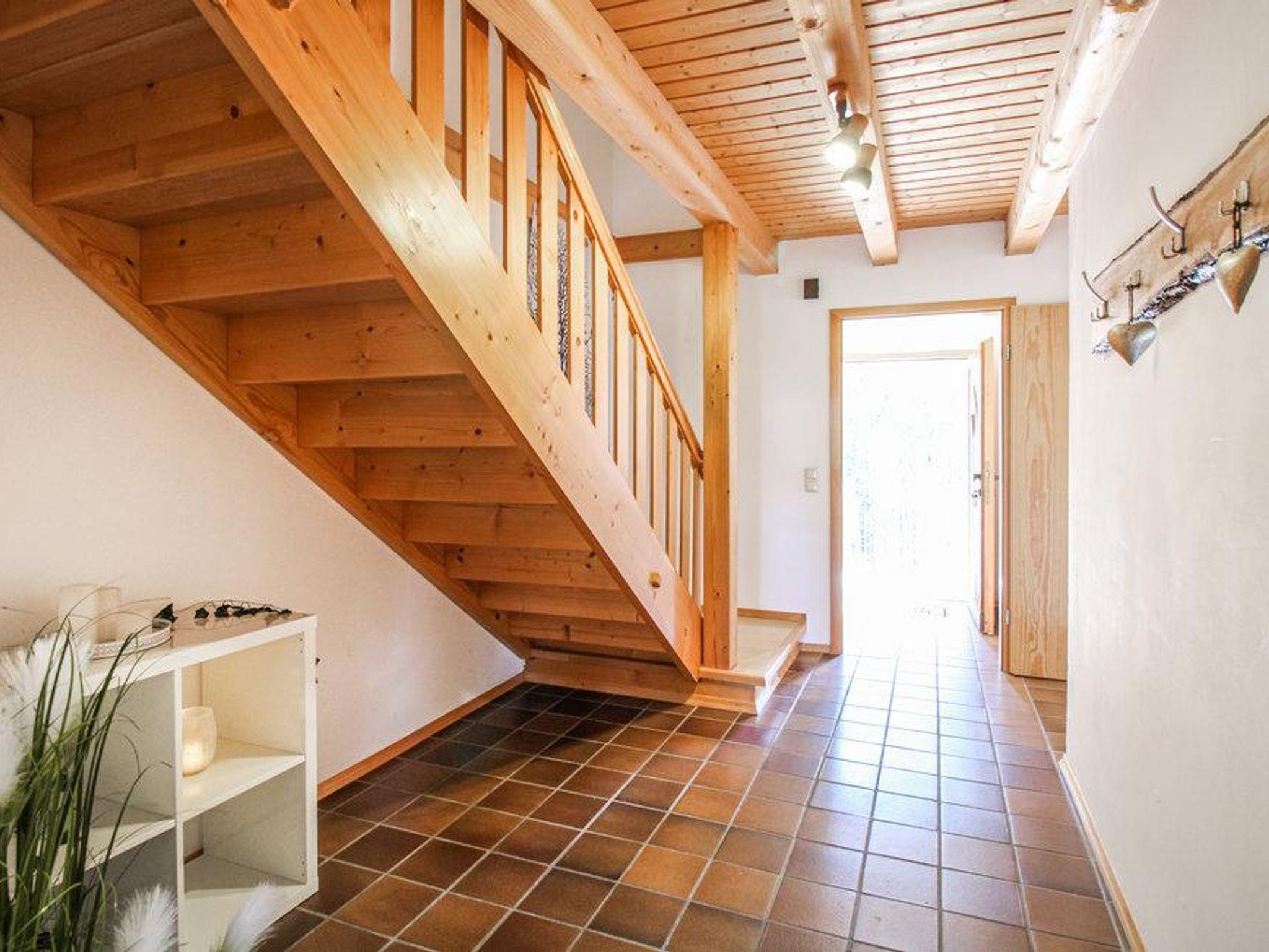 Räume sind hell und haben Sichtbalken, was dem Haus seine besondere Note