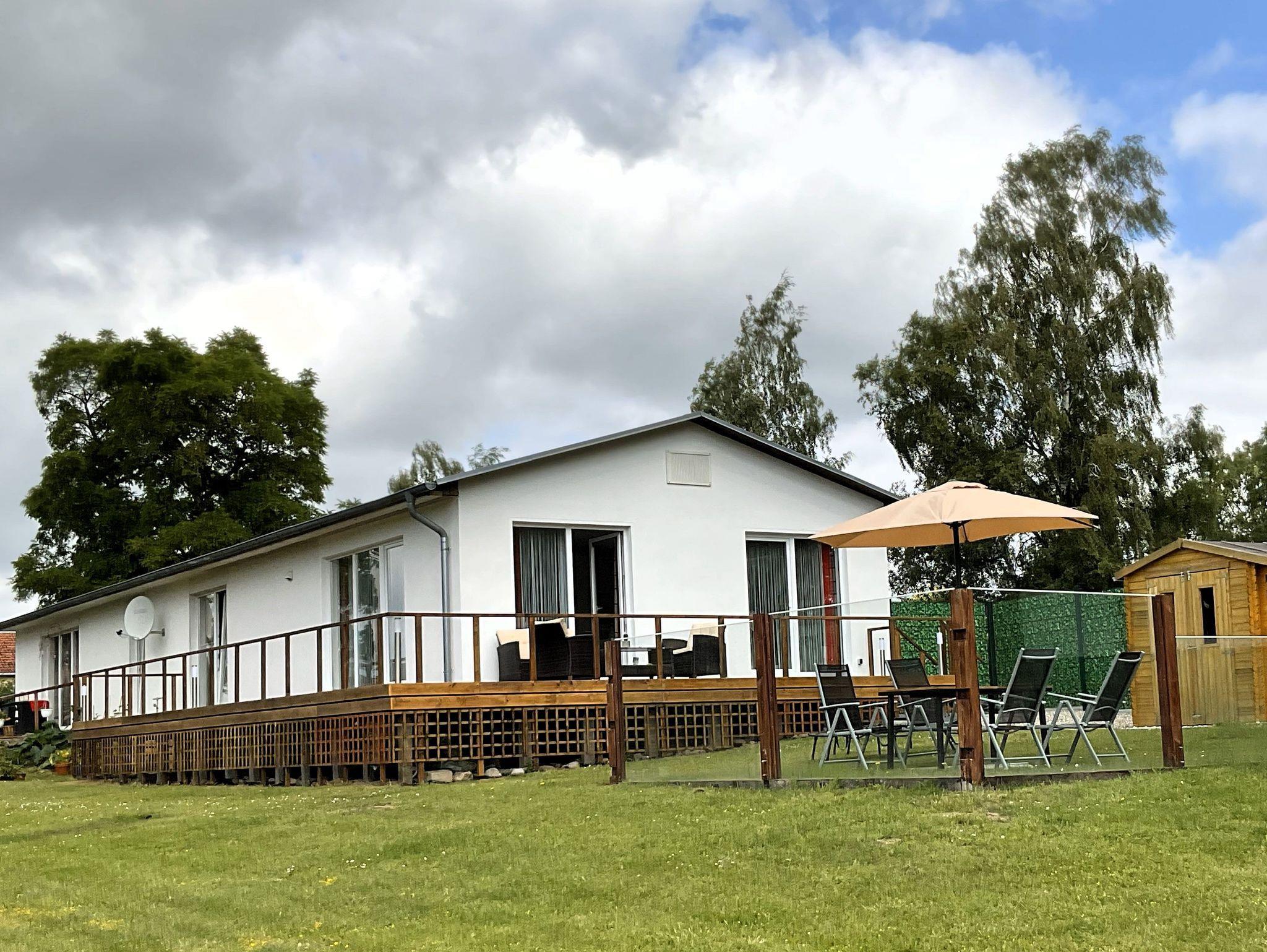 Das Ferienhaus mit zwei Wohneinheiten liegt am ca. 24 ha großen Reimershagener See in der Mecklenburgischen Seenplatte. Es befindet sich auf einem eingezäunten Grundstück mit direktem Seeblick und mit Zugang zur Badestelle mit Beachvolleyball ? und Kleinsportplatz. Das Haus verfügt über kostenloses W-LAN, eine Terrasse mit Panoramablick, eine Liegewiese mit Sonnenliegen sowie einen Grillplatz. Des Weiteren steht ein abschließbarer Fahrradraum zur Verfügung sowie ein kostenloser Parkplatz und Carport.
