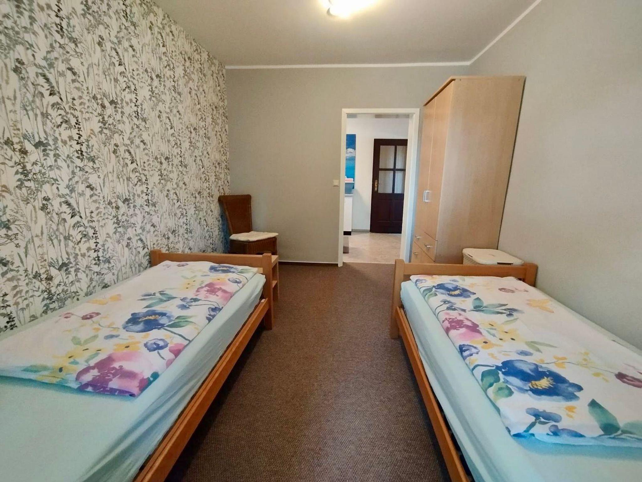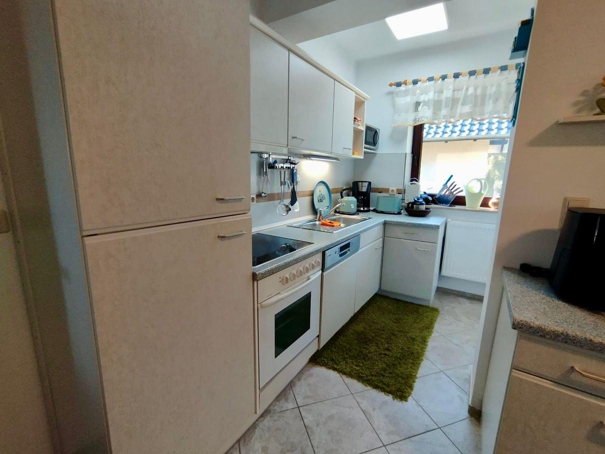 eine möblierte Logia im Eingangsbereich, ein Wohnzimmer mit TV, zwei separate Schlafzimmer (1 Doppelbett, 2 Einzelbetten), eine voll ausgestattete Einbauküche mit Esstisch sowie ein modernes Badezimmer mit Dusche und WC. Im Außenbereich stehen Ihnen ein PKW-Stellplatz sowie eine gepflegte Grünfläche mit Grillmöglichkeit zur Verfügung.