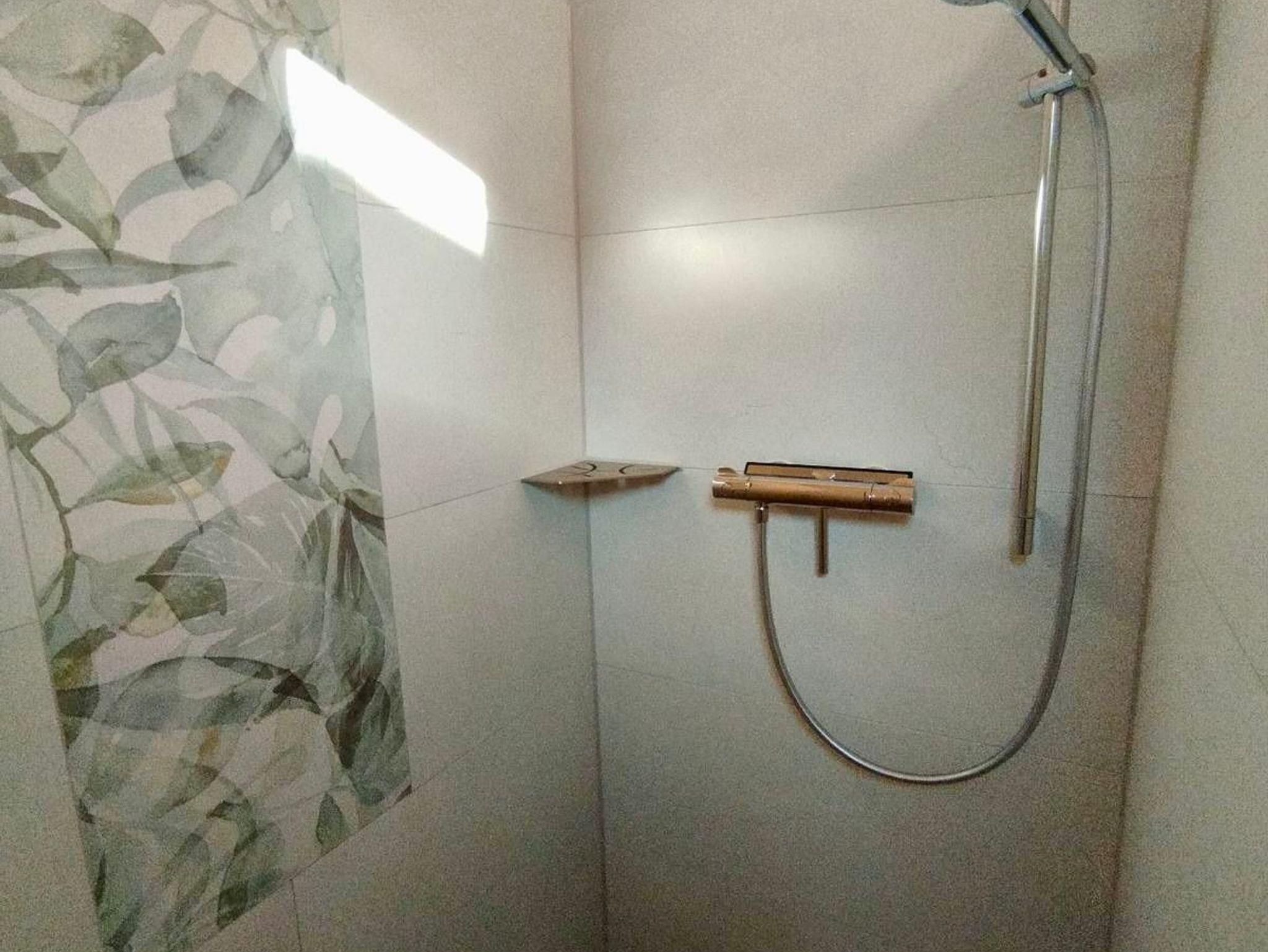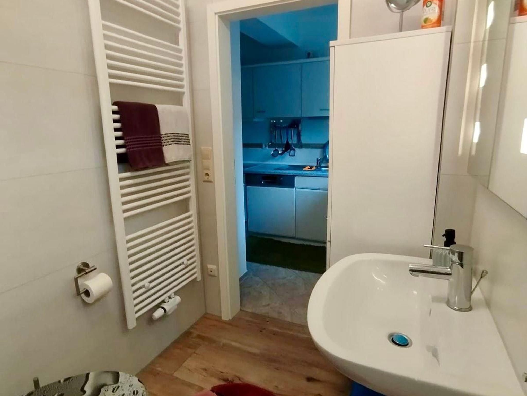 eine komplett ausgestattete Küche mit Esstisch, ein modernes Bad mit Dusche und WC.