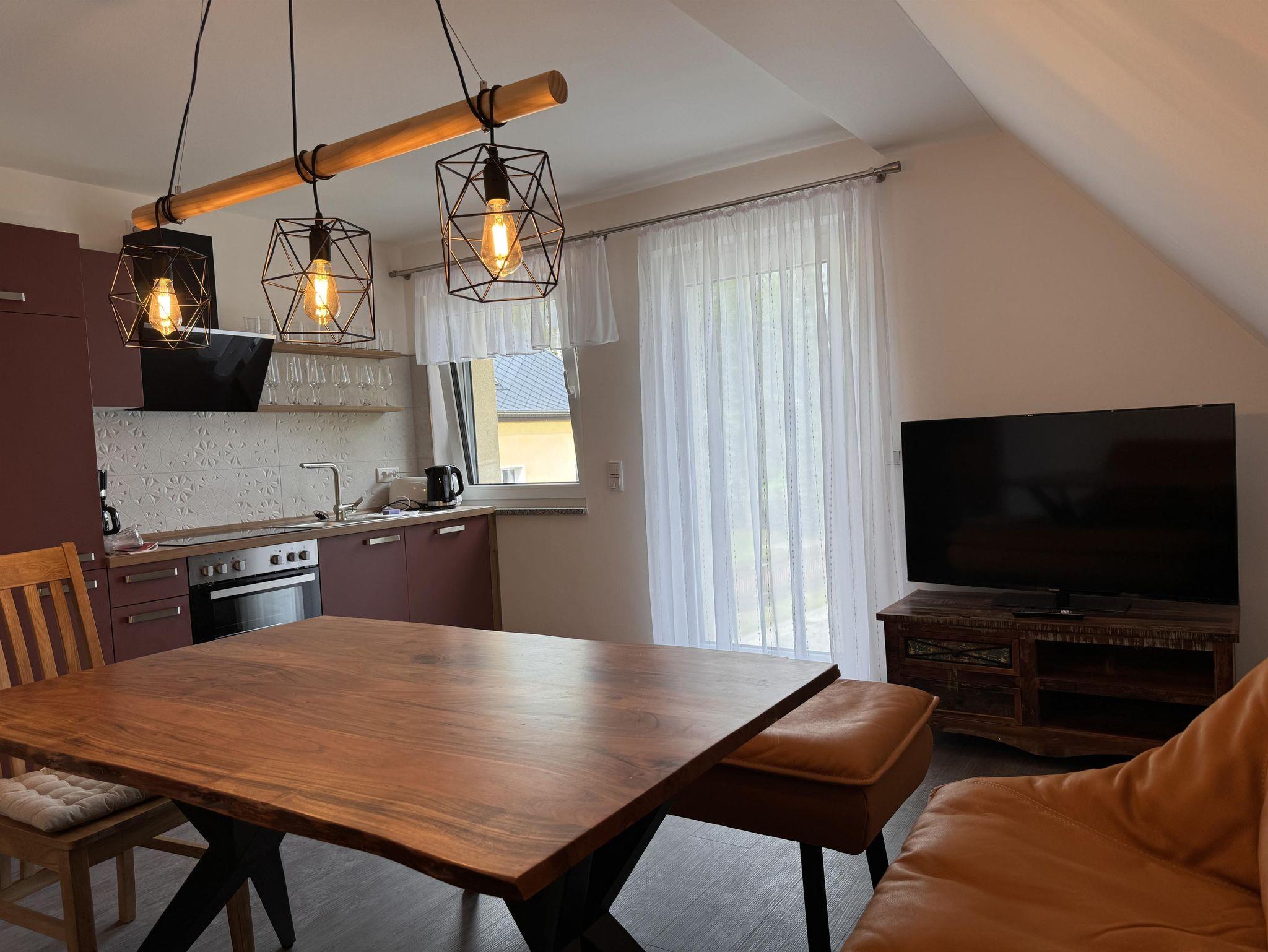 Erleben Sie einen erholsamen Aufenthalt in unserer gemütlichen Ferienwohnung Falkenschlucht, die sich im Obergeschoss befindet und auf ca. 49 m² ausreichend Platz für 3-4 Personen bietet. Die Wohnung verfügt über zwei separate Schlafzimmer, die Ihnen den nötigen Raum für Ruhe und Erholung bieten. Das moderne Badezimmer sorgt für zusätzlichen Komfort während Ihres Aufenthalts. Im Herzen der Wohnung finden Sie das einladende Wohnzimmer, das nahtlos mit einer modernen und voll ausgestatteten Küche verbunden ist. Hier können Sie gemeinsam kochen, essen und entspannen – ideal für gesellige Abende nach einem erlebnisreichen Tag. Die Ferienwohnung verfügt zusätzlich über einen großzügigen Balkon.