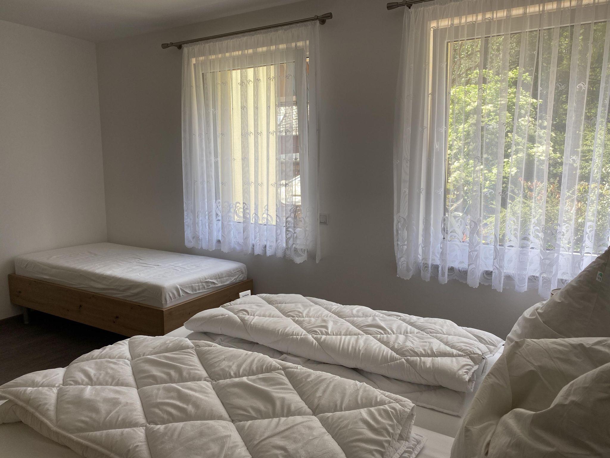 Entdecken Sie Ihren perfekten Rückzugsort im Herzen der Natur! Unsere großzügige Ferienwohnung „Zwillingsstiege“ im Erdgeschoss bietet auf 62 m² ausreichend Platz für 3 bis 6 Personen und ist ideal für Familien oder kleine Gruppen . Genießen Sie die Aussicht von Ihrem eigenen großen Balkon, der zum Entspannen und Verweilen einlädt. Die Wohnung verfügt über zwei separate Schlafzimmer, die Ihnen Ruhe für erholsame Nächte versprechen. Das moderne Badezimmer sorgt für zusätzlichen Komfort während Ihres Aufenthalts.
