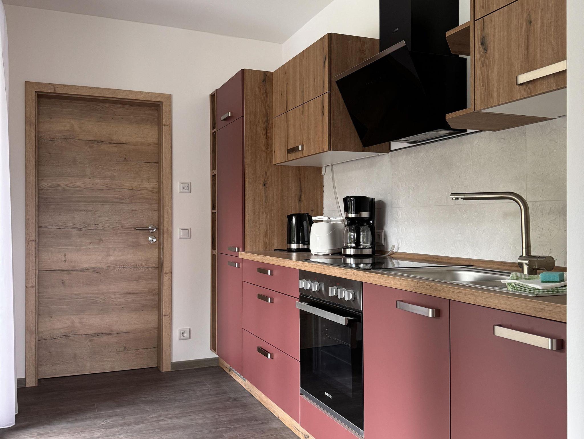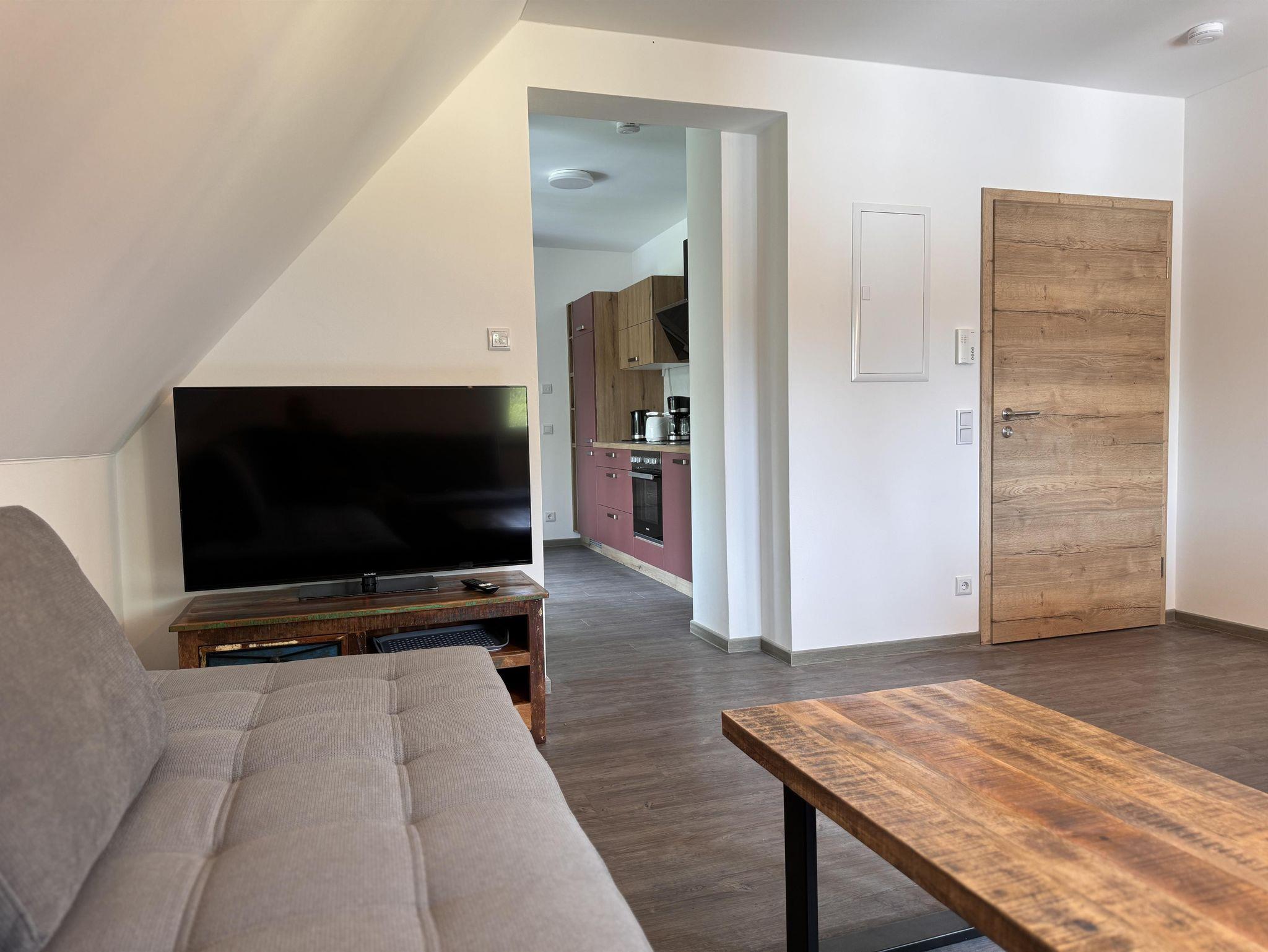Im hellen Wohnzimmer können Sie entspannen und die Seele baumeln lassen. Die hochwertige, voll ausgestattete Küche lädt dazu ein, gemeinsam zu kochen und kulinarische Köstlichkeiten zu zaubern. Bei Bedarf verwandelt sich die gemütliche Couch im Wohnzimmer in eine praktische Schlafcouch, sodass auch zusätzliche Gäste bequem untergebracht werden können.
