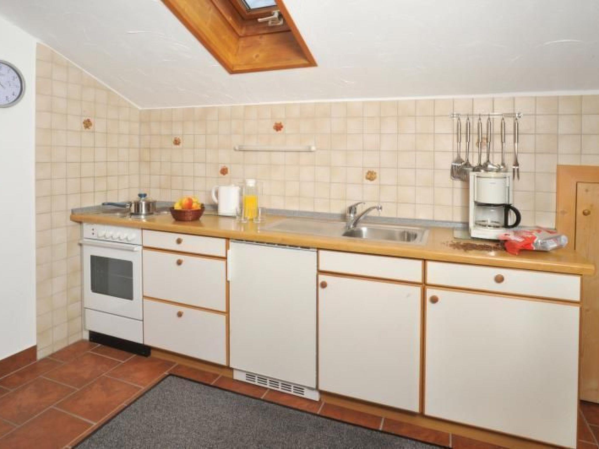 The spacious and comfortable holiday apartment with a lovely mountain view is light and friendly. It provides around 50m² of living space and is on the second floor, facing south-west. The apartment has a separate and fully-equipped kitchen with a four-ring hob, oven and fridge. There is a bathroom with a shower/WC. The big bedroom is furnished with a double bed (180 x 200cm) and the big living room has a dining corner and cupboard beds.