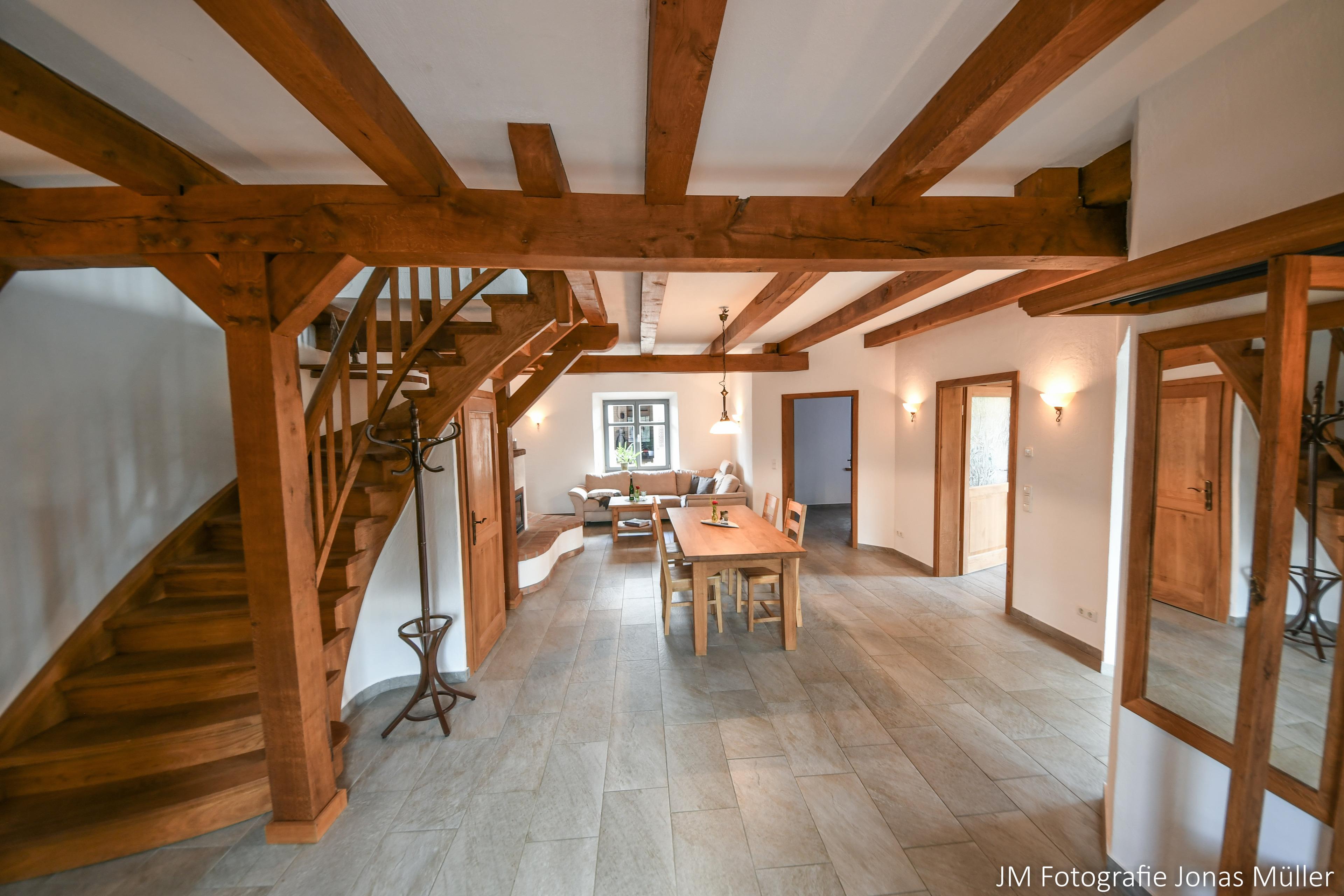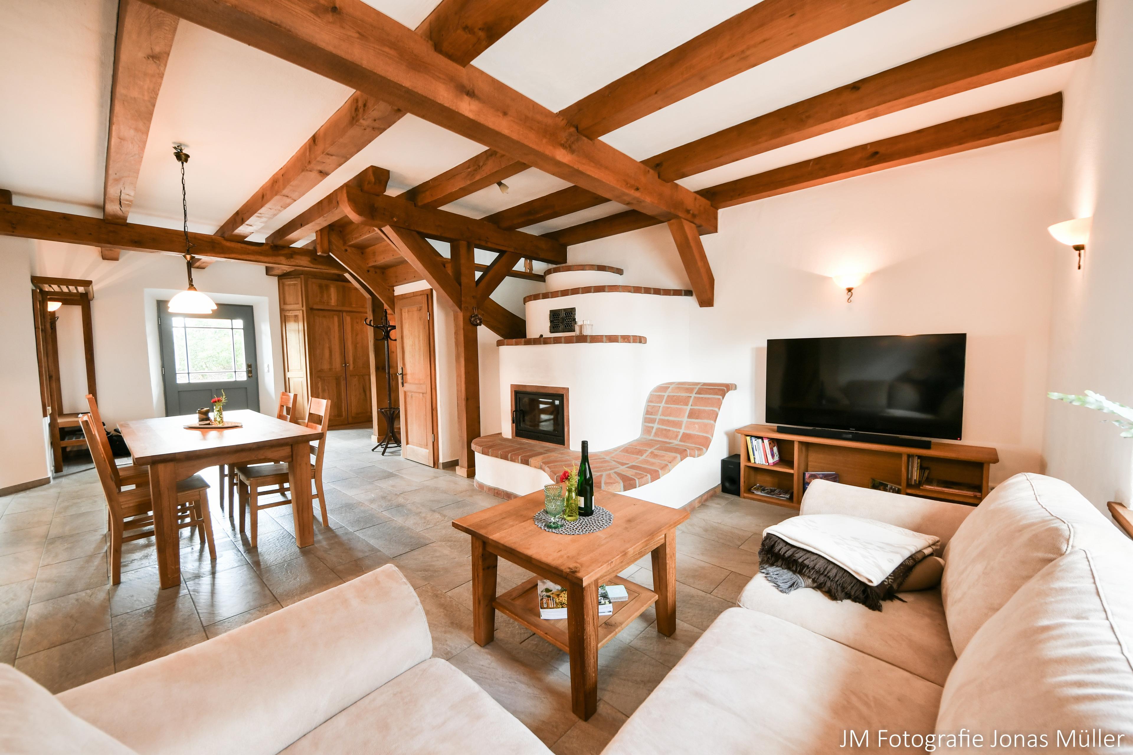 Die Wohnung ist behindertengerecht und eignet sich bis zu 6 Personen. Über 2 Stockwerke verteilt sind 2 Schlafräume, je ein Bad und je ein Wohnraum zum verweilen, als Aufbettung dient eine ausziehbare Schlafcouch oder Einzelliegen zum dazu stellen, ein Kinderbett ist vorhanden.Desweiteren gibt es einen großen Kamin und eine Holzterrasse, die von der Küche aus begehbar ist.Wie immer ist auch hier genug Infomaterial zur Urlaubsgestaltung vorhanden.