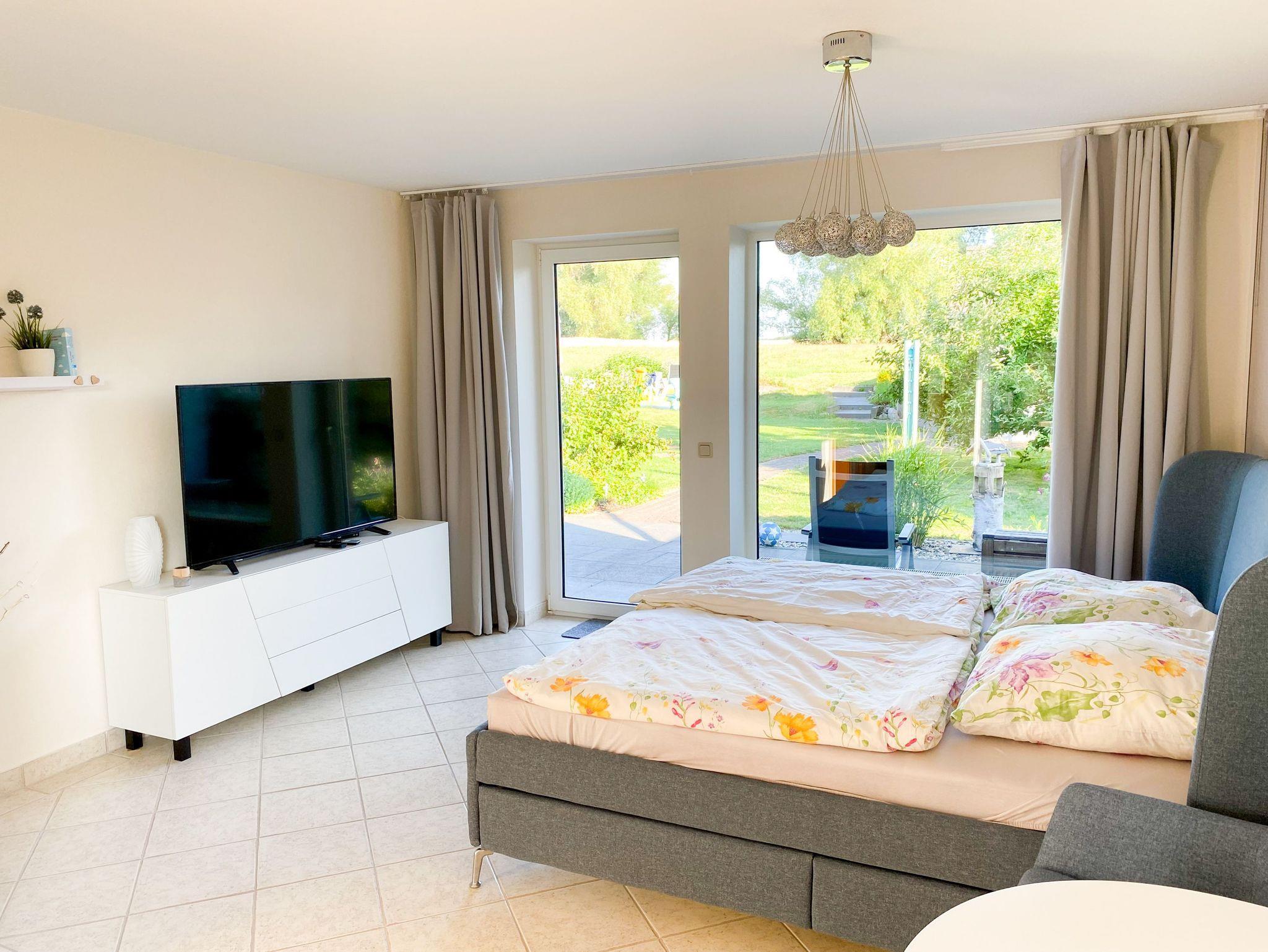 Die Ferienwohnung Hakuna Matata in Reppelin befindet sich im Haus des Vermieters und ist über einen separaten Eingang zu erreichen. Sie bietet Platz für zwei Personen mit einem Kleinkind und besticht durch eine Terrasse. Das kombinierte Wohn- Schlafzimmer ist ausgestattet mit einem Doppelbett (180x200), TV und einem kleinen Esstisch. Die offene Küche lädt zum Kochen ein und verfügt über einen Herd, Kühlschrank, Toaster und Wasserkocher. Über einen kleinen Flur mit Garderobe gelangt man in das mit einer Dusche und WC ausgestattete Tageslichtbad.