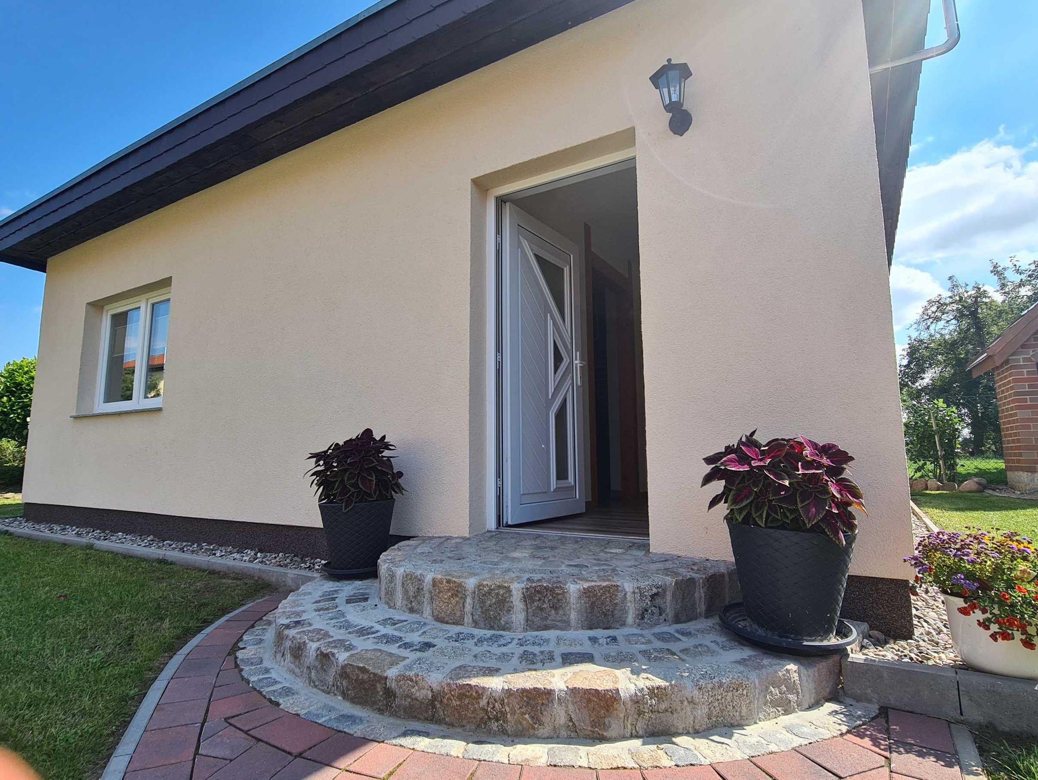 Ferienbungalow mit 48m² Wohnfläche für 2 Personen plus Kind mit mit Kamin, Grill, Feuerschale und Räucherofen im Garten des Privatgrundstücks am Dorfteich. Nichtraucherhaus und tierfrei, außer 2 Eingangsstufen ebenerdig. Die Erstausstattung Bettwäsche und Handtücher sowie Starterset Kaminholz sind im Preis enthalten.