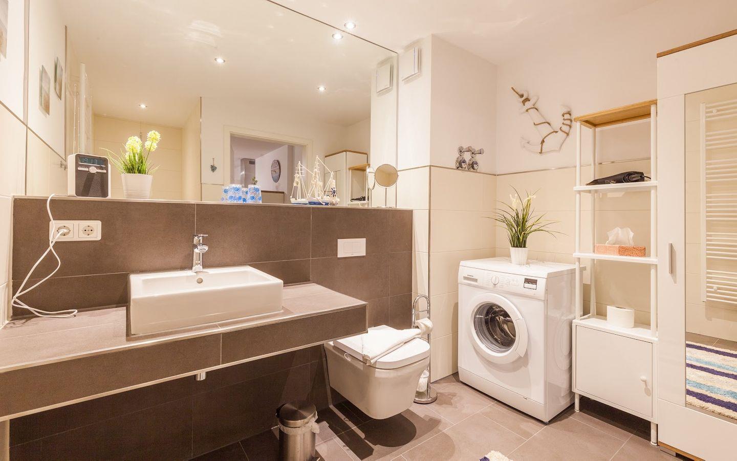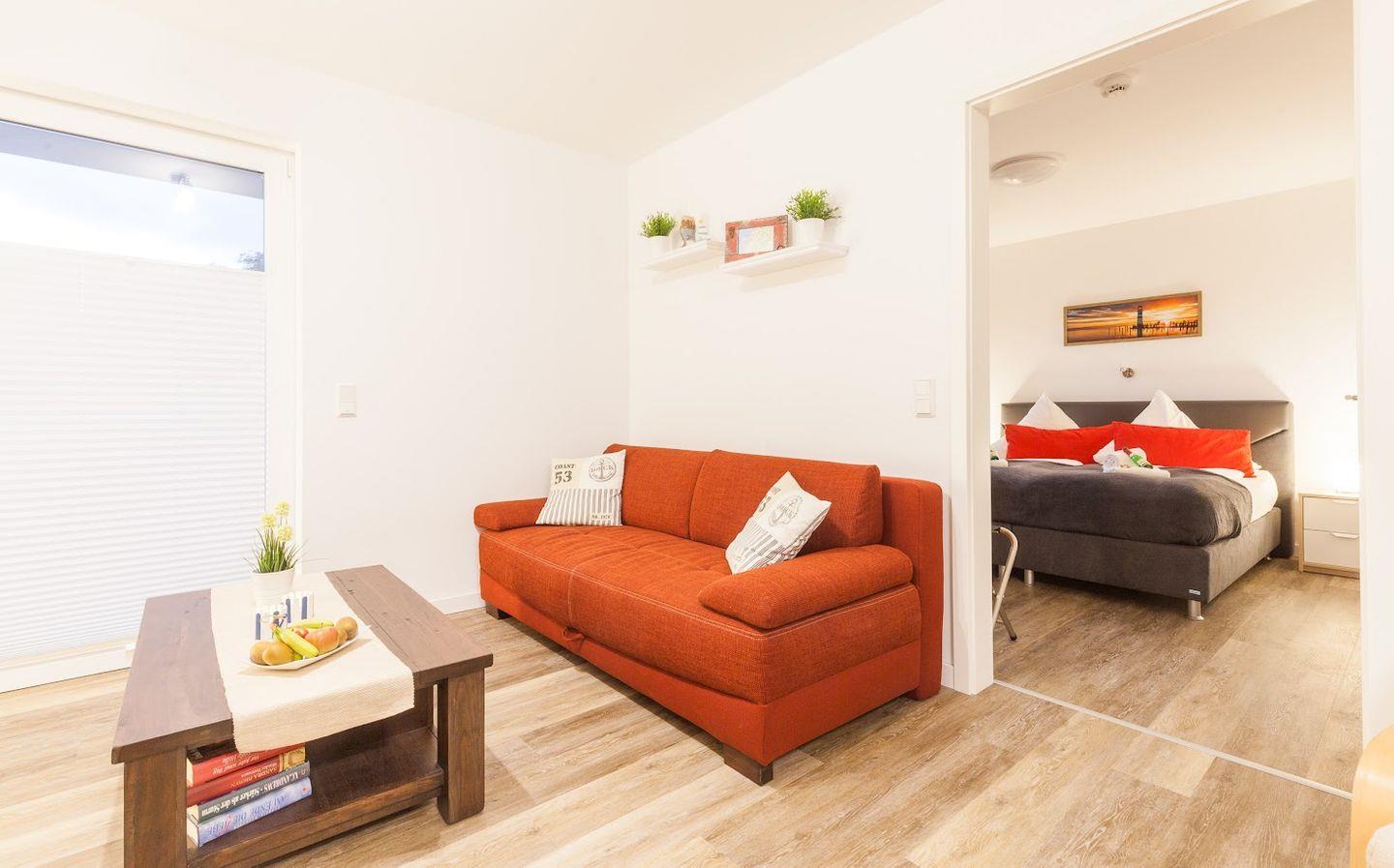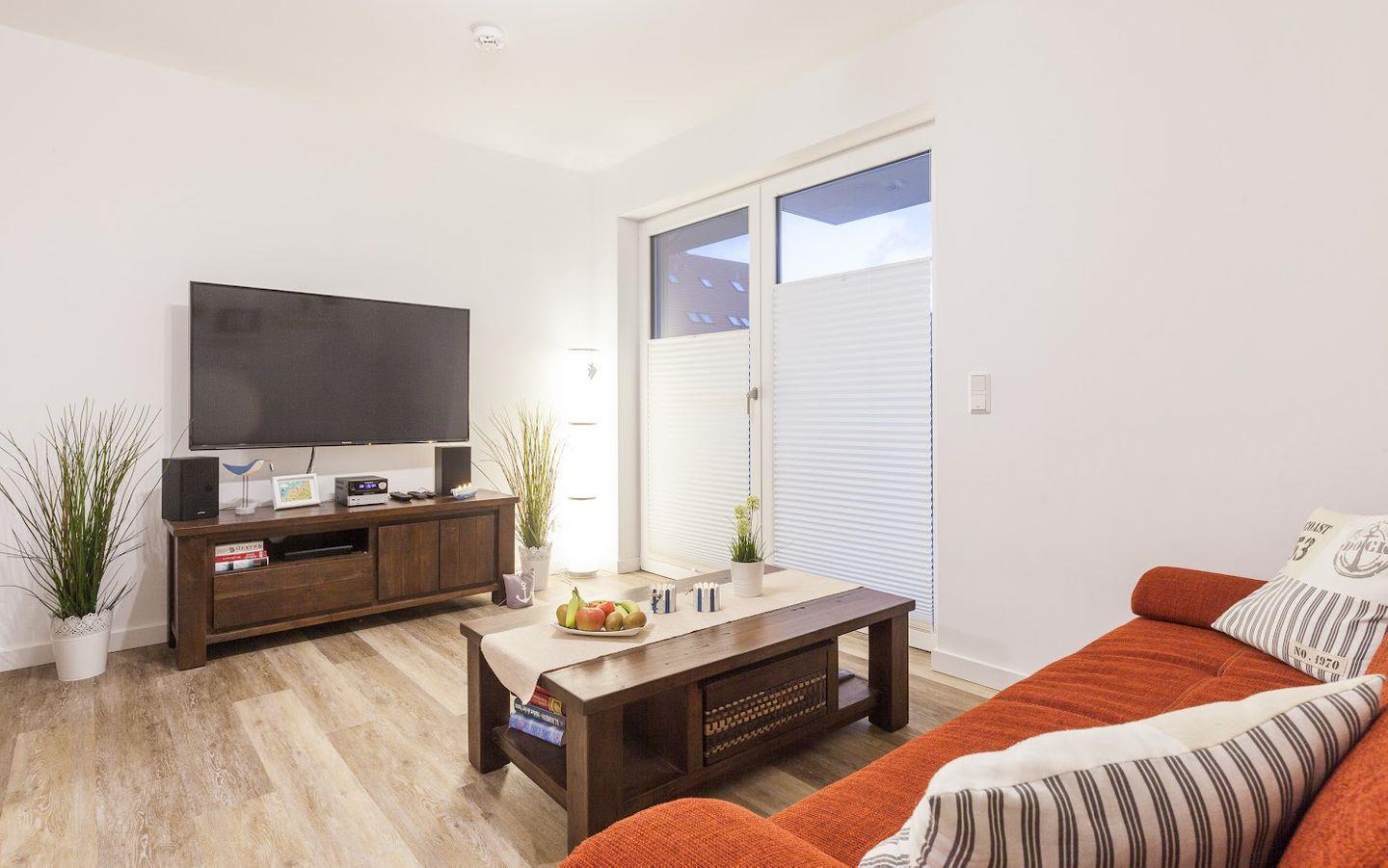 Die Wohnung verfügt über ein Schlafzimmer mit einem sehr bequemen Doppelbett (180 x 200 mit einer durchgängigen Matratze). Im offen gestalteten Wohn-Essbereich erwartet Sie eine gemütliche Couch, ein Flachbild-TV, ein schöner Essbereich und eine voll ausgestattete Küche mit Geschirrspüler, Backofen, Kaffeemaschine, Wasserkocher, Toaster und Mikrowelle. Im modernen Bad mit ebenerdiger Dusche ist auch eine Waschmaschine integriert.
