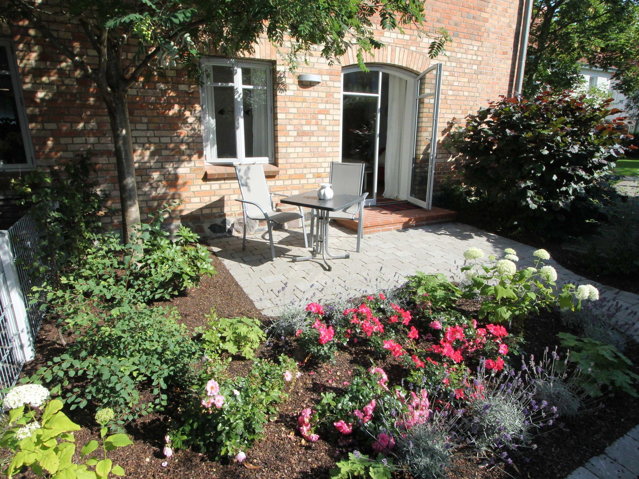 Genießen Sie die Morgensonne auf der Frühstücksterrasse unter Ihrem Schlafzimmerfenster.