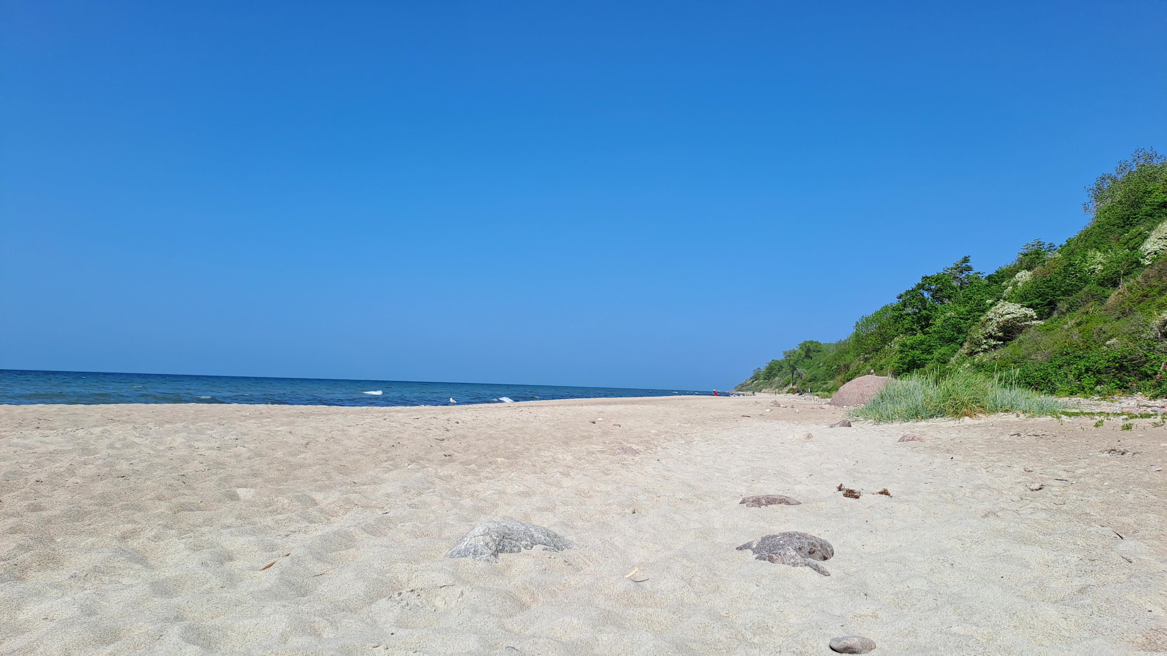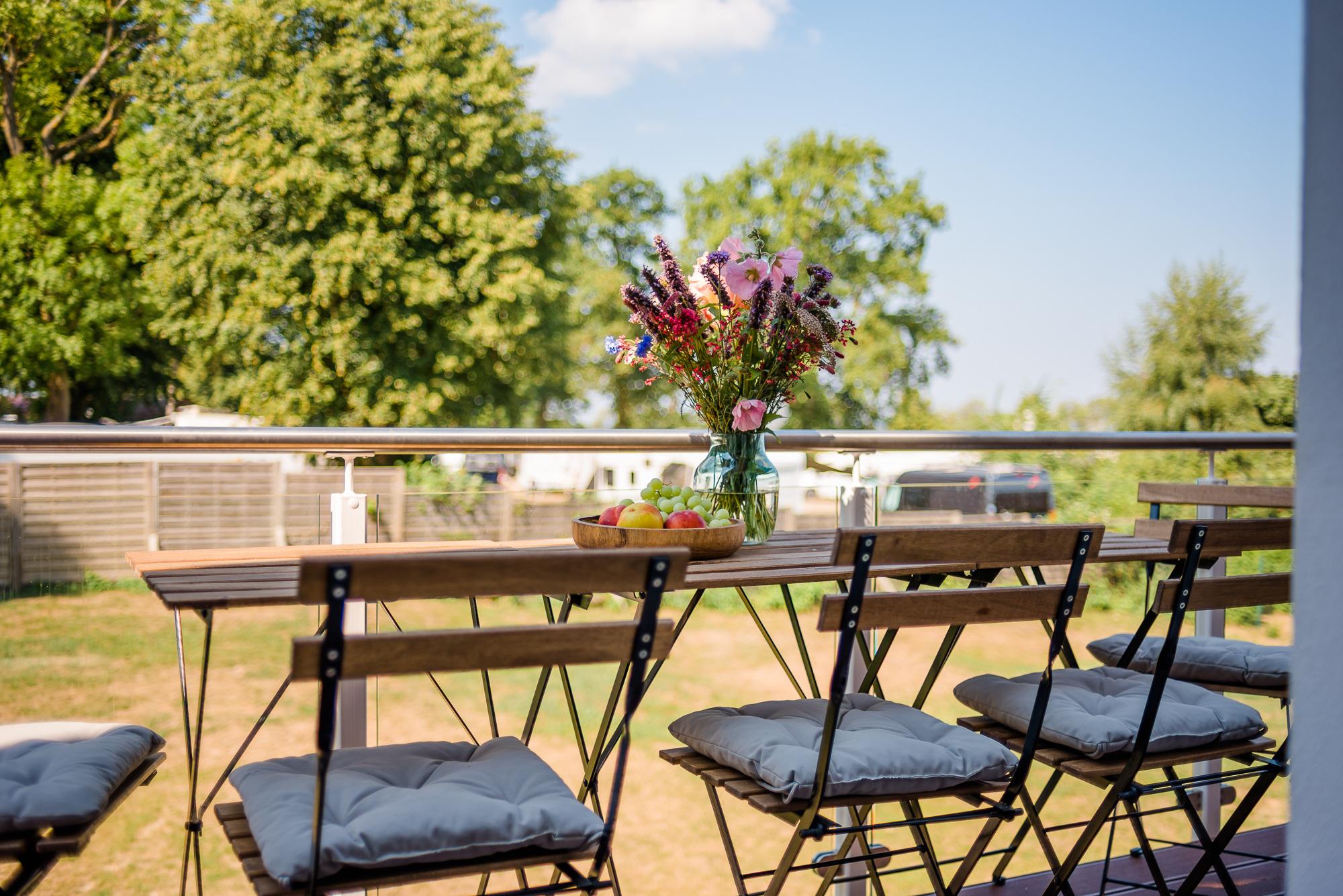 Möblierter Südwest-BALKON (kein Grill) mit traumhaftem Blick ins Grüne und kleinem Ostseeblick.