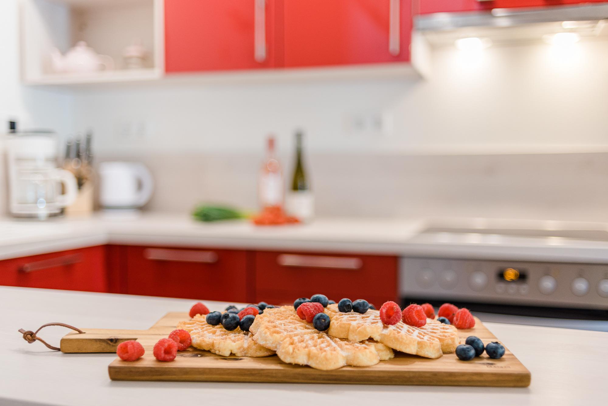 - Backofen, Spülmaschine, Kühlschrank mit Gefrierfach, 4er-Cerankochfeld, Mikrowelle, Kaffeemaschine, Senseo, Toaster und Wasserkocher sowie viele weitere Kochutensilien