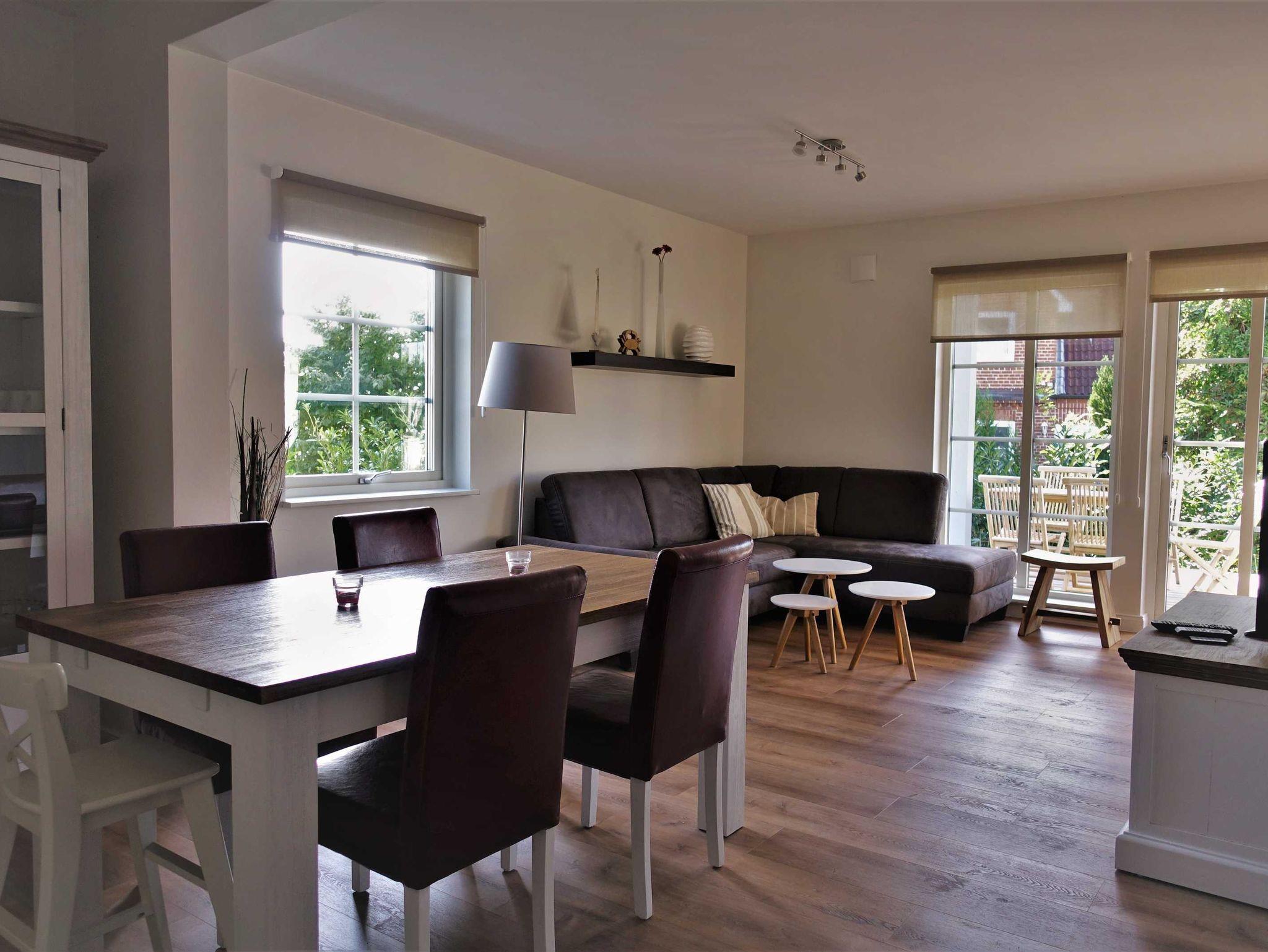 Die sehr geräumige und sonnige Ferienwohnung mit großer Südterrasse (24 m²) liegt im Erdgeschoss einer Apartmentwohnanlage in wunderschöner, ruhiger Lage von Rettin. Die Wohnung ist mit geschmackvollen und aufeinander abgestimmten Möbeln eingerichtet und verfügt über einen großen Wohn-/Essbereich mit offener Küche, 2 Schlafzimmern und ein Bad.