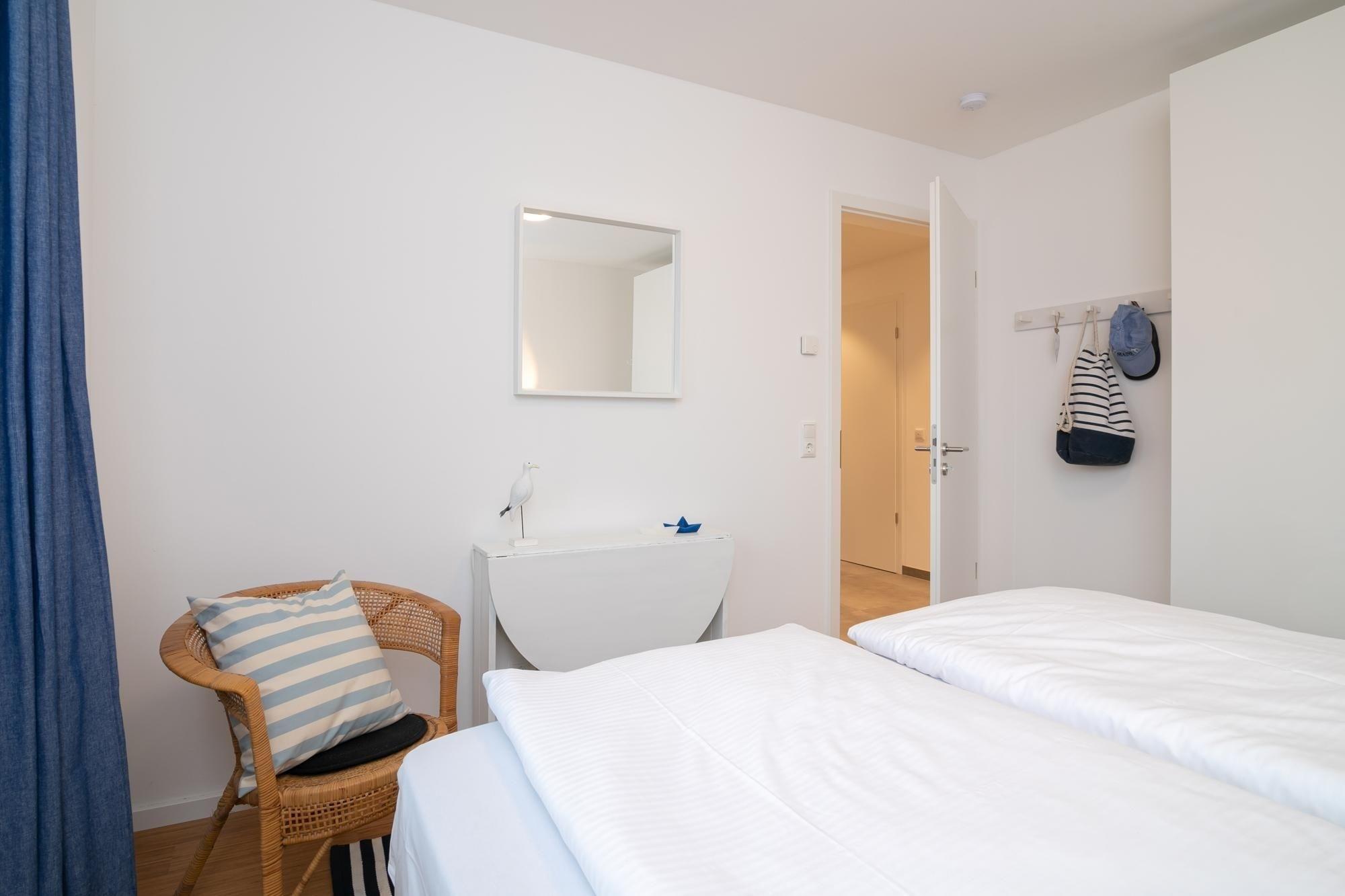 Schlafzimmer 3: 2 Einzelbetten (je 90x200 cm), Kleiderschrank, Verdunkelung (Plissees und Vorhänge)