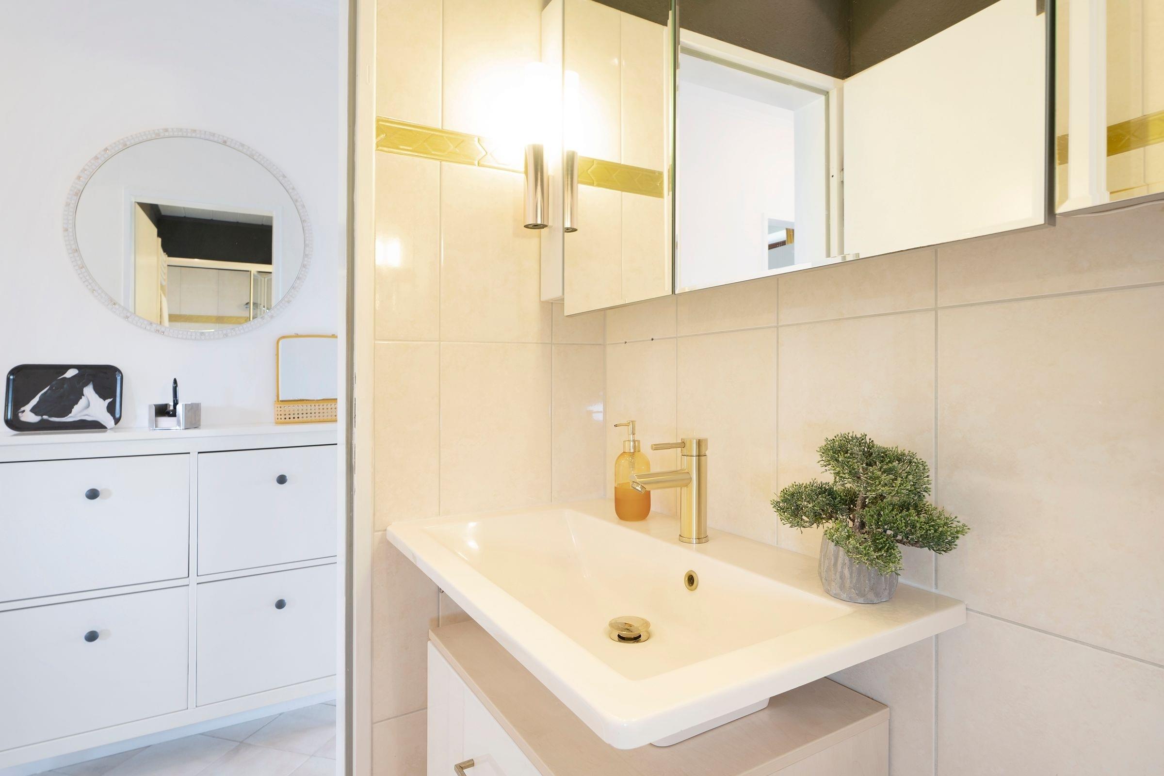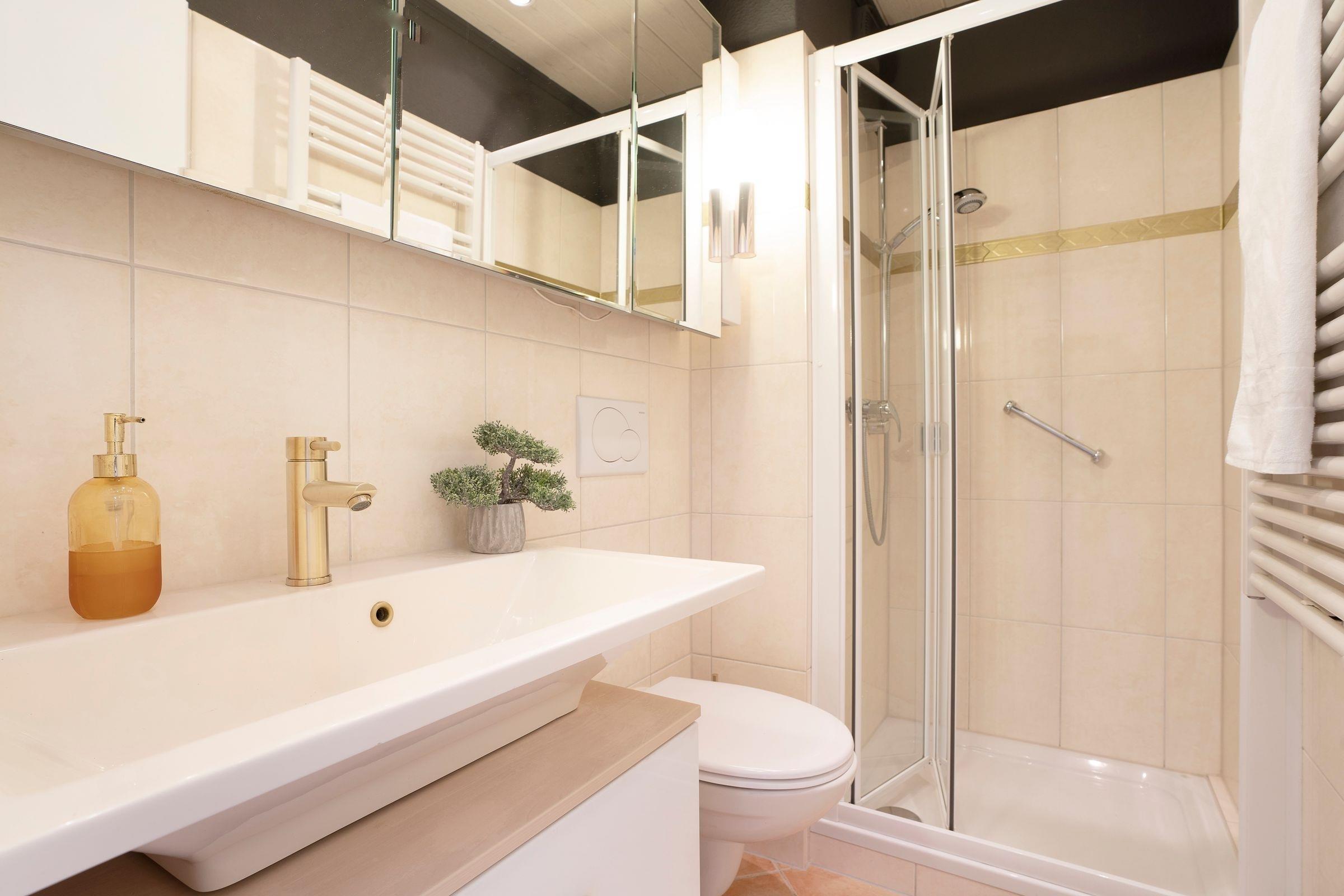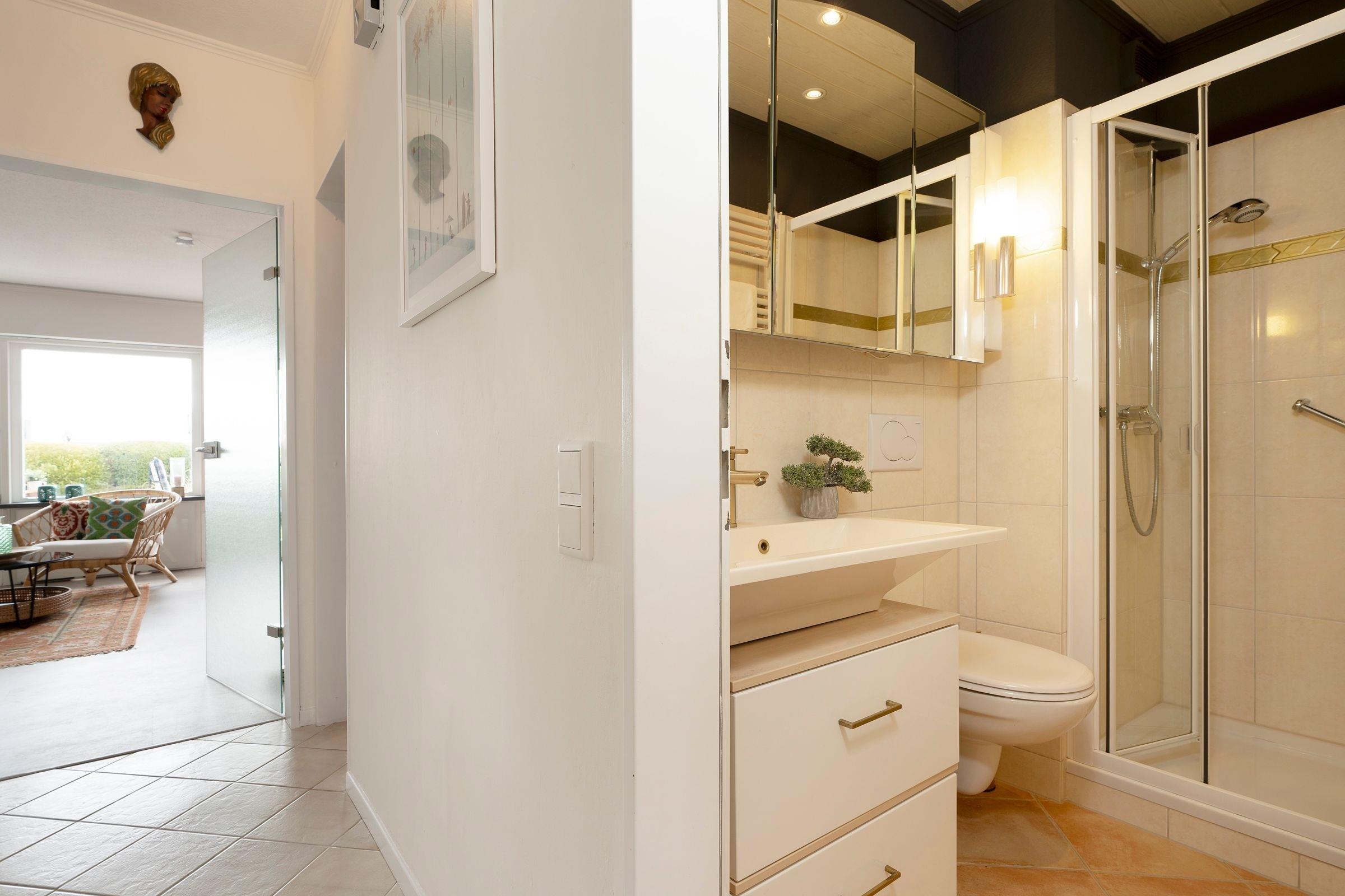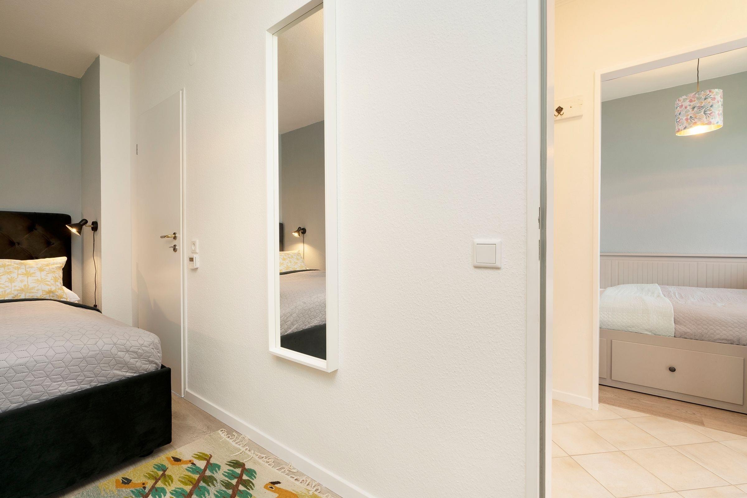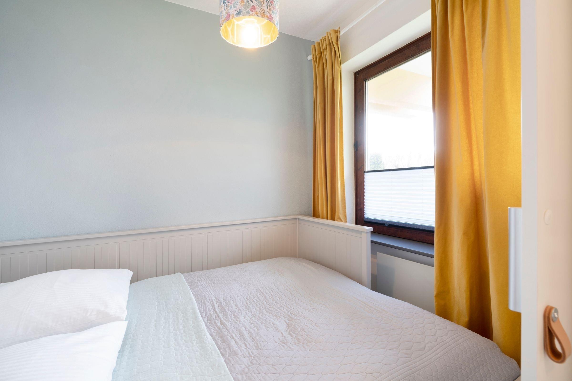 Das im Erdgeschoss gelegene Urlaubsdomizil empfängt Sie mit einem praktischen Flur, der Sie direkt in den modern gestalteten Wohnbereich leitet. Hier fügen sich ausgefallene Einzelstücke nahtlos in die modische Einrichtung ein und sorgen für ein Rundum-Wohlgefühl. Die zum Wohnbereich hin offene Küche verfügt über alle wichtigen Geräte. Nur einen Schritt braucht es, dann gelangen Sie vom Wohnzimmer auf die Sonnenterrasse mit eigenem Strandkorb. Die Ruhe in der Nacht finden Sie in einem der beiden Schlafzimmer mit Doppelbett (2x 80x200cm) und einem ausziehbaren Kojenbett (je 80x200cm). Das Meersalz von der nur 350m entfernten Ostsee waschen Sie sich ganz bequem in der offenen Dusche im Badezimmer ab und hüllen sich danach in ein Handtuch vom beheizbaren Handttuchhalter.