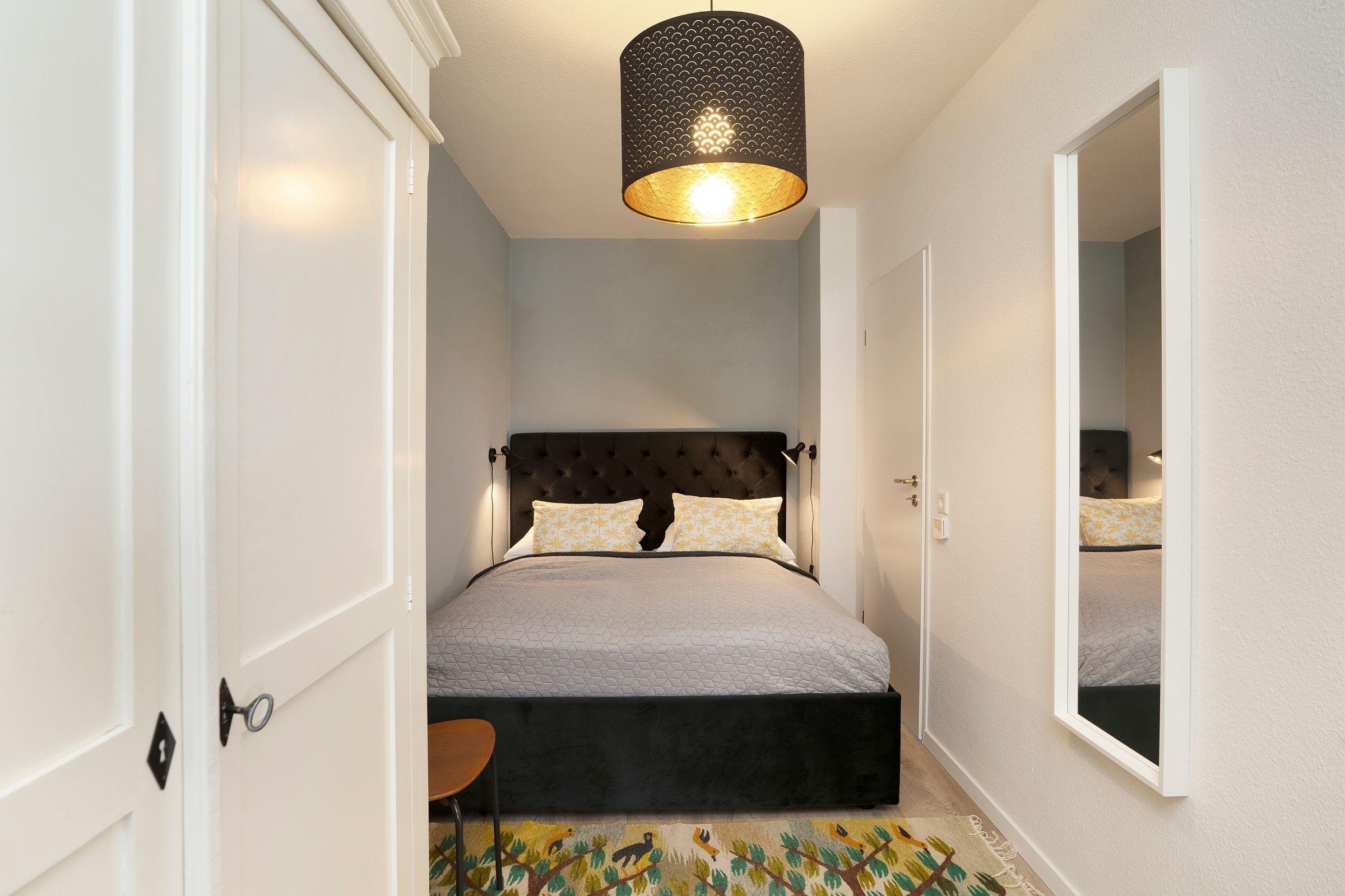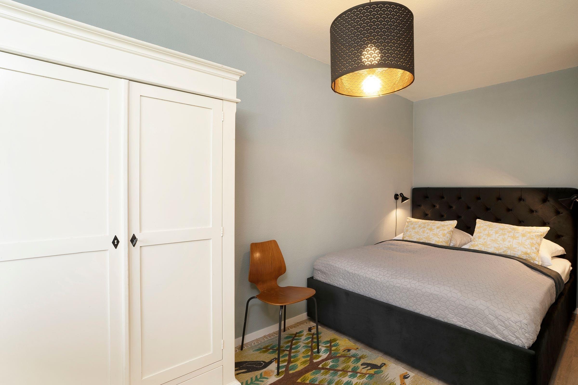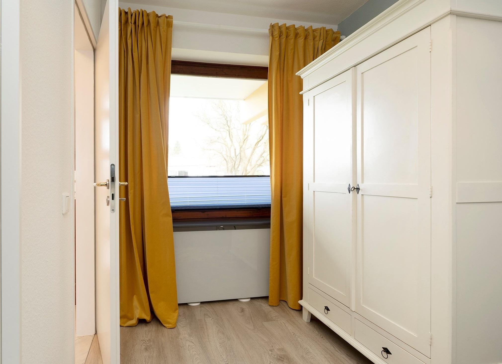 Schlafzimmer 1: Doppelbett (2x 80x200cm), Kleiderschrank, Verdunkelung (Plissee), Platz für Kinderreisebett vorhanden